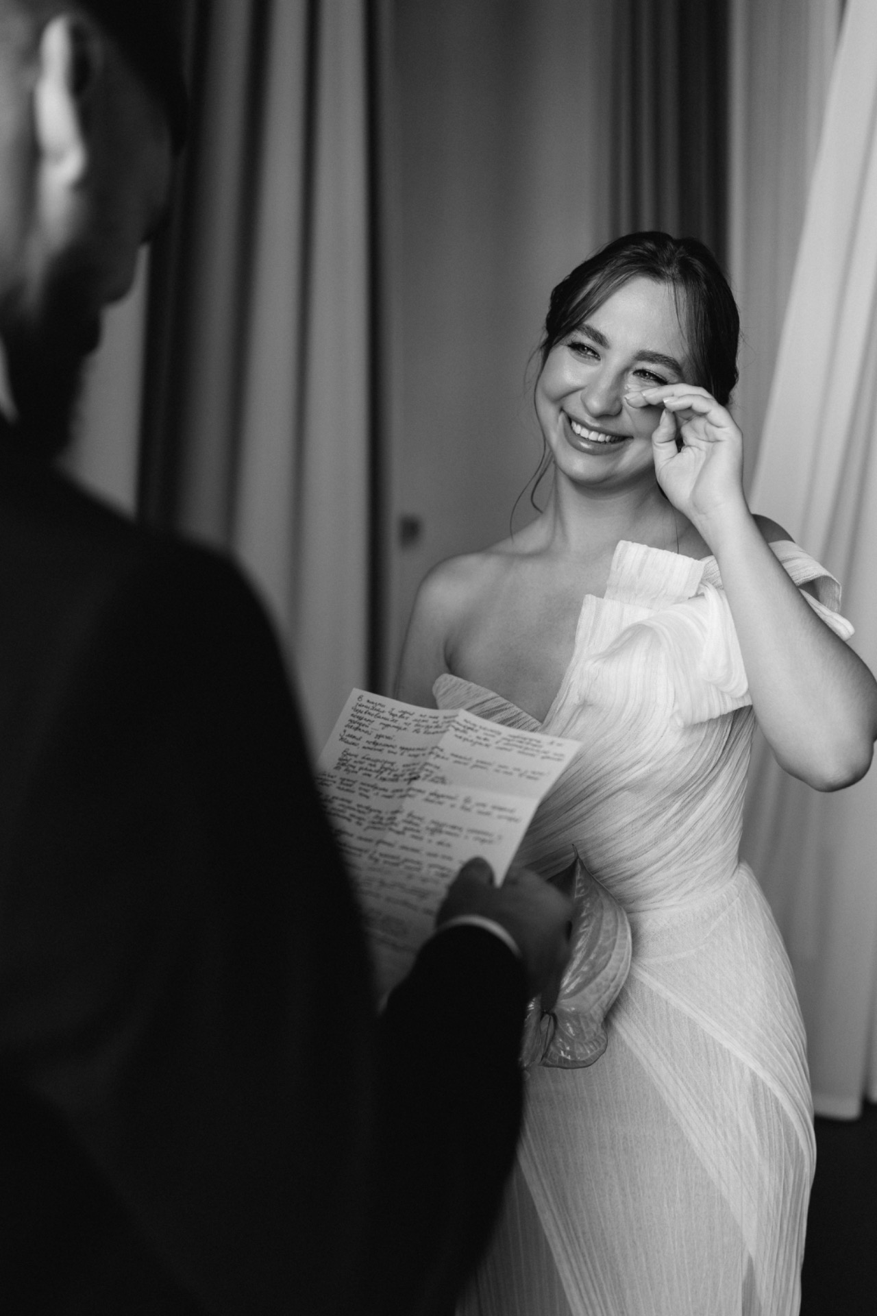 Роспись мы отметили в ресторане Perfect Pitch, под громкие песни и жаркие танцы — без шоу и ведущего, но с очень трогательными речами от самых близких, фоновой музыкой и уютной атмосферой. Это был очень душевный день в кругу родных людей, который мы вспоминаем с особой любовью.