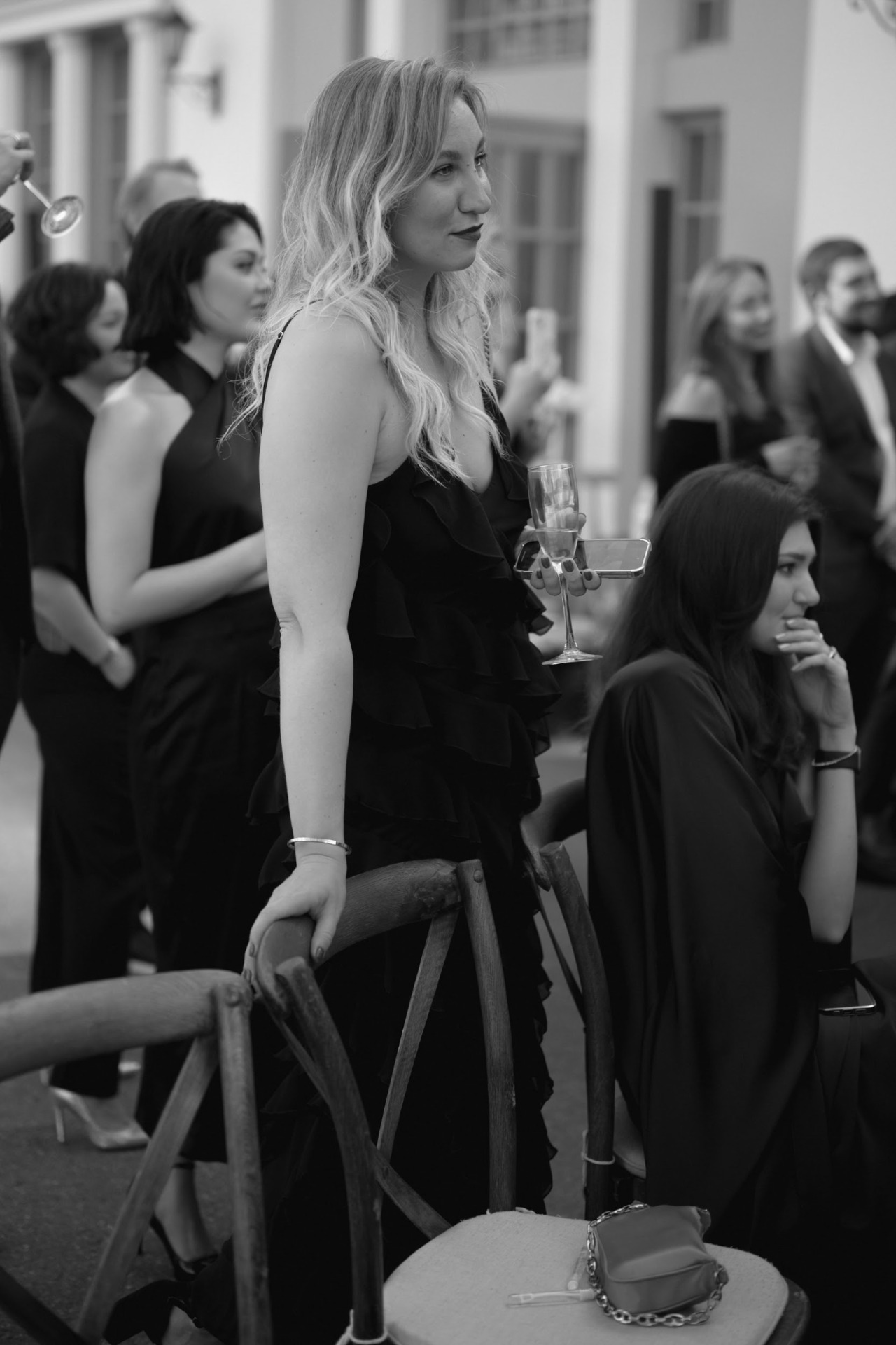 Мы так же попросили гостей поддержать гамму нашего вечера в своих нарядах. Тут я схитрила: изначально хотела total black, но понимала, что старшее поколение такую затею вряд ли поймет и поддержит. Поэтому я добавила в палитру зелёный, коричневый и серый. Как я и ожидала, многие не стали заморачиваться и большая часть гостей была в чёрном.