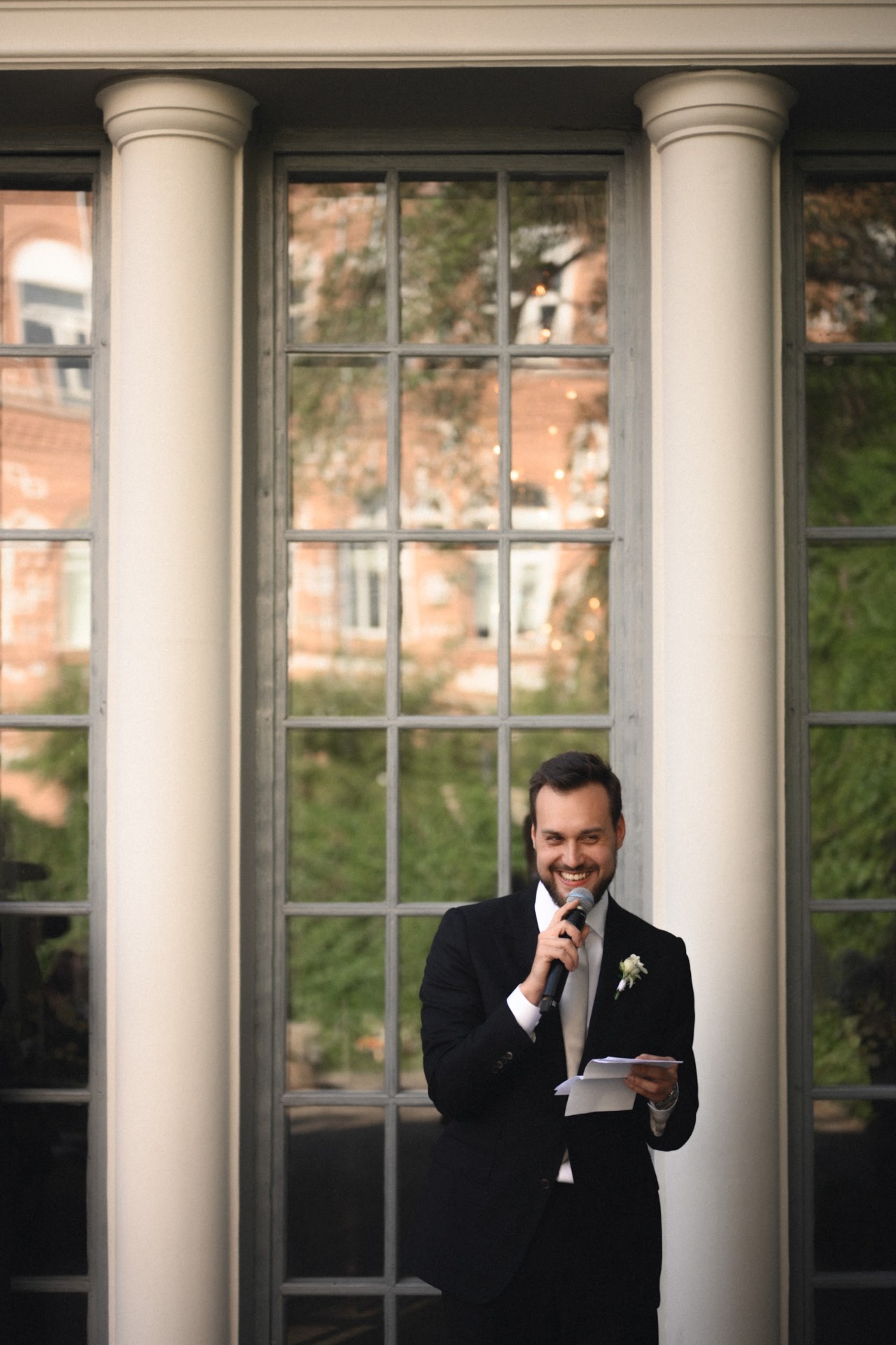 Так же мы разместили всех за одним большим столом, попросили гостей вместо классических тостов рассказывать истории и доверили родителям провести церемонию.