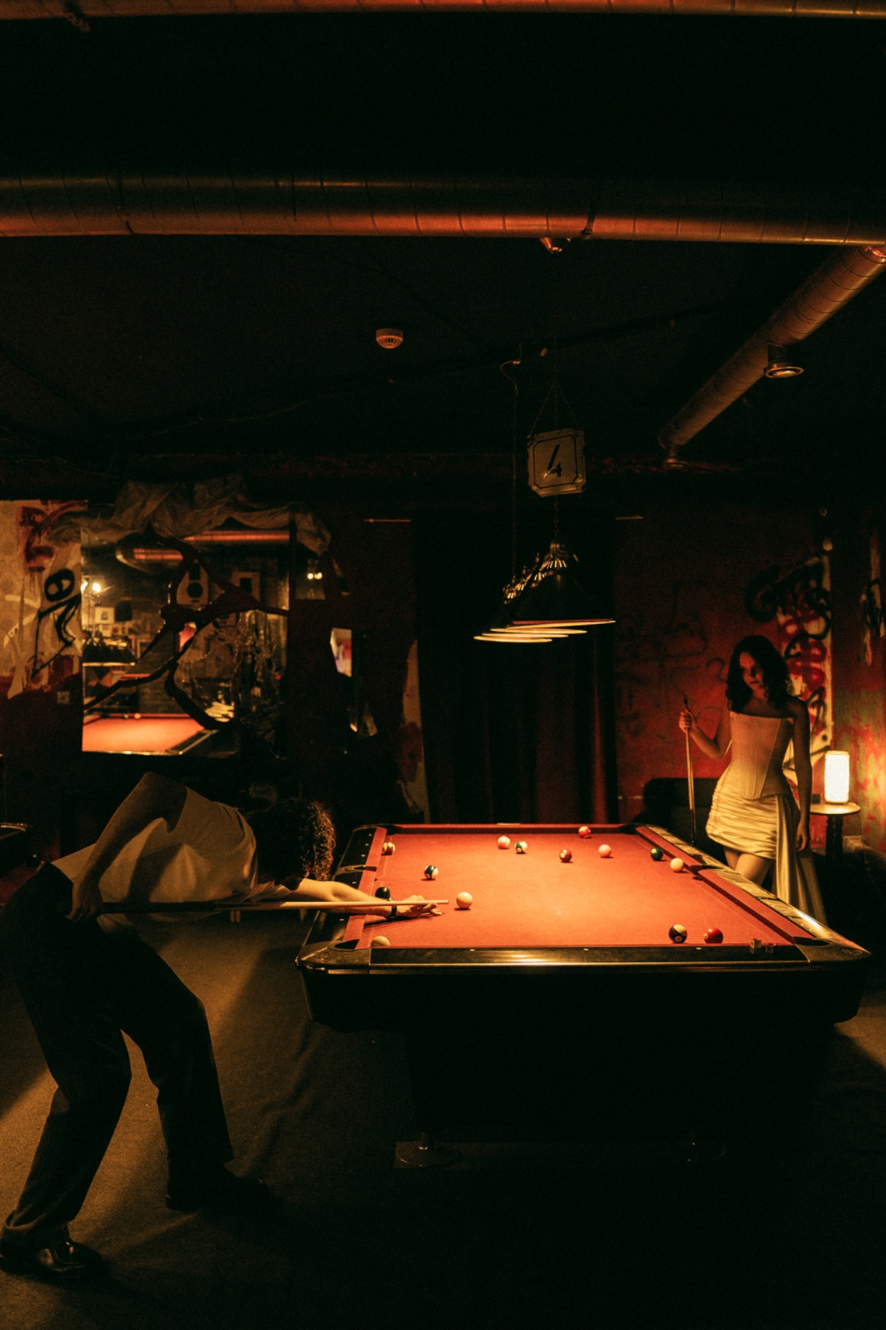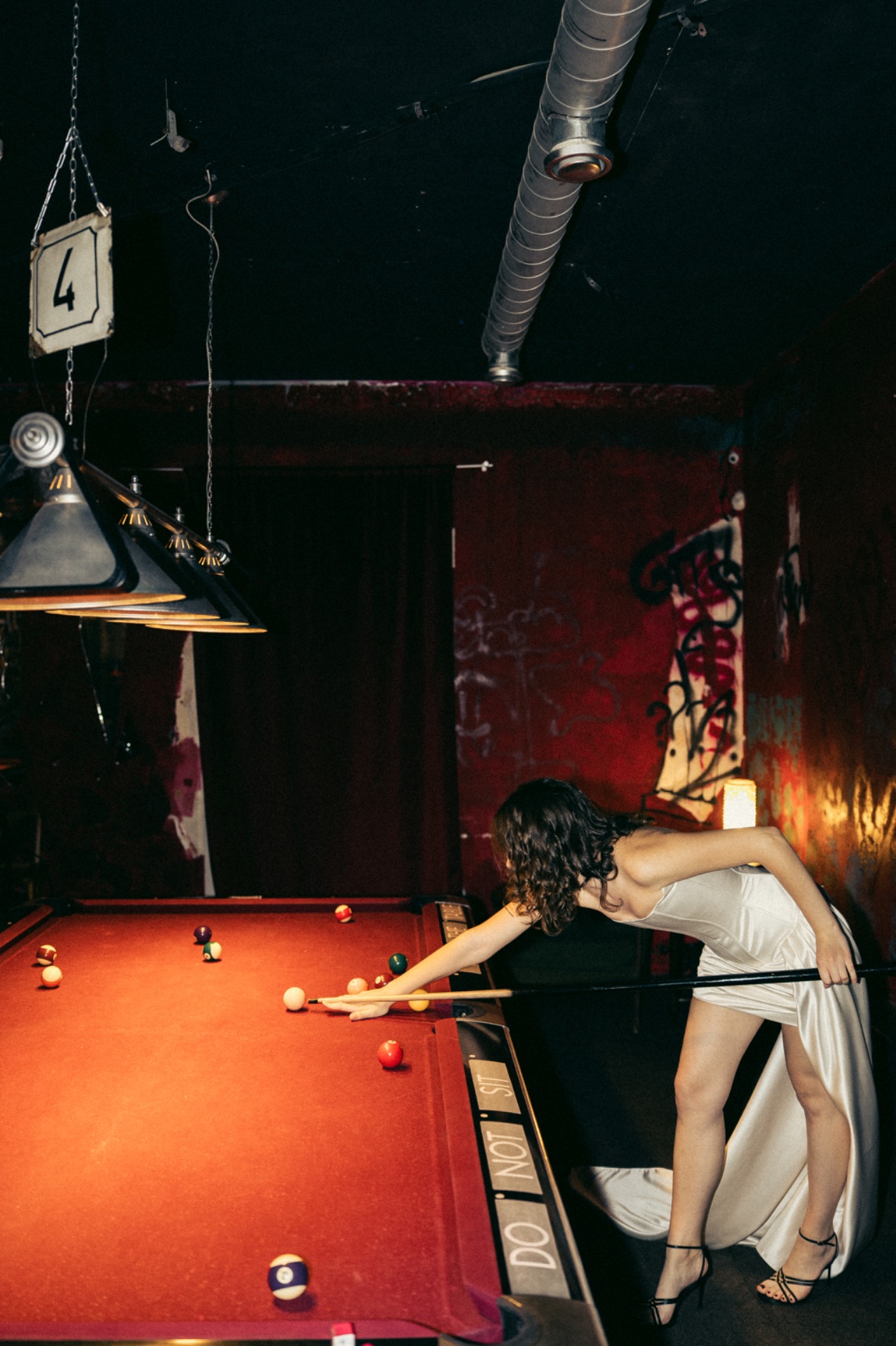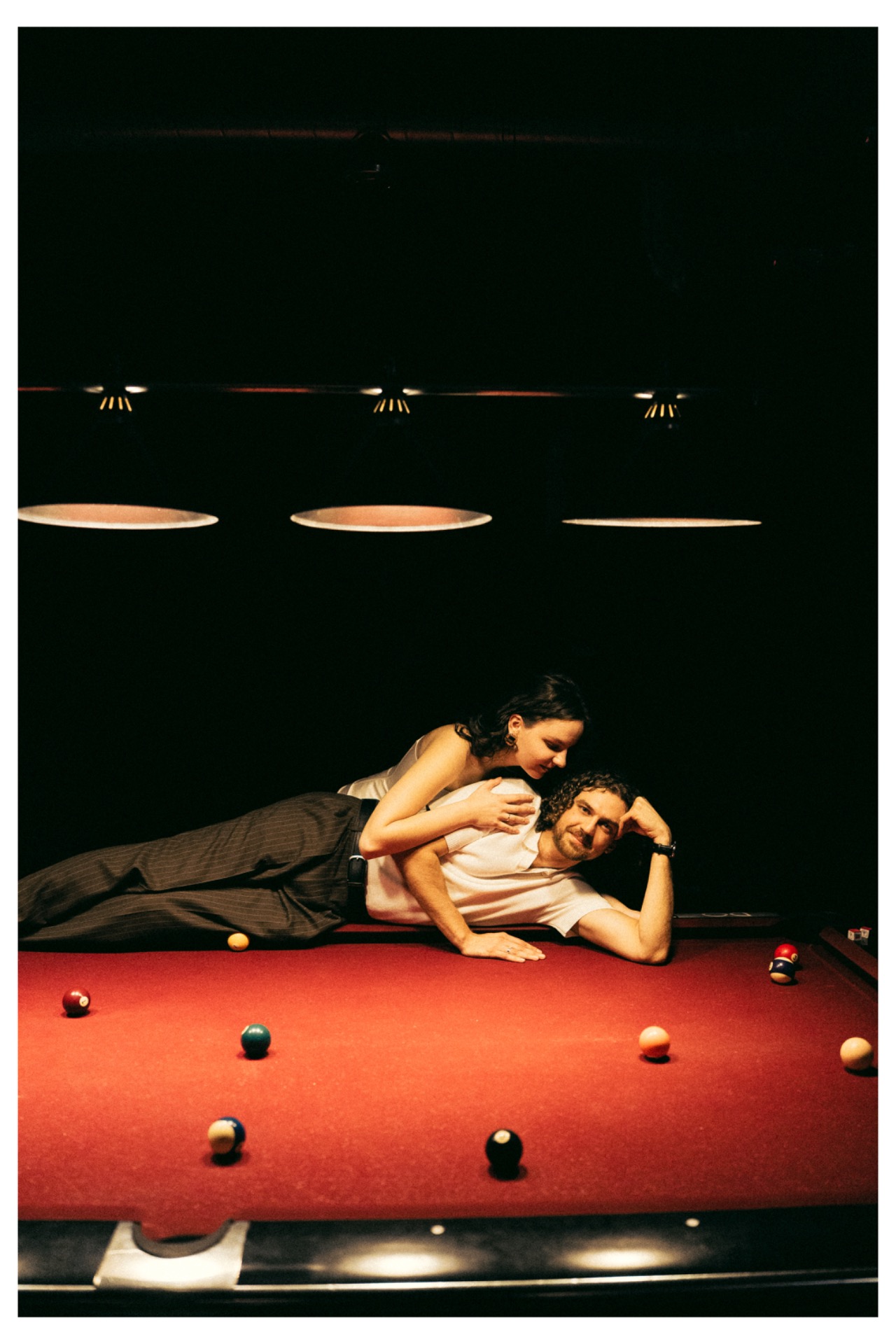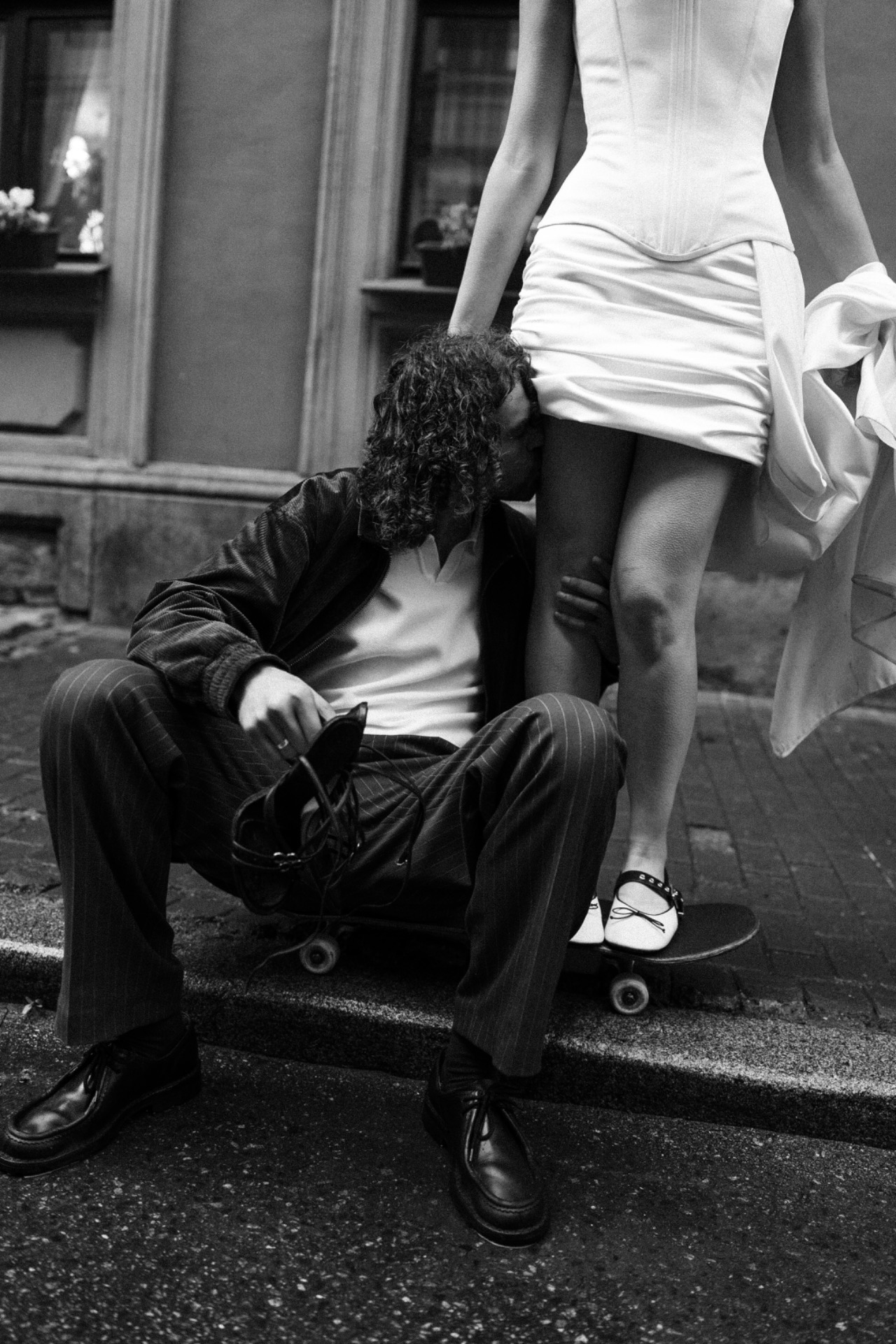 Главным приключением дня стала съёмка. Фотограф очень круто уловил наш вайб, и несколько часов пролетели как одно мгновение: мы играли в бильярд, катались на скейте, бегали и целовались под дождём. Это была наша первая совместная съёмка, где мы просто кайфовали друг от друга, а фотограф ловил эти моменты на камеру. Нам так понравилось, что теперь хотим устраивать такую фотосессию каждый год на годовщину.