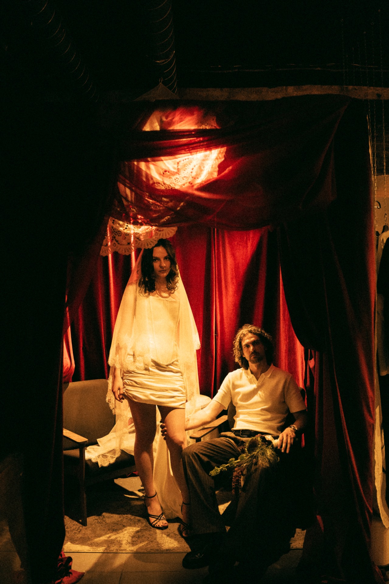В целом образ нашей пары сложился у меня в голове только после первой примерки. Я бы причислила его к винтажной итальянской эстетике, но с бунтарским вайбом. Мне очень хотелось использовать натуральные оттенки.