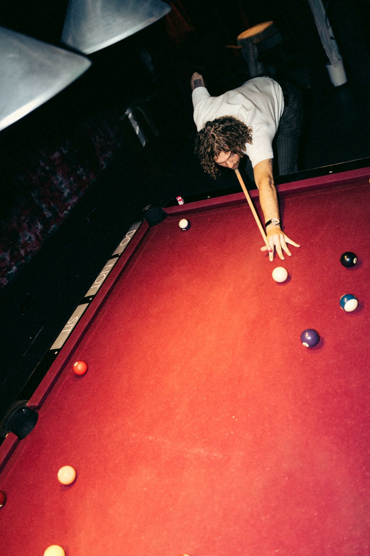 Мы решили сделать небольшую фотопрогулку по местам нашего знакомства — бары, улочки Питера, бильярд. Но получить разрешение на съёмку в барах оказалось трудно, поэтому из локаций мы оставили только улицу и бильярд. А Владу на ум пришло взять с собой скейтборд, ведь он увлекается скейтбордингом с подросткового возраста.