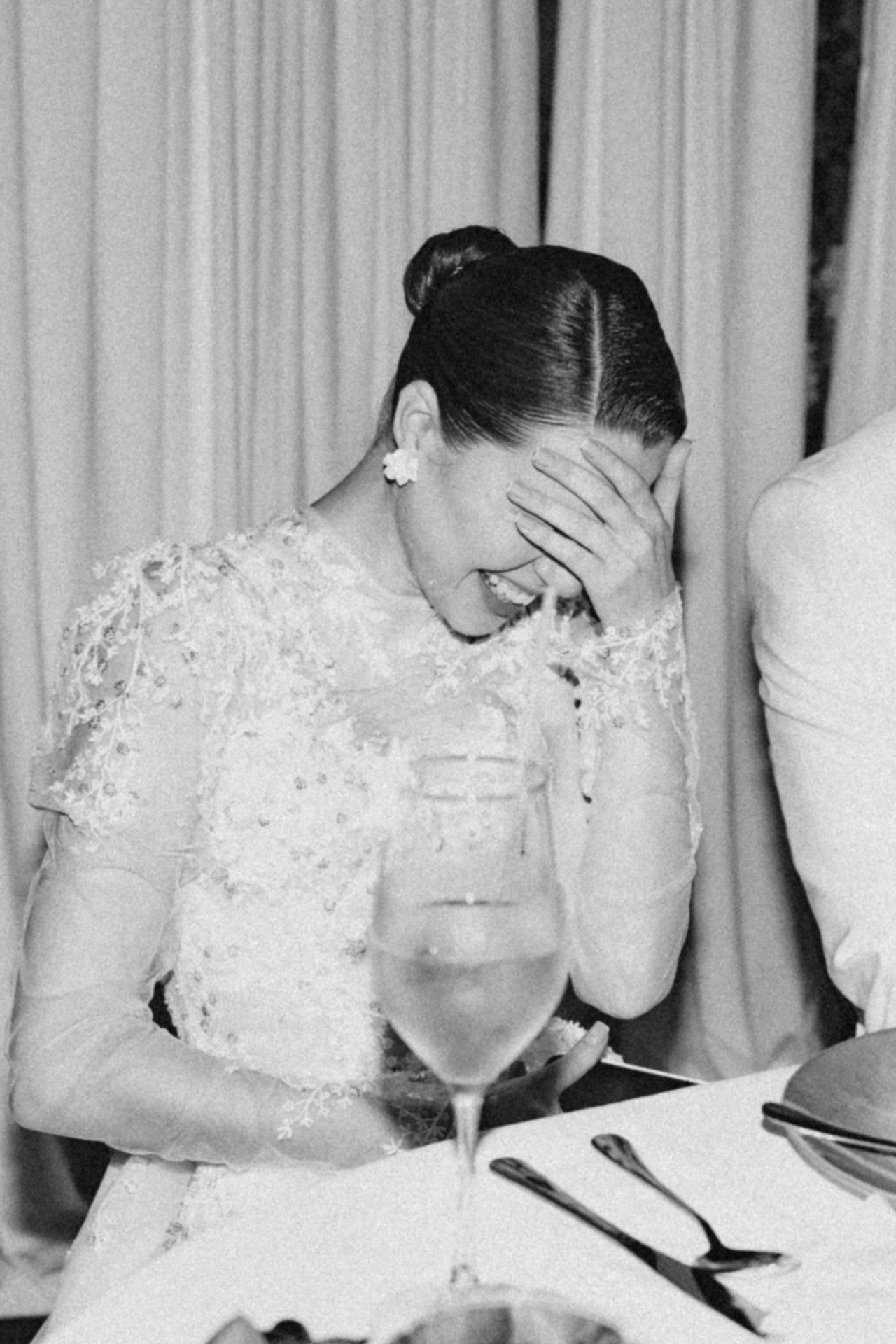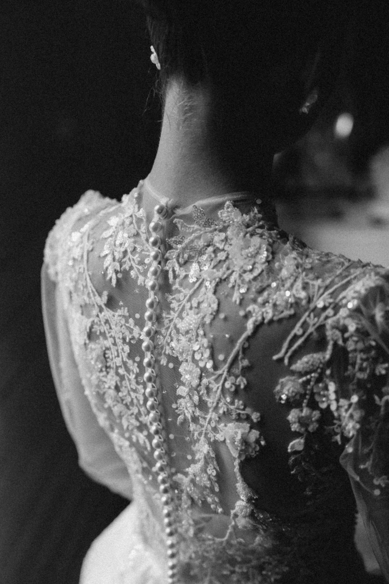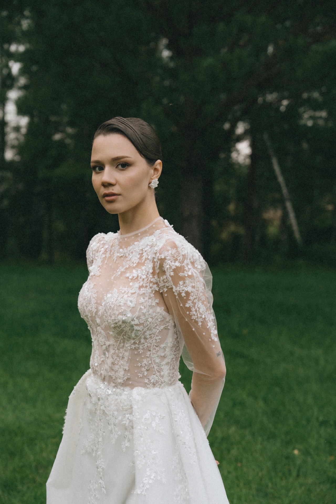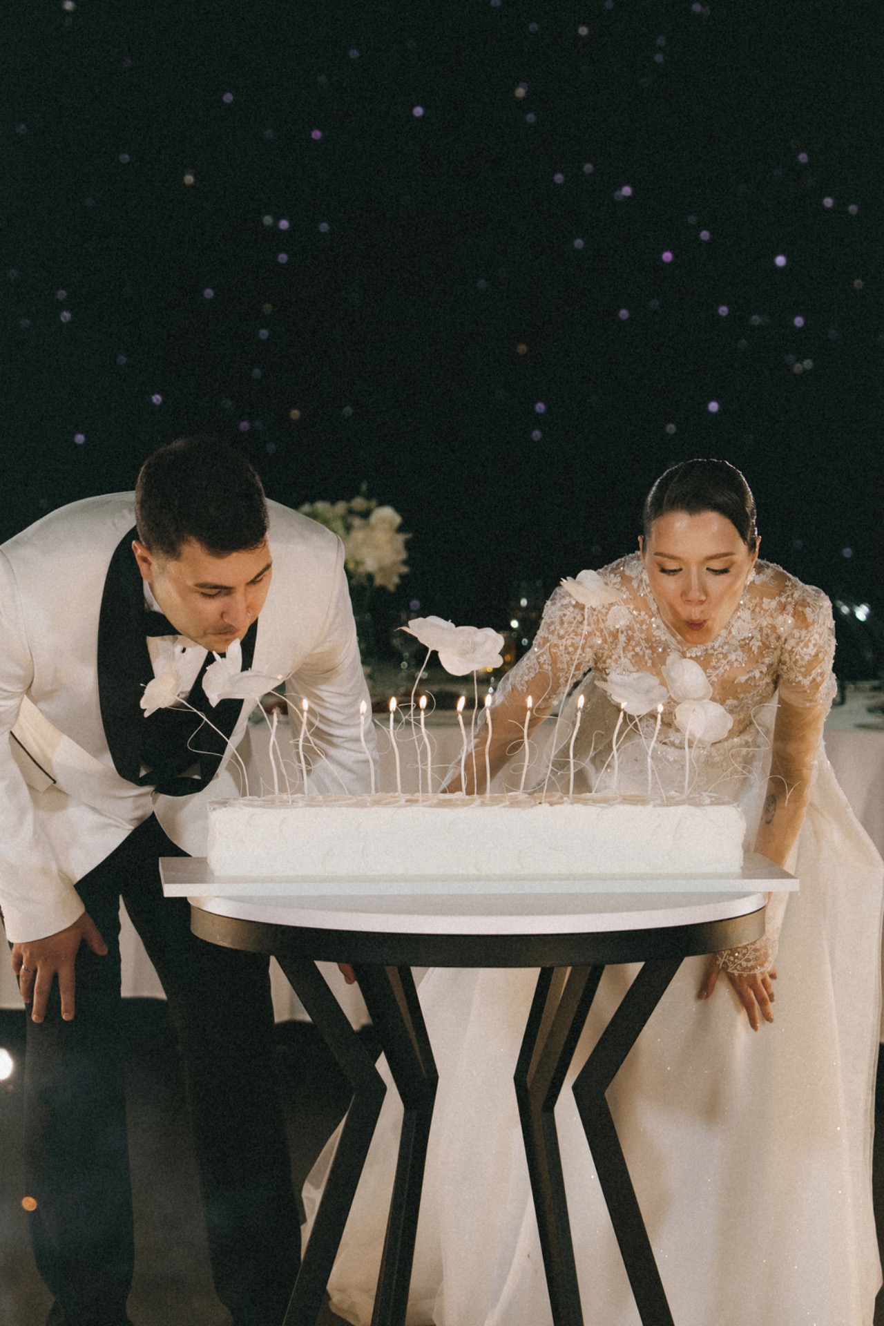 Для основного платья я выбрала белый наряд с чистыми линиями, необычной вышивкой сверху и элегантным разрезом. В нём я чувствовала себя собой — уверенной и лёгкой одновременно.