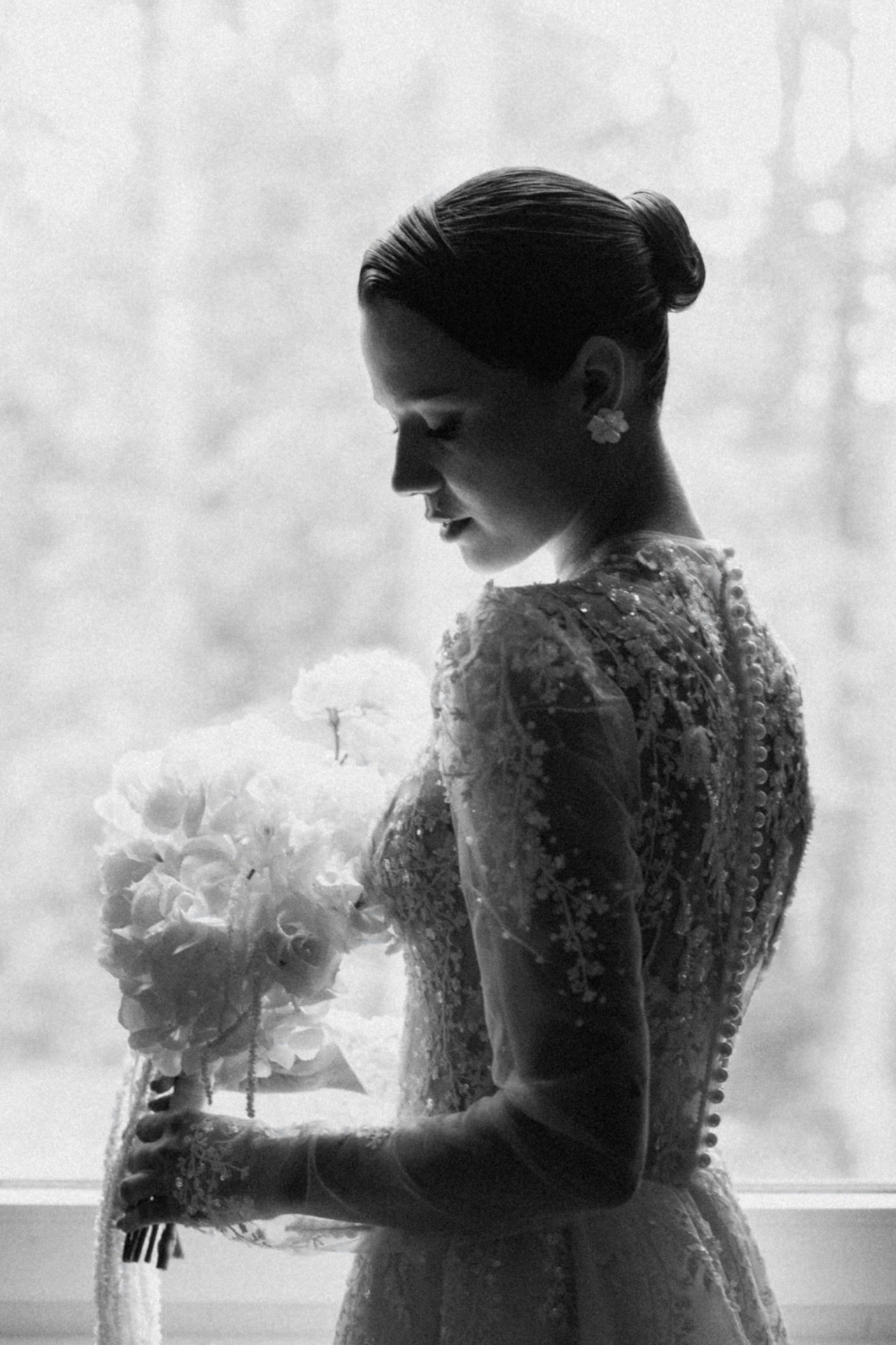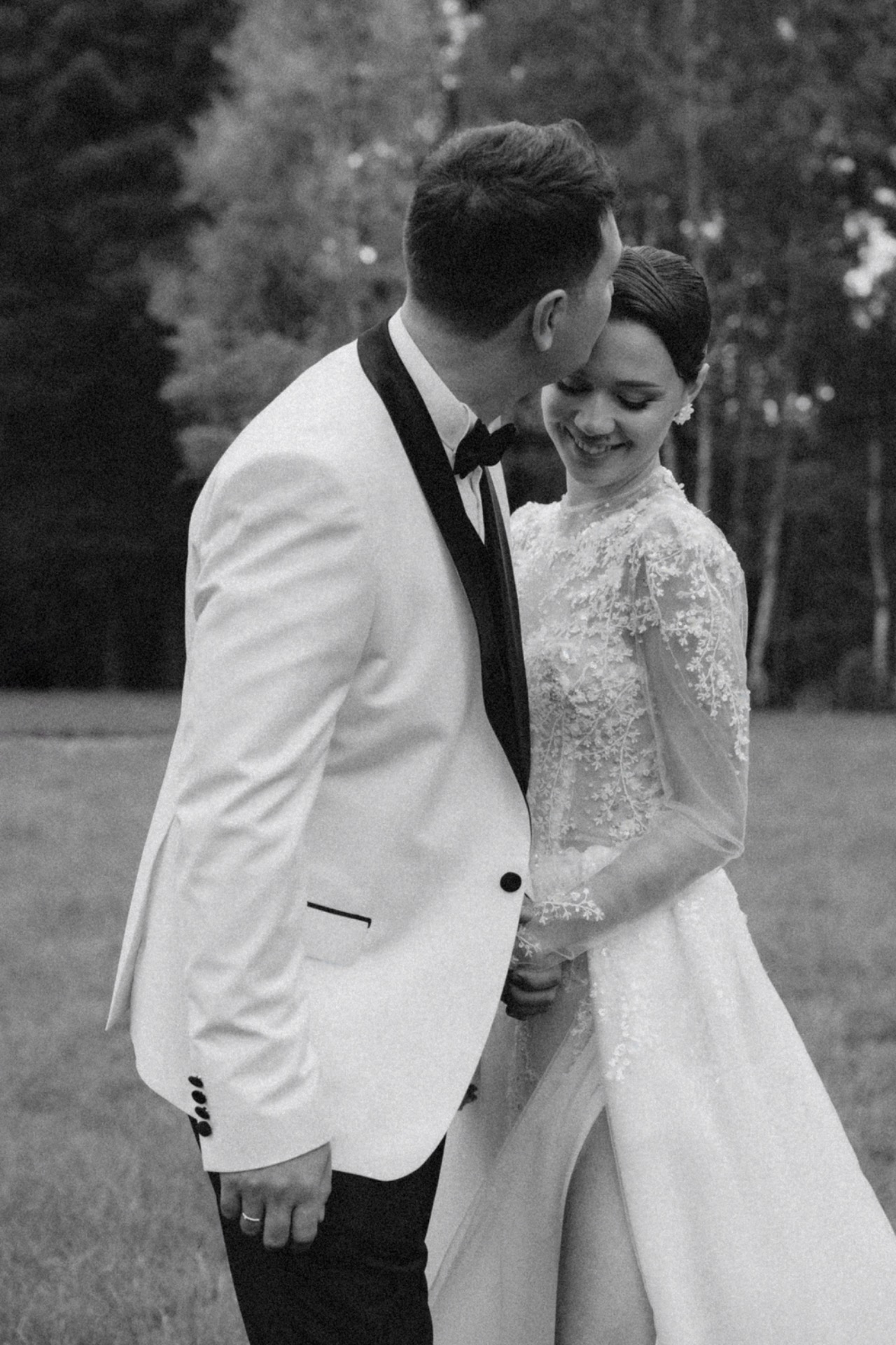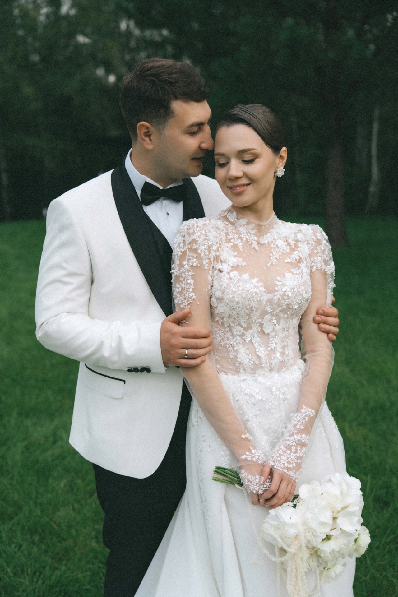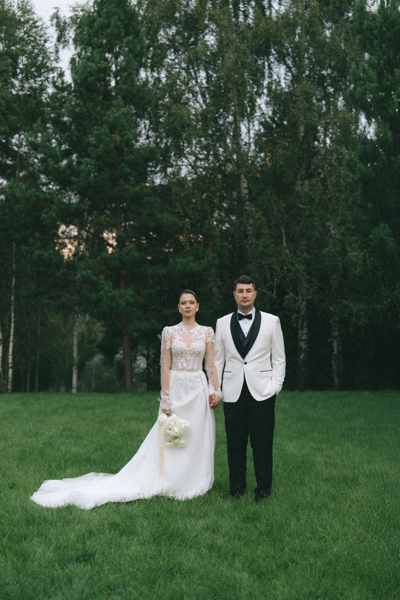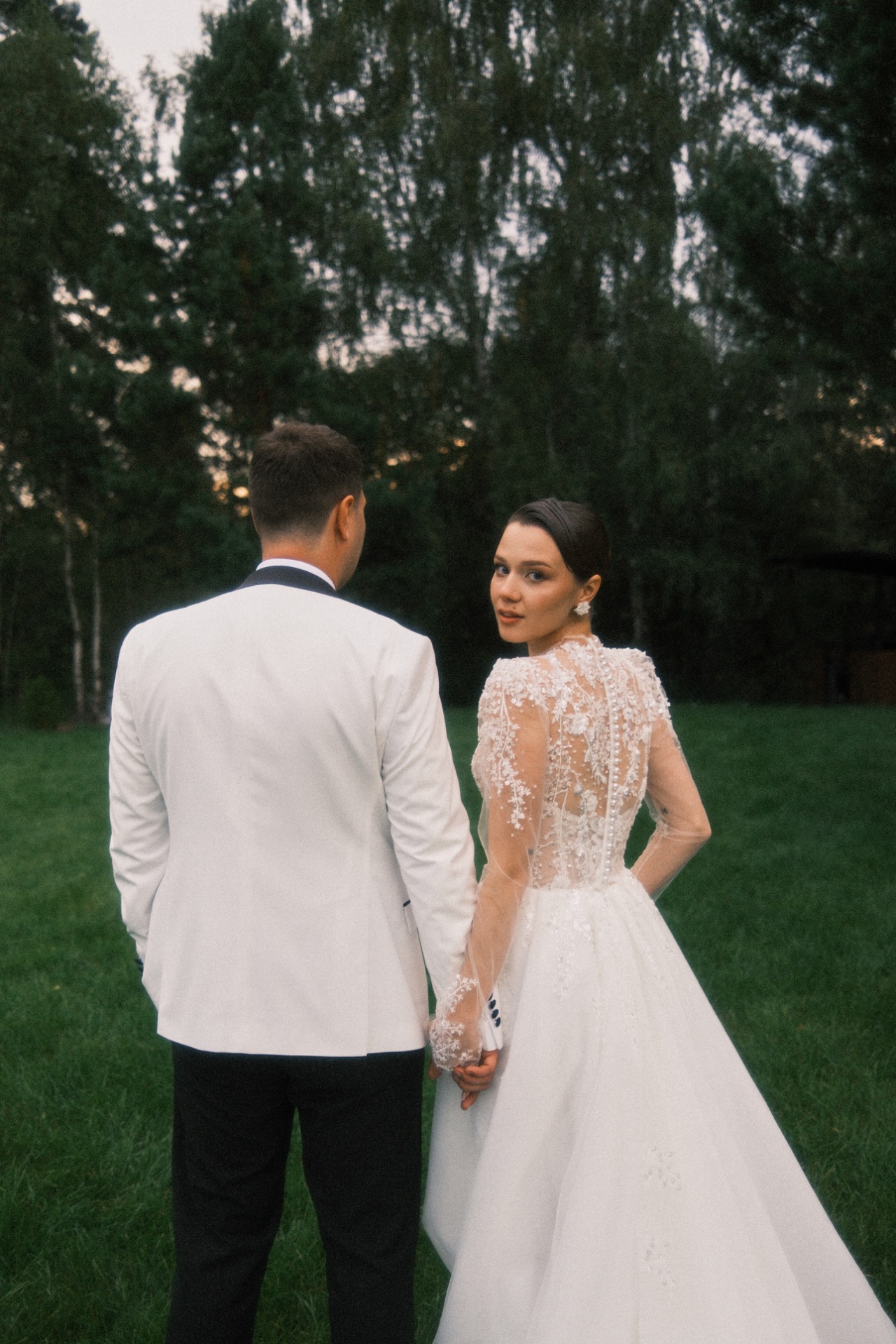 Я по профессии дизайнер интерьеров, и, наверное, поэтому с самого начала знала, как должна выглядеть наша свадьба: чистые линии, лаконичность, визуальная гармония. Так появилась концепция чёрно-белой свадьбы — стильной, но сдержанной, без лишних деталей. Я собрала мудборд в Pinterest, и все остальные элементы сложились сами собой: выразительная белая флористика и минимализм в декоре.