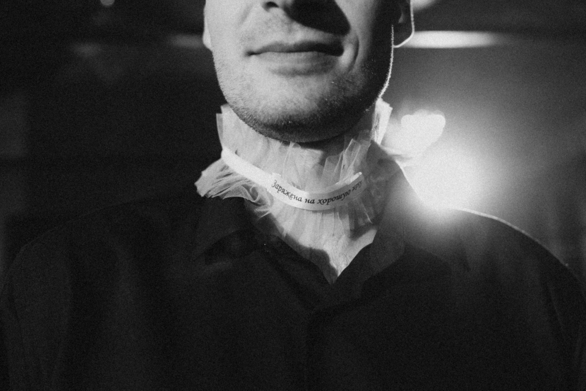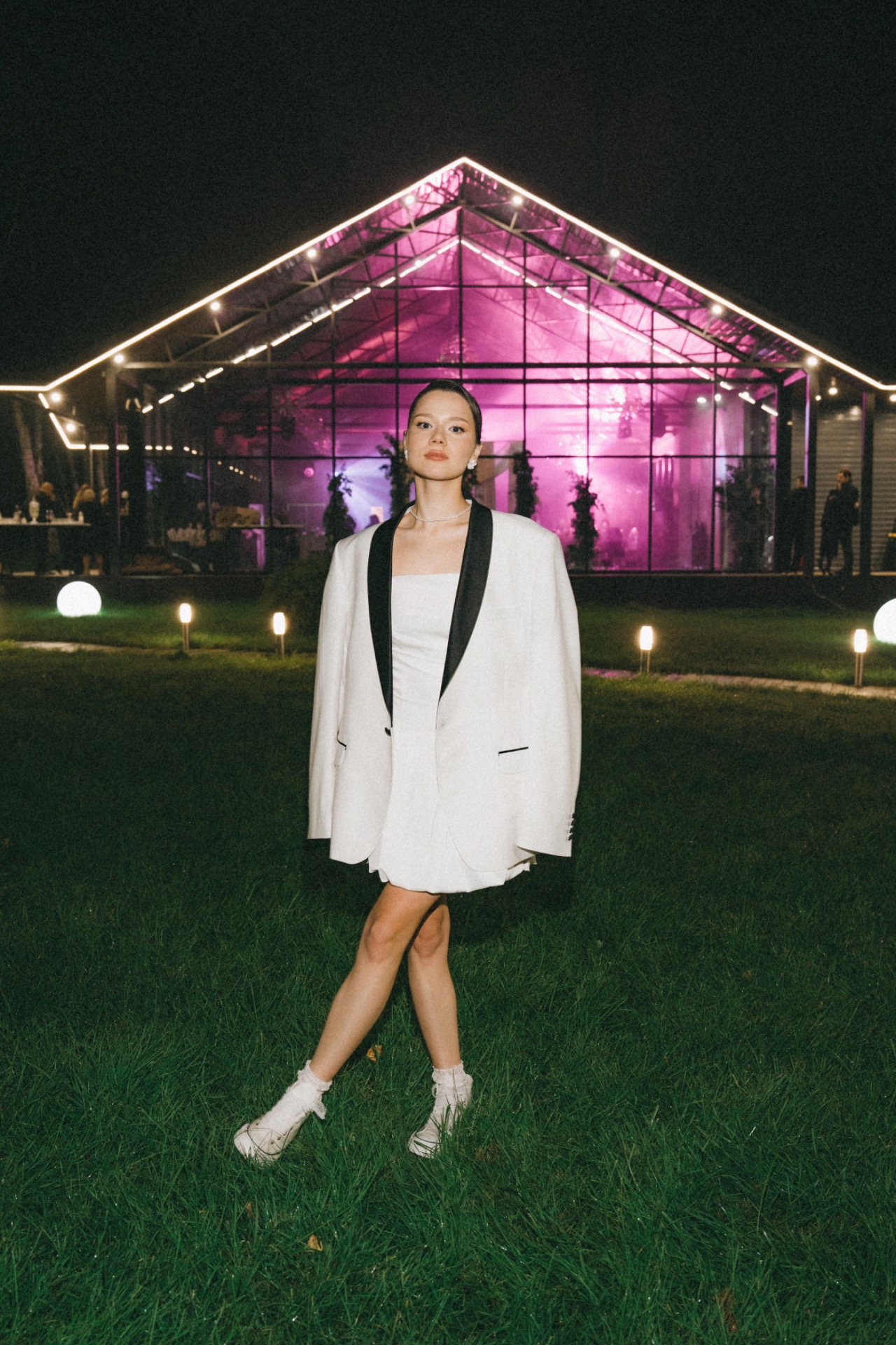 Образ Глеба полностью отражал нашу концепцию: белый пиджак с чёрными лацканами, чёрные брюки, белая рубашка и аккуратная бабочка. Никаких вычурностей, просто идеальный баланс.