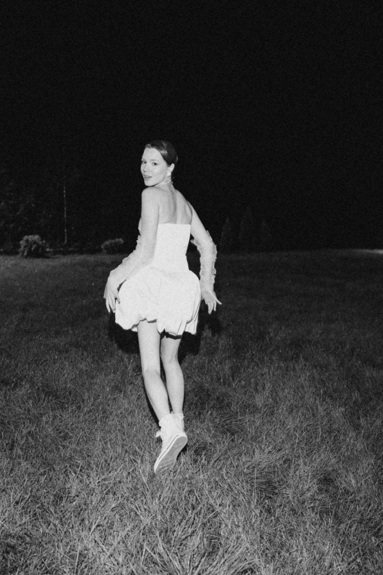 А вечером я сменила платье на мини-формат с юбкой-баллоном, чтобы ничего не мешало мне танцевать и наслаждаться нашим праздником.