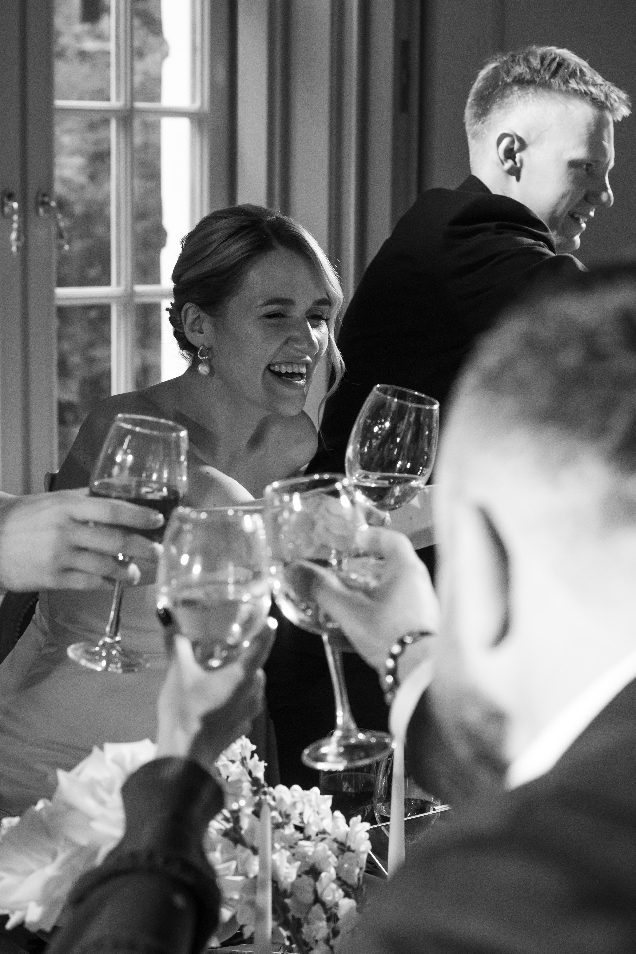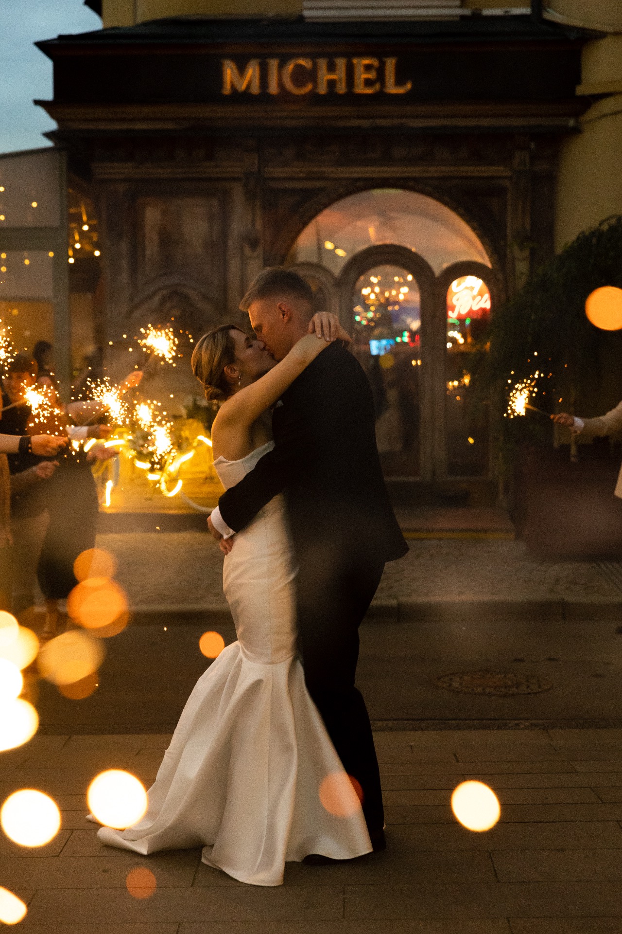 Банкет прошёл в формате камерного ужина, на котором присутствовали только самые близкие — наши семьи и друзья. Вечер получился душевным, но при этом весёлым и зажигательным. Были тёплые слова, крепкие объятия, смех и танцы. Вместе с ведущим мы подготовили интерактивы, которые раскрывали нашу историю и ещё сильнее сближали гостей.