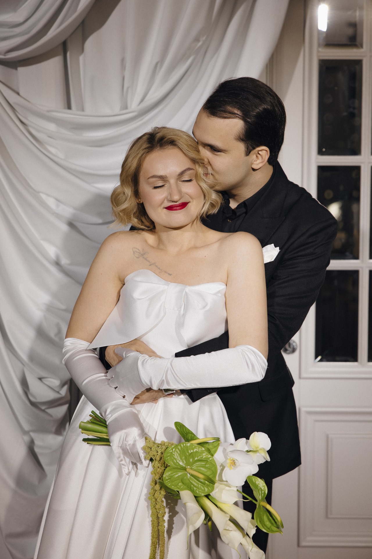 С образами у нас всё получилось так же просто. Артуру мы выбрали образ в первом же салоне, а мне платье — с первых примерок.