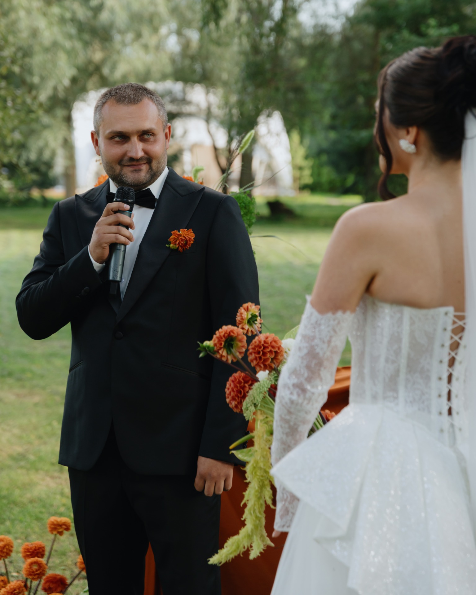 Мы хотели сделать свадьбу в кругу самых близких с минимальным количеством официальных моментов. Нам было важно, чтобы гости могли просто расслабиться и классно провести этот день вместе с нами.