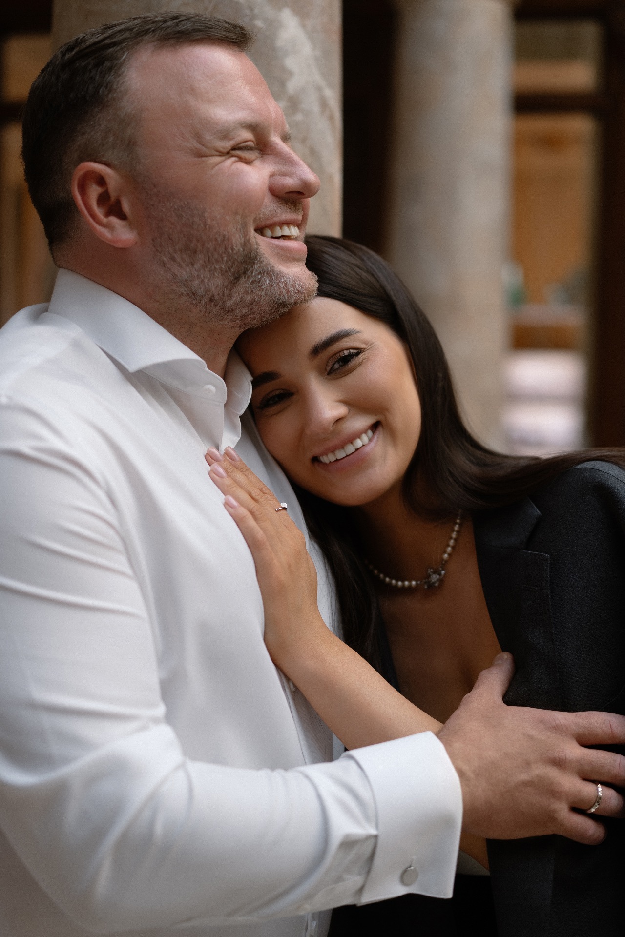 Предложение Женя сделал просто идеално, всё в этот день был про нас, про меня! Мы полетели на уикенд в Санкт-Петербург, разместились в Four Seasons с самым красивым видом на Исаакиевский собор. Вечером, уставшие от прогулок, мы слушали песни Юрия Антонова на виниле и Женя сделал мне предложение. Это был один из самых трогательных, красивых и счастливых моментов в моей жизни.