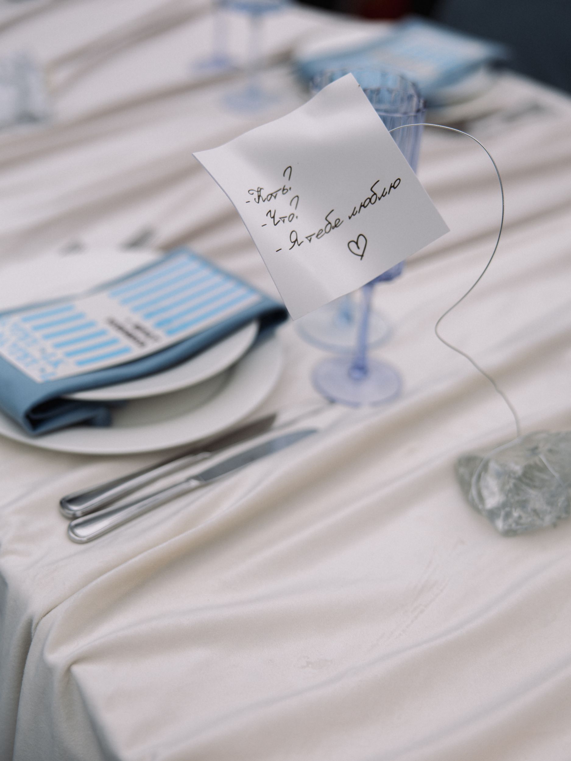 Церемония прошла очень трогательно, слёзы были на глазах у всех. А после были ужин, танцы, музыка, живая атмосфера, общение, тосты, торт, конкурсы и просто абсолютное счастье. Так как наша концепция была основана на записках, всем гостям мы написали личные записки — получилось очень душевно.