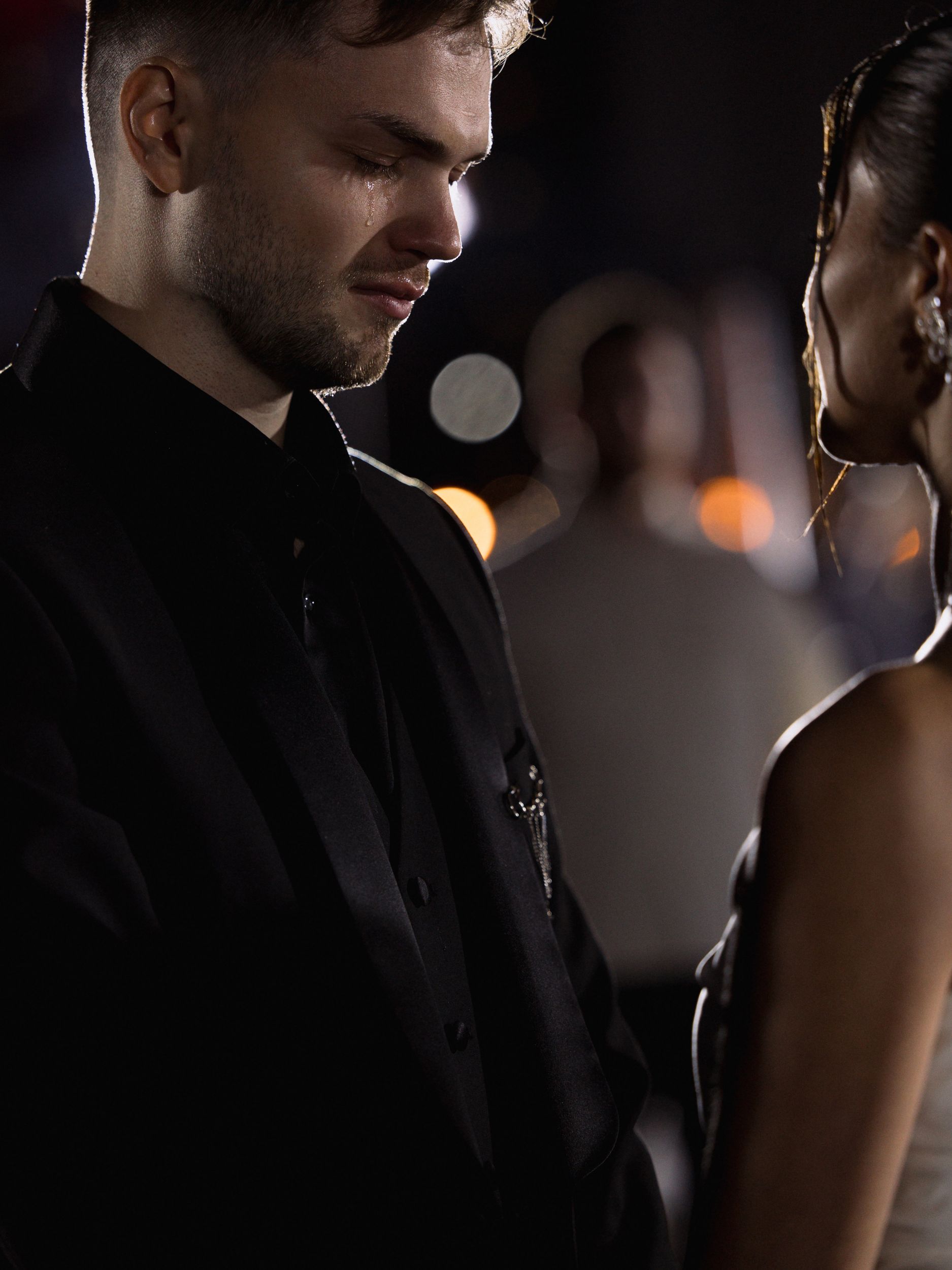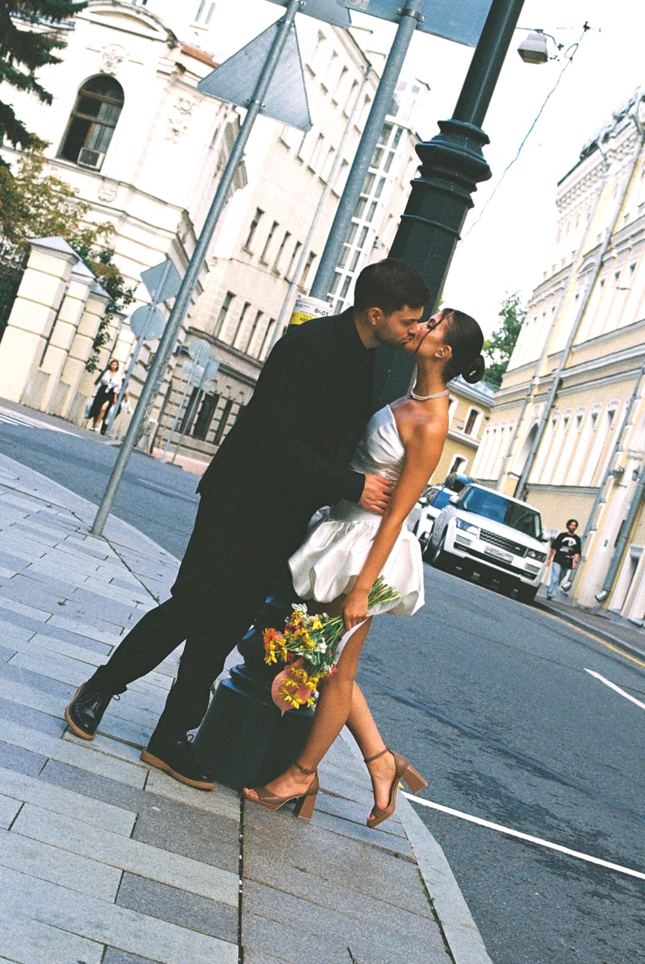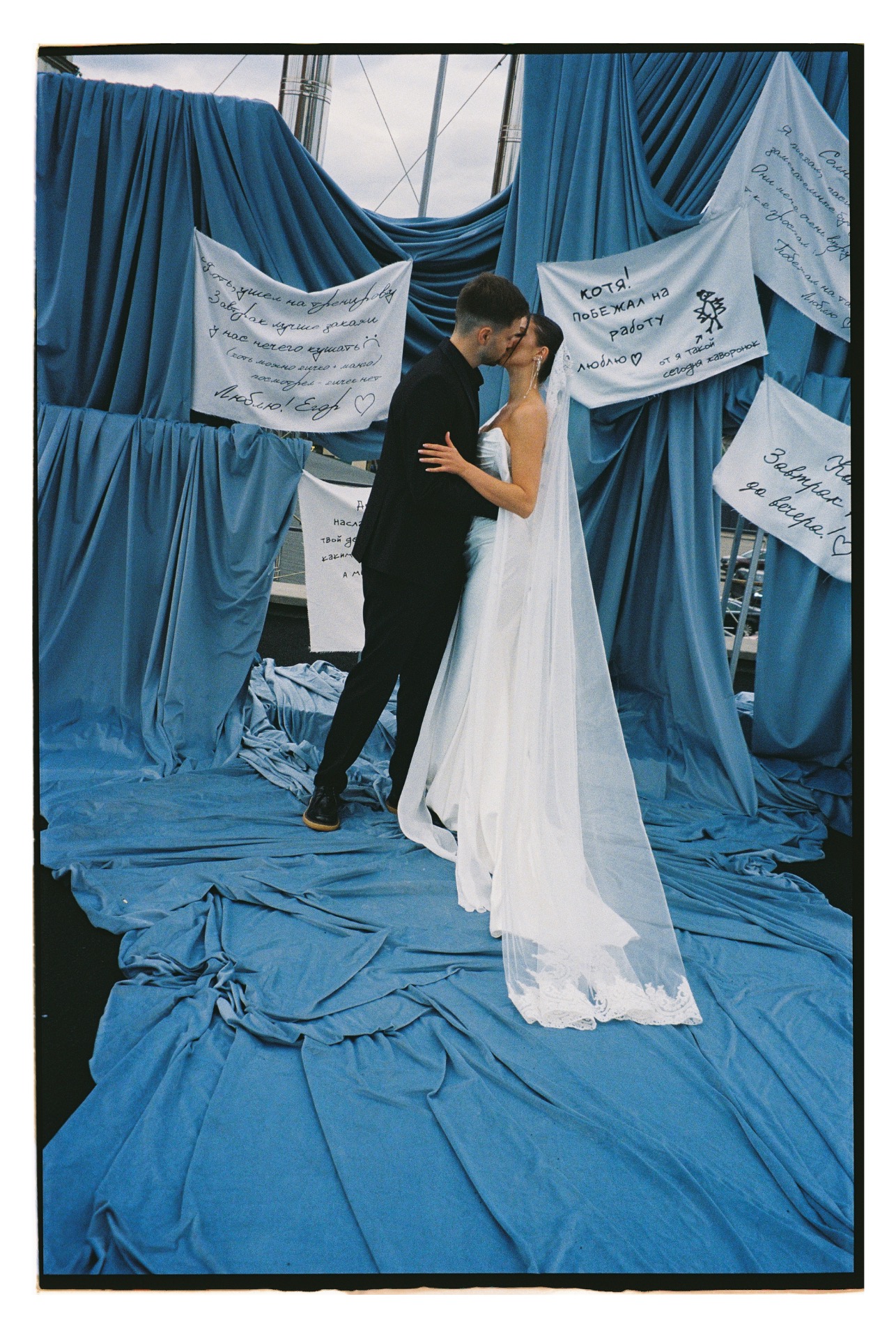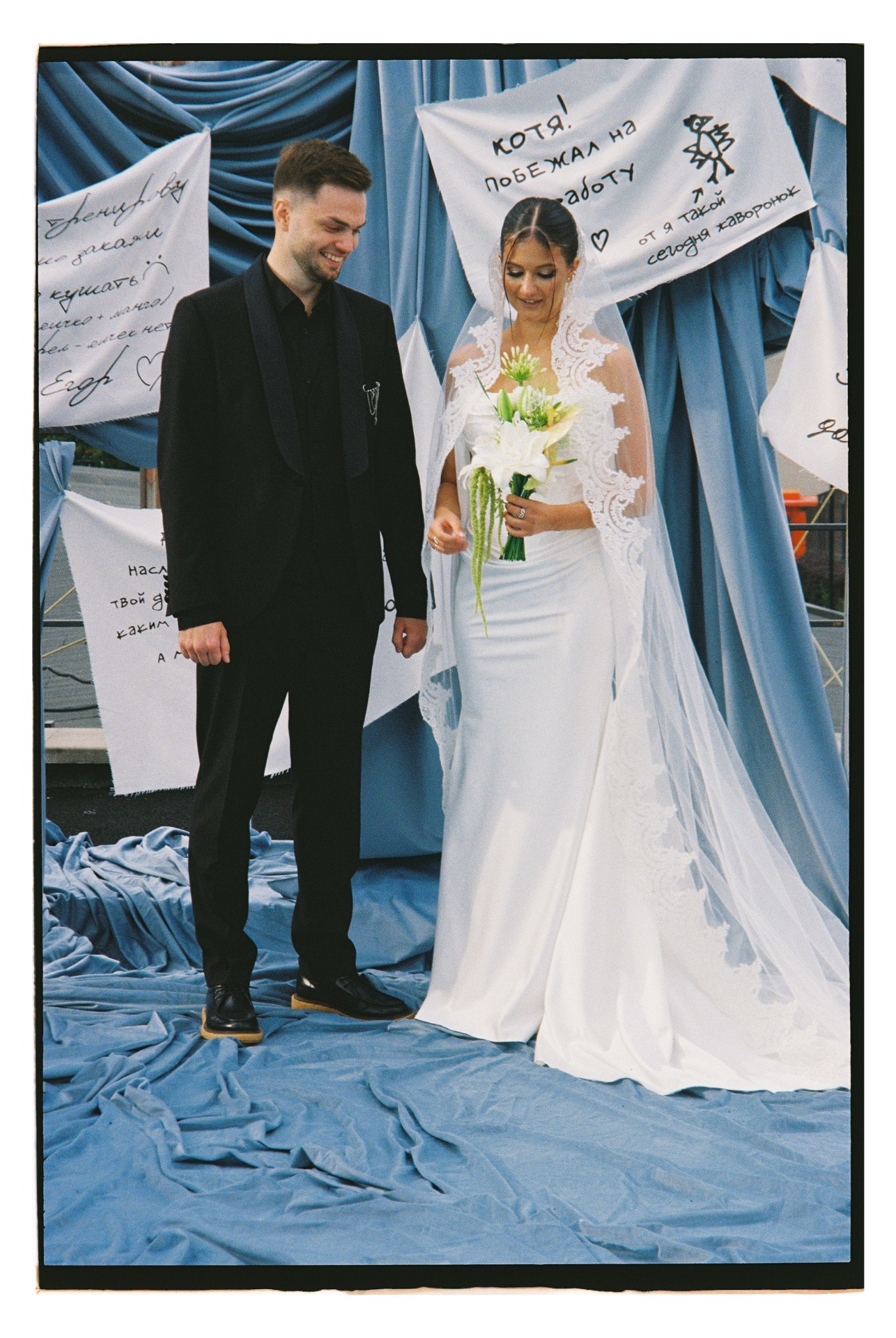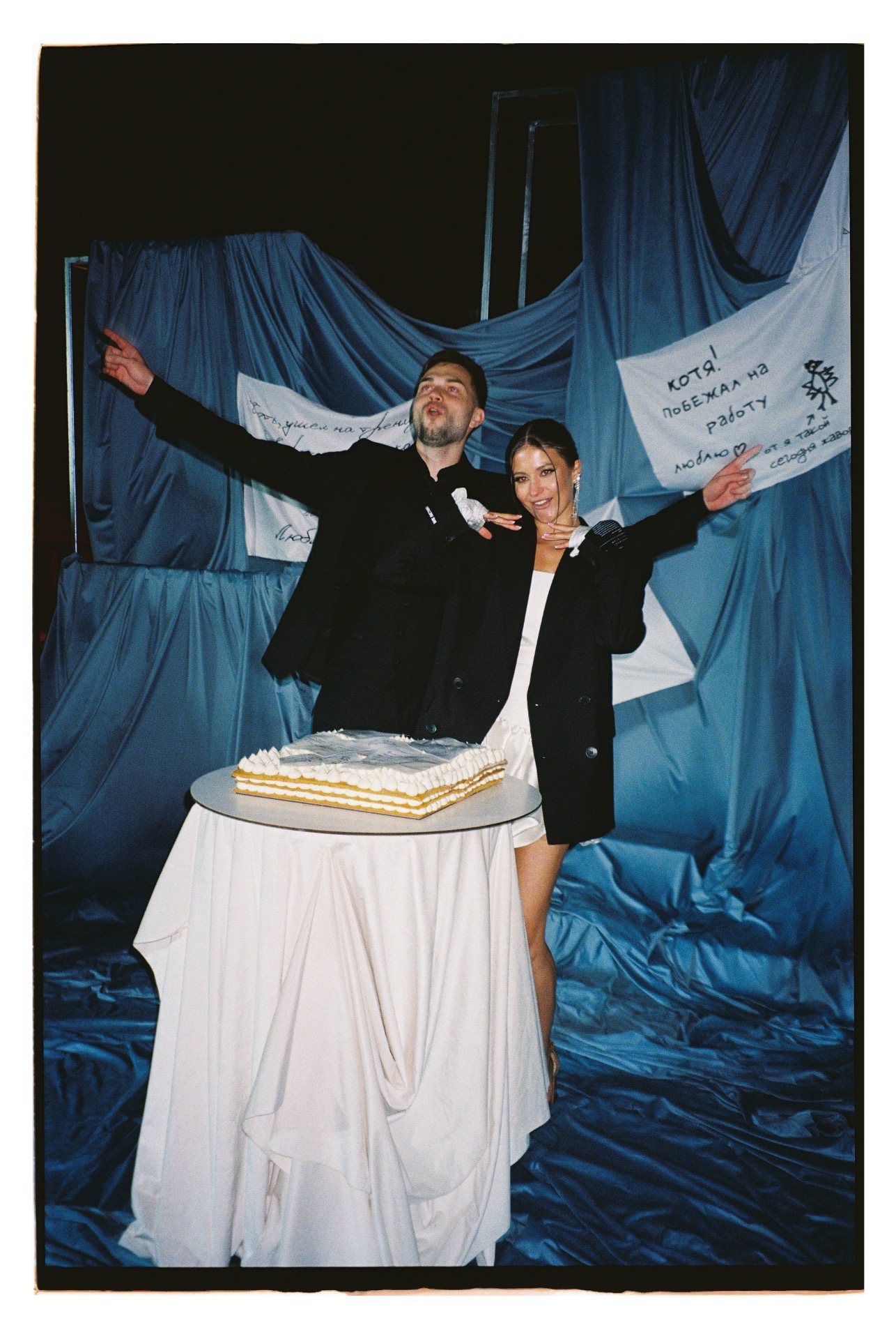 У меня было два образа, а у Егора — один. Его костюм мы выбрали довольно быстро: это был смокинг — классический, лаконичный и идеально сидящий.