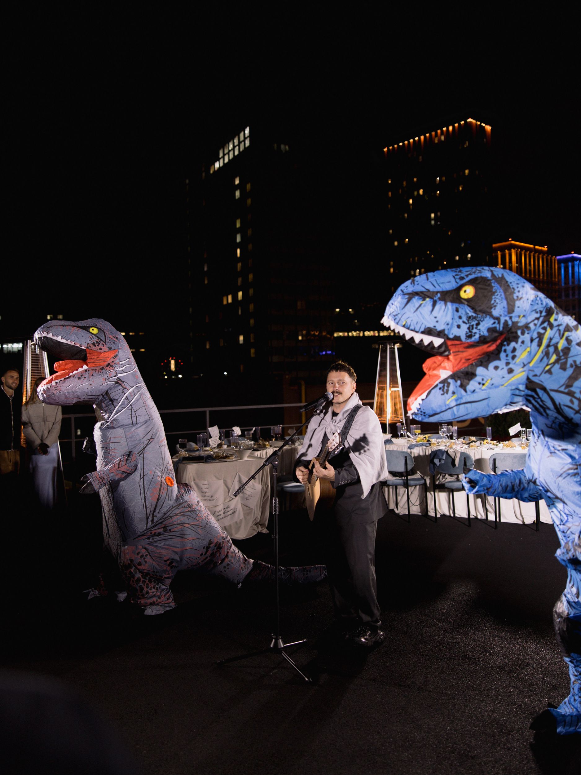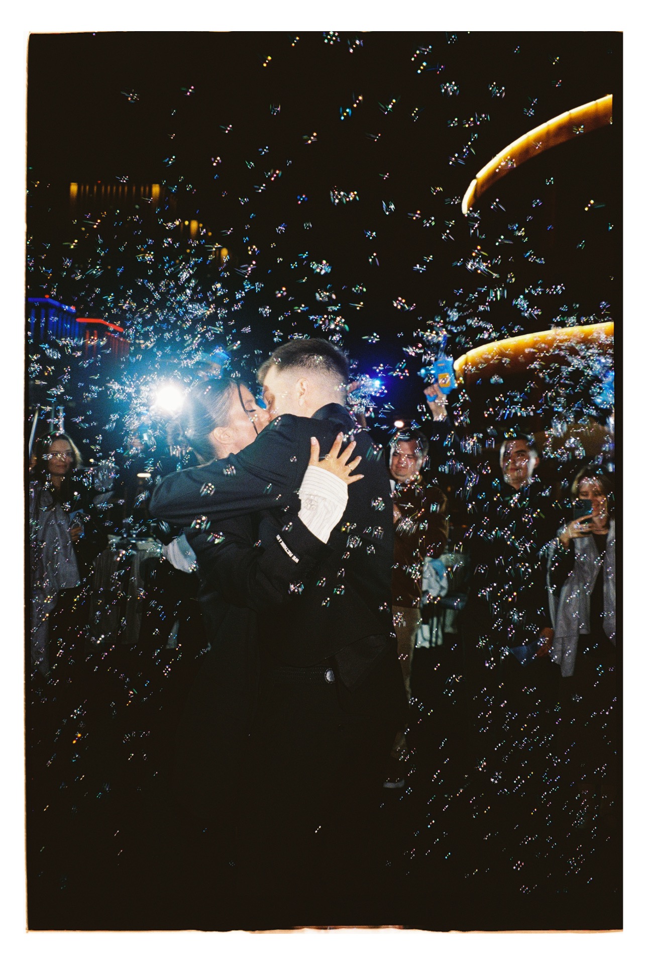 В финале вечера появились два огромных динозавра (это часть нашей истории) и сотни мыльных пузырей, которые мы запускали все вместе. Было ощущение какого-то финала фильма — только это был наш день, настоящий и самый счастливый.