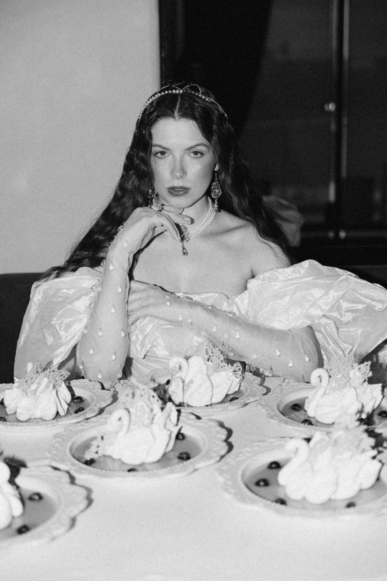 В Красноярске есть ресторан русской кухни «Буян», интерьер которого идеально подошёл для съёмки. А в меню этого заведения есть десерт «Павлова» в форме лебедя. Как только я увидела его, то сразу поняла, что его нужно добавить в кадр для концептуальности.