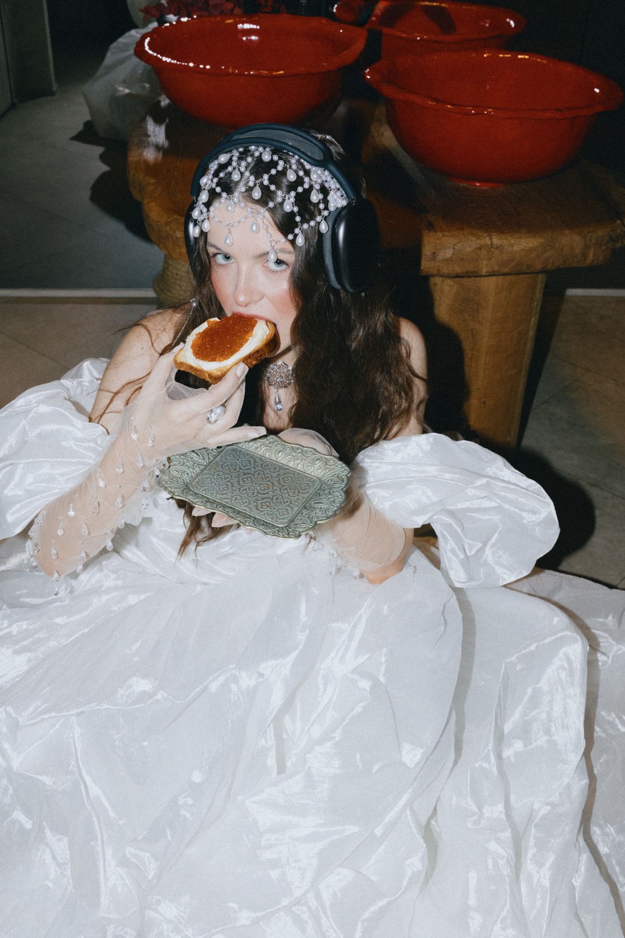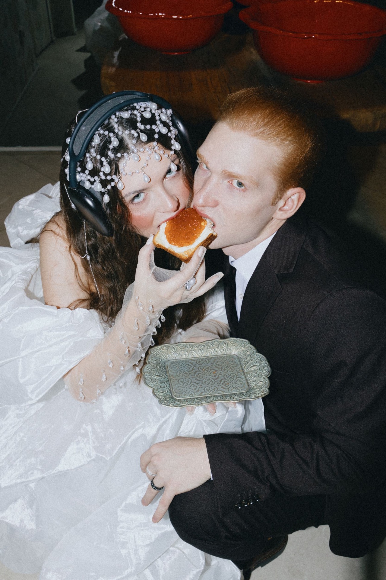 Также вместо первого куска свадебного торта пара откусывала бутерброд с красной икрой. Это добавило стандартному моменту каждого свадебного дня элементы русского стиля, новаторства и бунтарства.