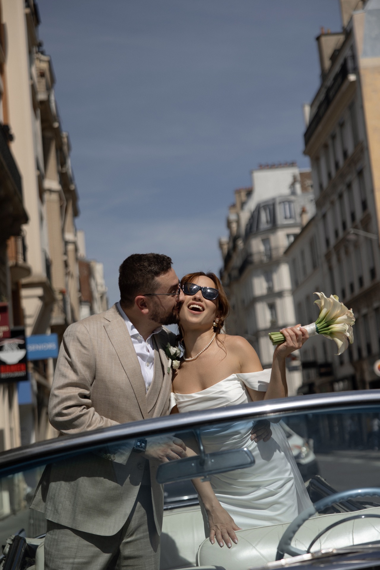 Из Парижа до замка, где проходила наша свадьба, мы ехали на роскошном голубом кабриолете.
