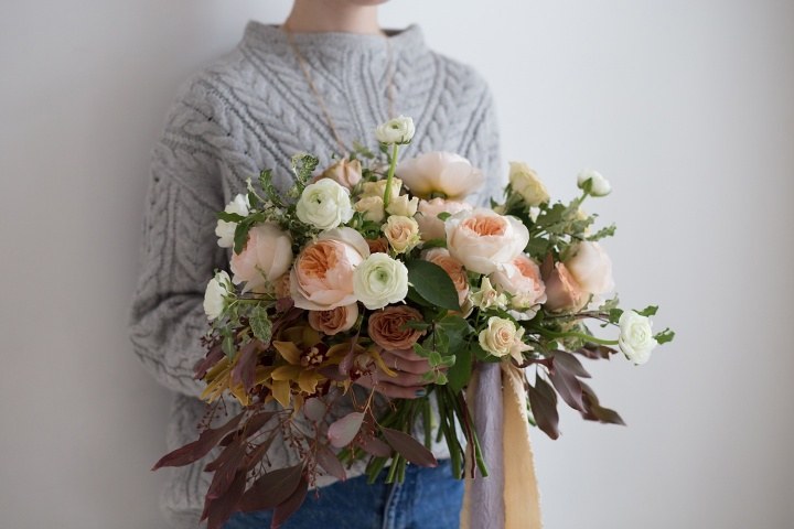 Такой букет идеально дополнит романтичный и элегантный образ невесты. Особенно хорошо он будет смотреться на съемках на природе и свадьбах за городом или в усадьбах. Почти все цветы из этого букета доступны круглый год, исключение — ранункулюсы, у которых сезон длится примерно с октября по май.
