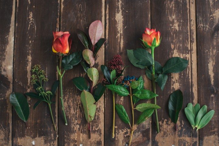 В этом году осень показалась почему-то особенно сказочной и очаровательной. Хотелось как можно больше гулять в парках, собирать листья кленов, каштанов, рябины, наслаждаться последними теплыми солнечными днями. Невероятное количество красок и оттенков вдохновило нас на эксперименты с букетом. Мы решили посвятить его нашему осеннему настроению. Основным акцентом были выбраны многочисленные оттенки бордового, которые разбавили оранжевые и зеленые цвета, а совсем немного синих ягод вибурмуна напоминают о плодах черноплодки, которые осенью так романтично выглядывают среди желто-красной листвы.