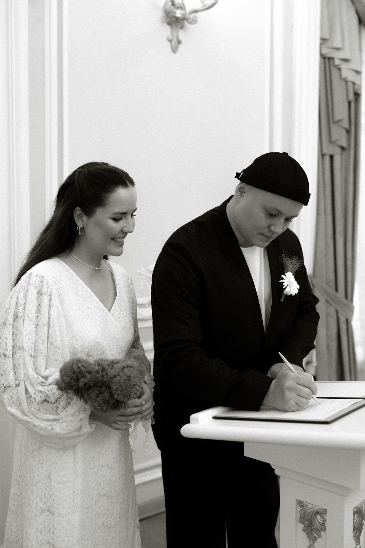 Активную подготовку начали в ноябре 2024 года, после того как нашли организаторов. Мы остановили свой выбор на агентстве Very Marry, которых нашли в каталоге Weddywood, и ни разу не пожалели об этом решении. До появления организатора я немного переживала, потому что в голове была каша из свадебных референсов. Но с Настей всё встало на свои места: она стала для нас и организатором, и психологической поддержкой.