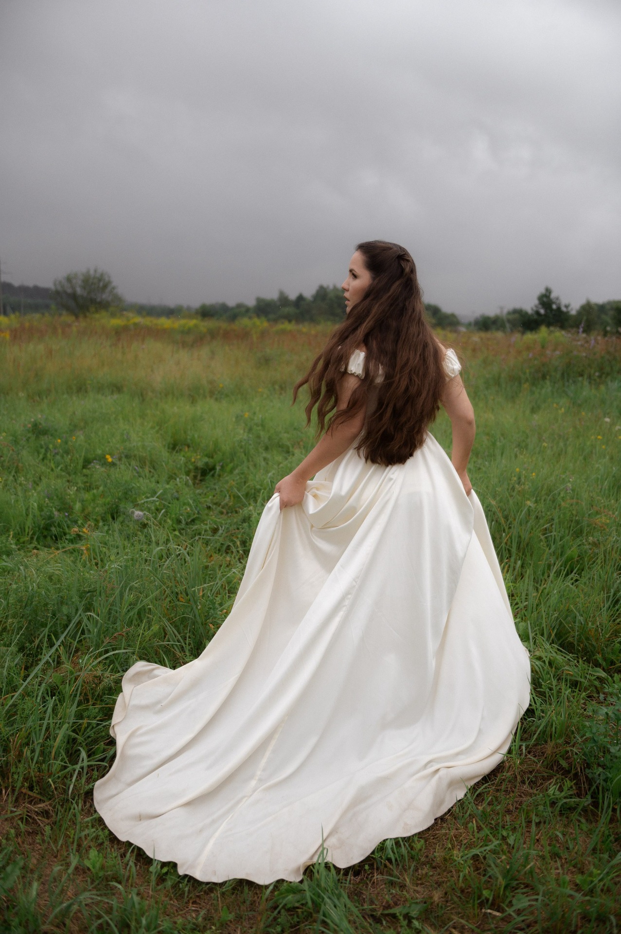 Для росписи я выбрала платье от Le PomPon в Петербурге. Изначально я представляла себя в другом образе этого бренда, но в итоге решила примерить совершенно иной фасон, и он оказался даже лучше, чем я могла бы подумать. Я остановила свой выбор на ретро-платье, в которое влюбилась бесповоротно и окончательно.