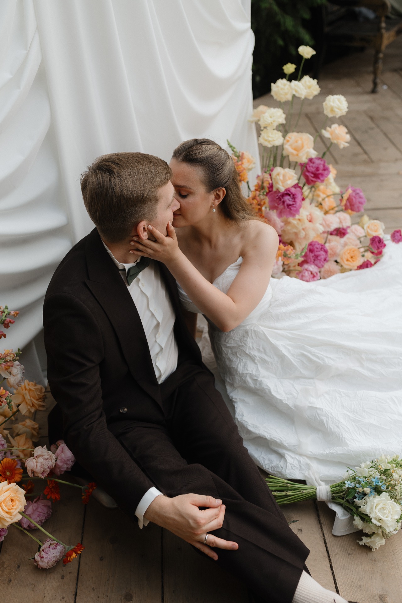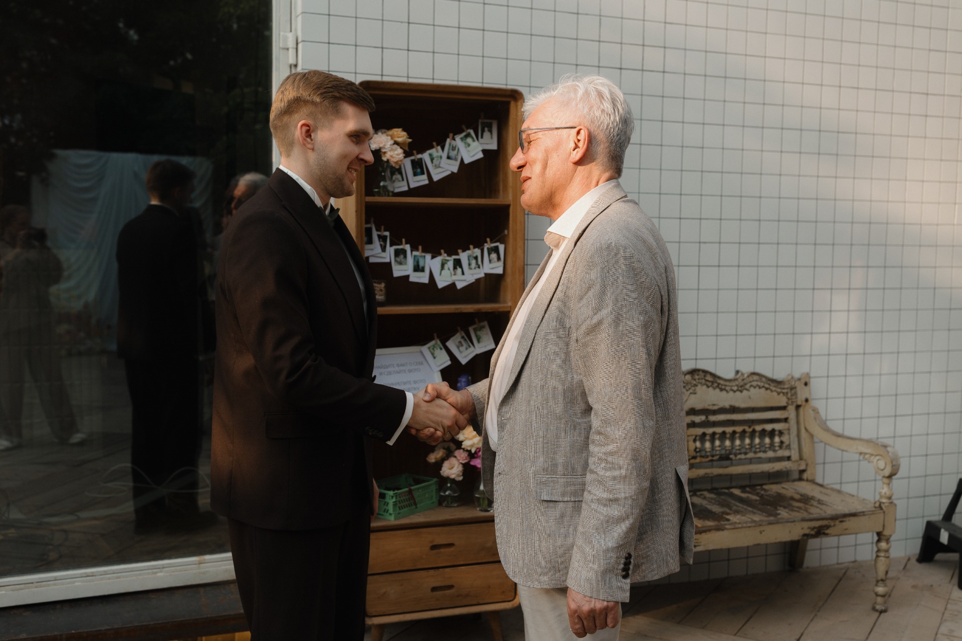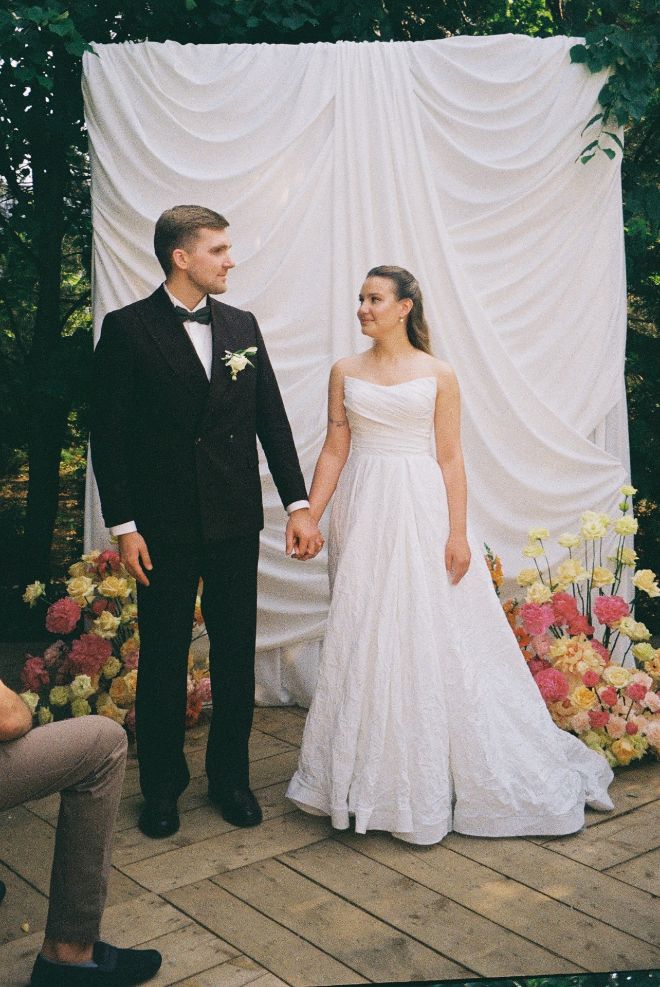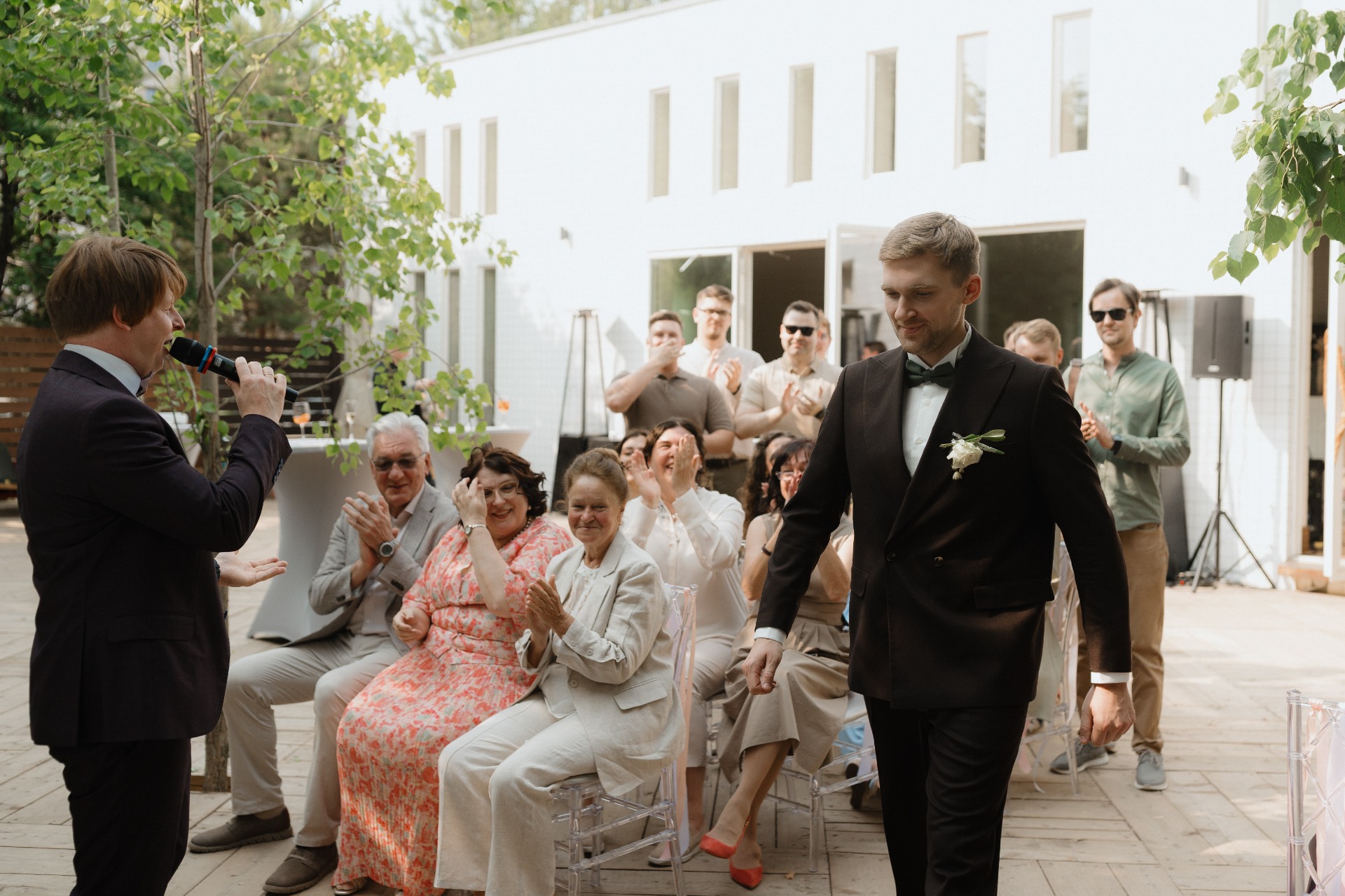 А Тёма был в классическом двубортном коричневом костюме с элегантной бабочкой. Ну, жених!