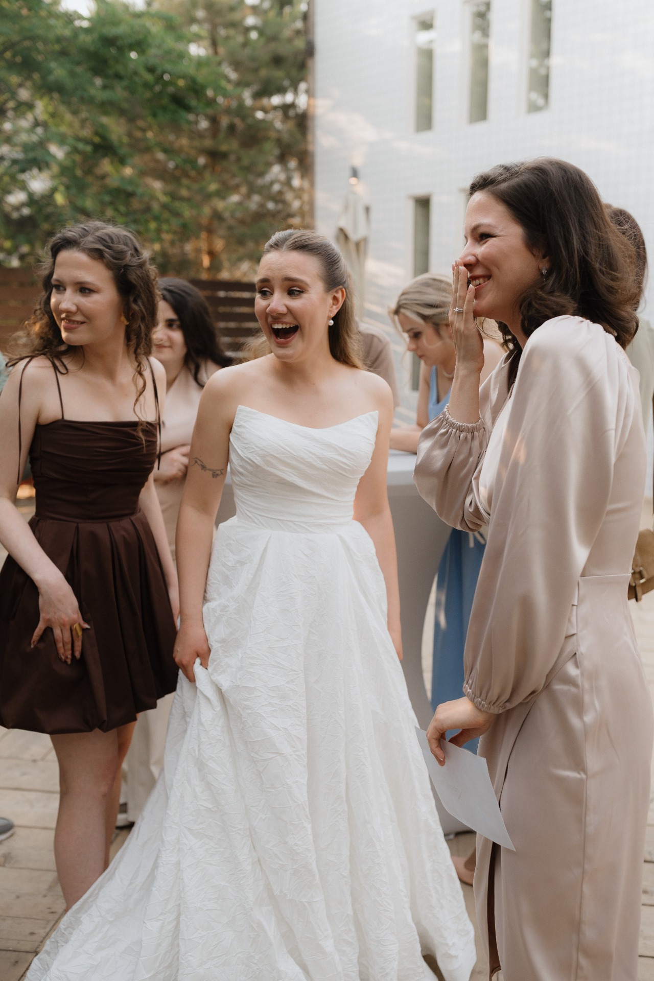По историям знакомых нас готовили по общей инструкции перед свадьбой, звучала она примерно так: «Этот день очень быстро пройдёт, запоминайте каждый миг. Не спешите и наслаждайтесь. И главное, расслабьтесь — ведь что-то точно пойдёт не по плану».