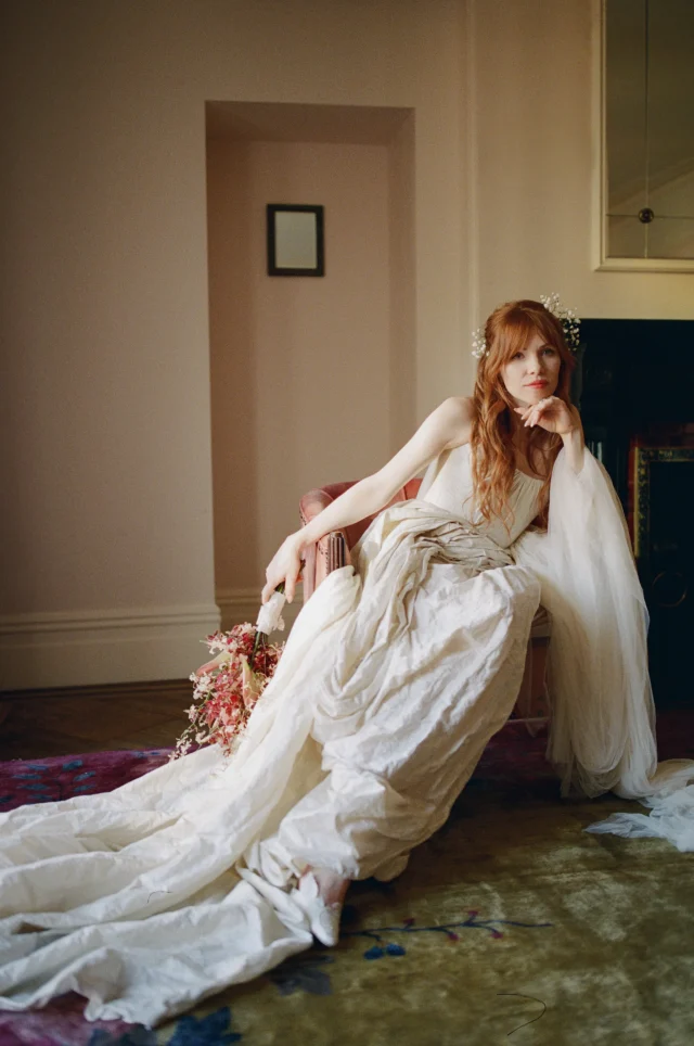 Для свадебного образа Алана выбрала архивное платье от Vivienne Westwood и дополнила его аметистовыми серьгами своей матери Мэри. Подробнее о паре и свадьбе рассказывали здесь.