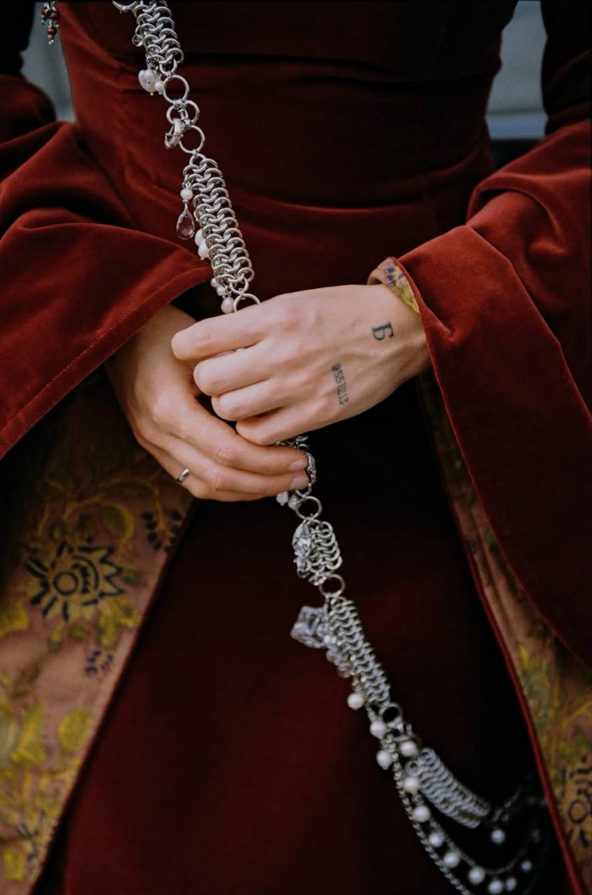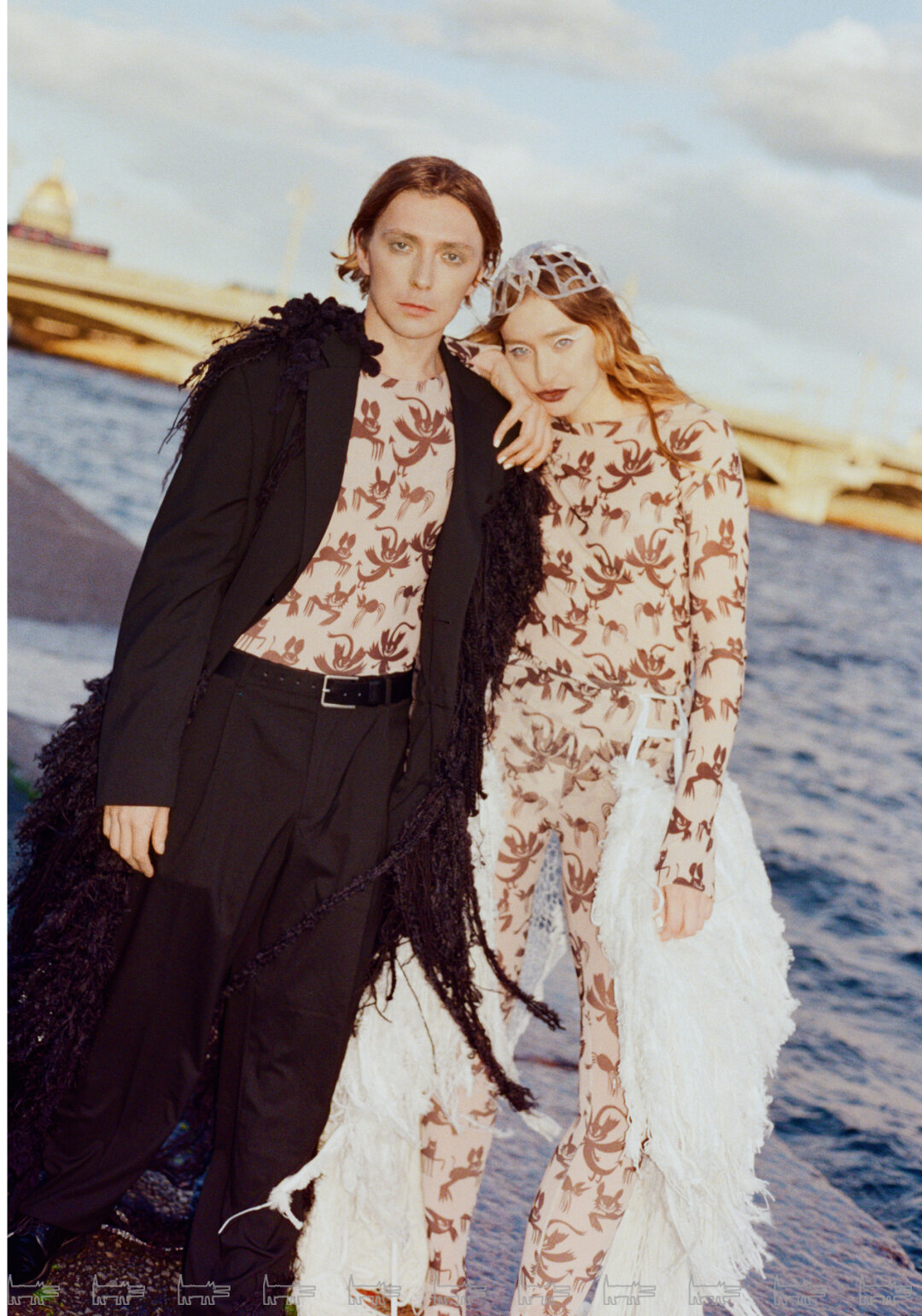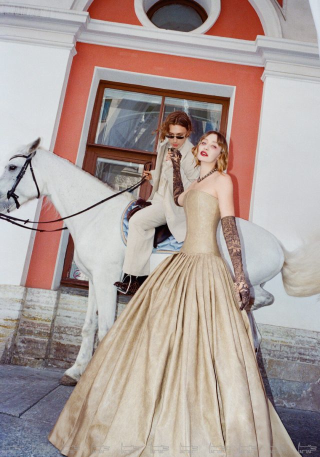 На каждой локации у пары были разные и смелые образы. А красной нитью съёмки стали русские свадебные символы: голуби, лебеди и белый конь, которые были переосмыслены с фирменным авангардным вкусом пары. Подробнее о съёмке рассказывали здесь.