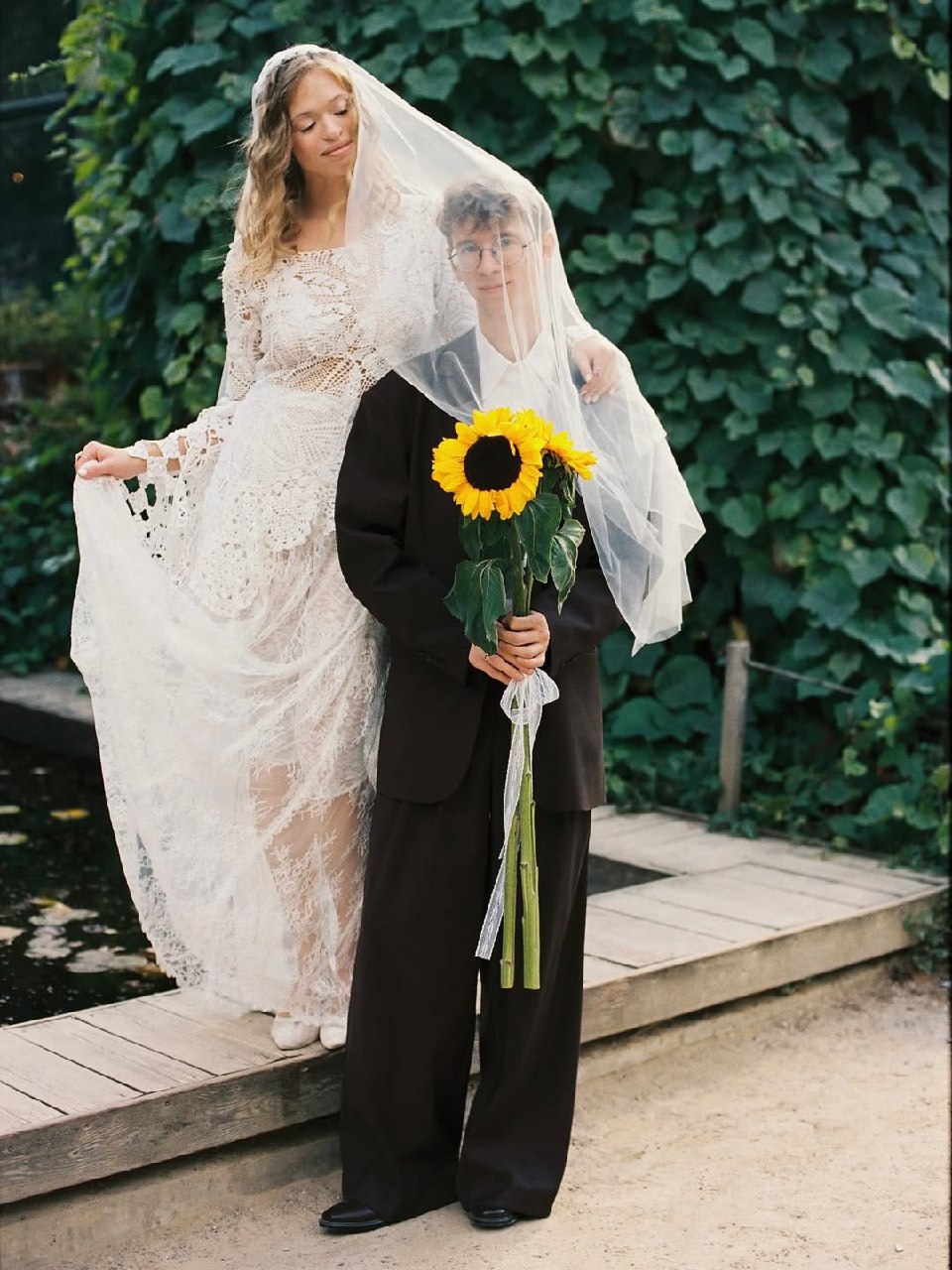 Нина выбрала невероятное кружевное платье их бренда, а в руки взяла вау-букет из подсолнухов. Рассматриваем эти кадры и поздравляем пару!