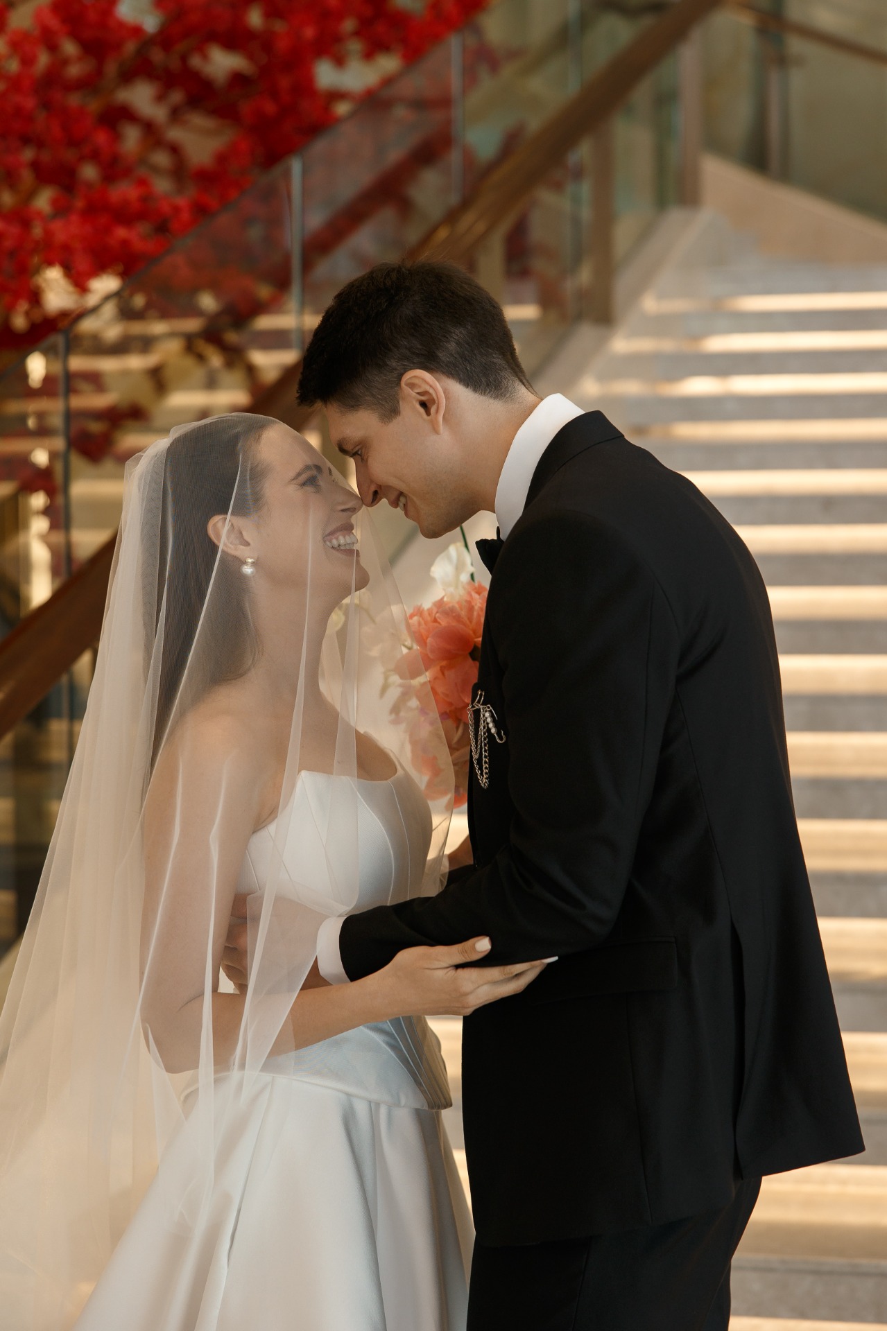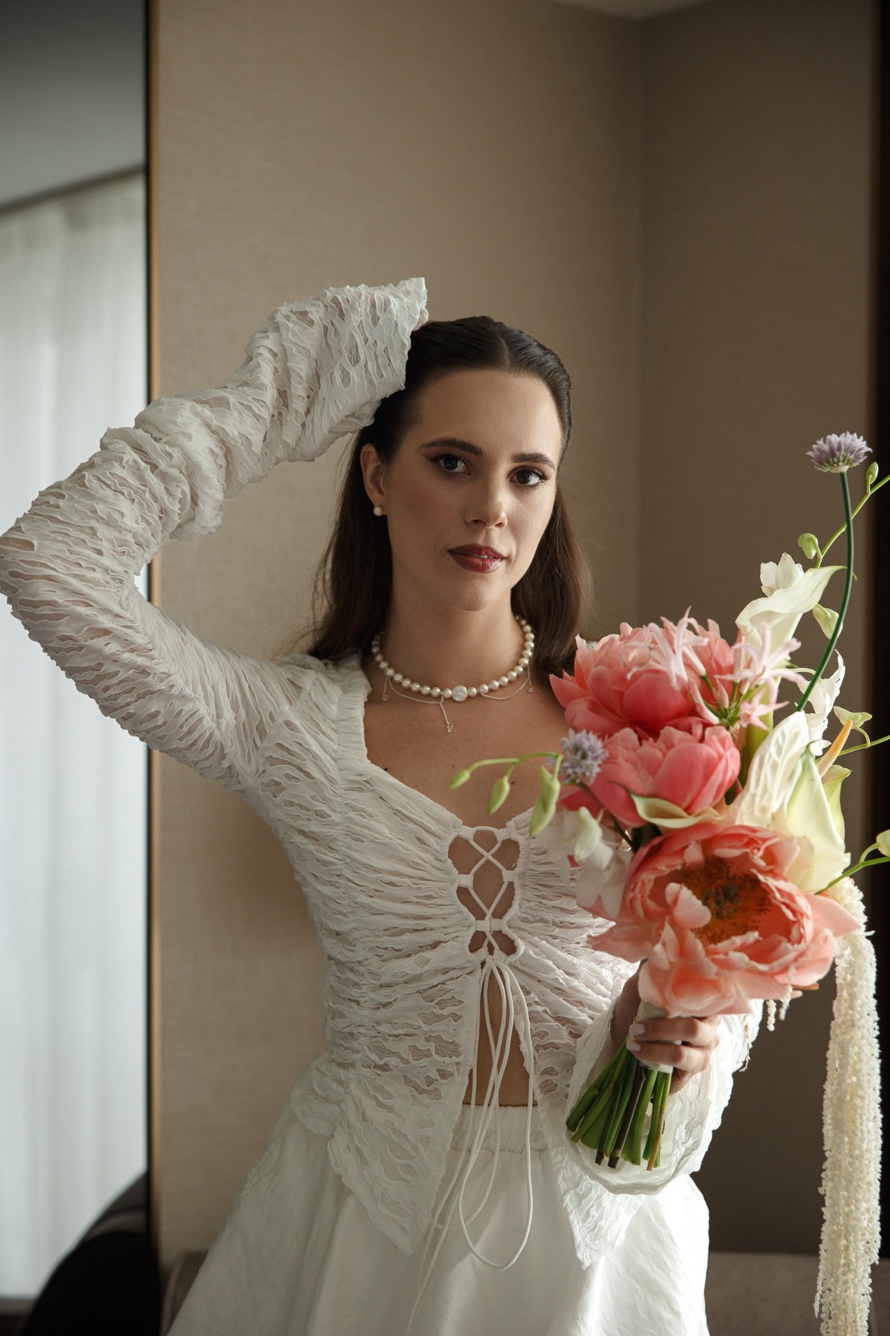 Утро началось в отеле Soluxe на Ботаническом саду. Пока стилист создавал мой образ, за окном сгущались тучи, и казалось, что вот-вот пойдёт дождь. Я начала волноваться за церемонию, как вдруг вбежал Коля и сказал: «Дождя не будет, я оплатил 30 зонтов!» Я рассмеялась — но дождя действительно не было.