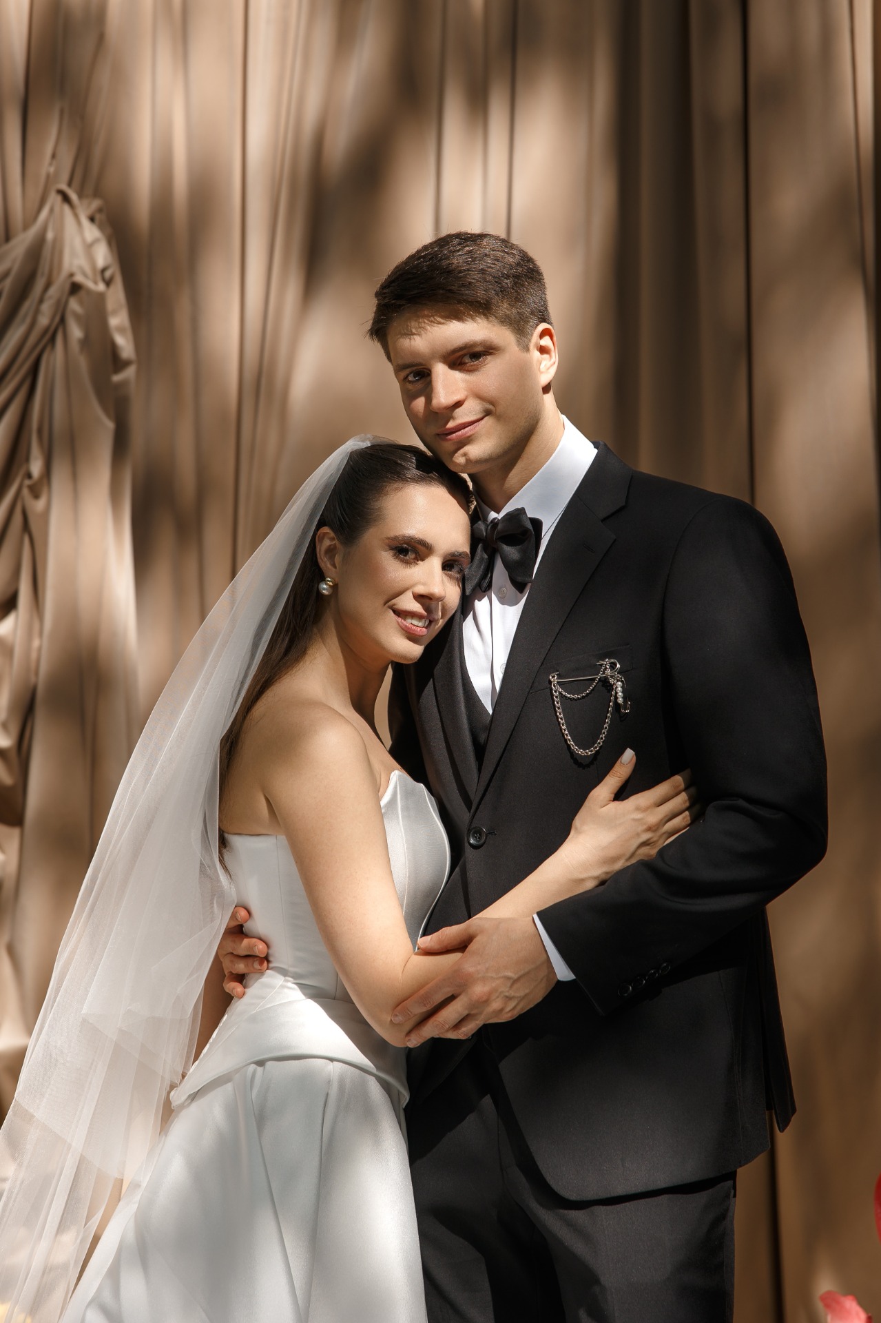 Я — архитектор и увлекаюсь графическим дизайном: люблю продуманные формы, гармонию и живость деталей. Коля — стоматолог-хирург с потрясающим чувством юмора. Его спокойствие идеально дополняло моё стремление к эстетике и эмоциям. Из этого союза родилась атмосфера праздника.