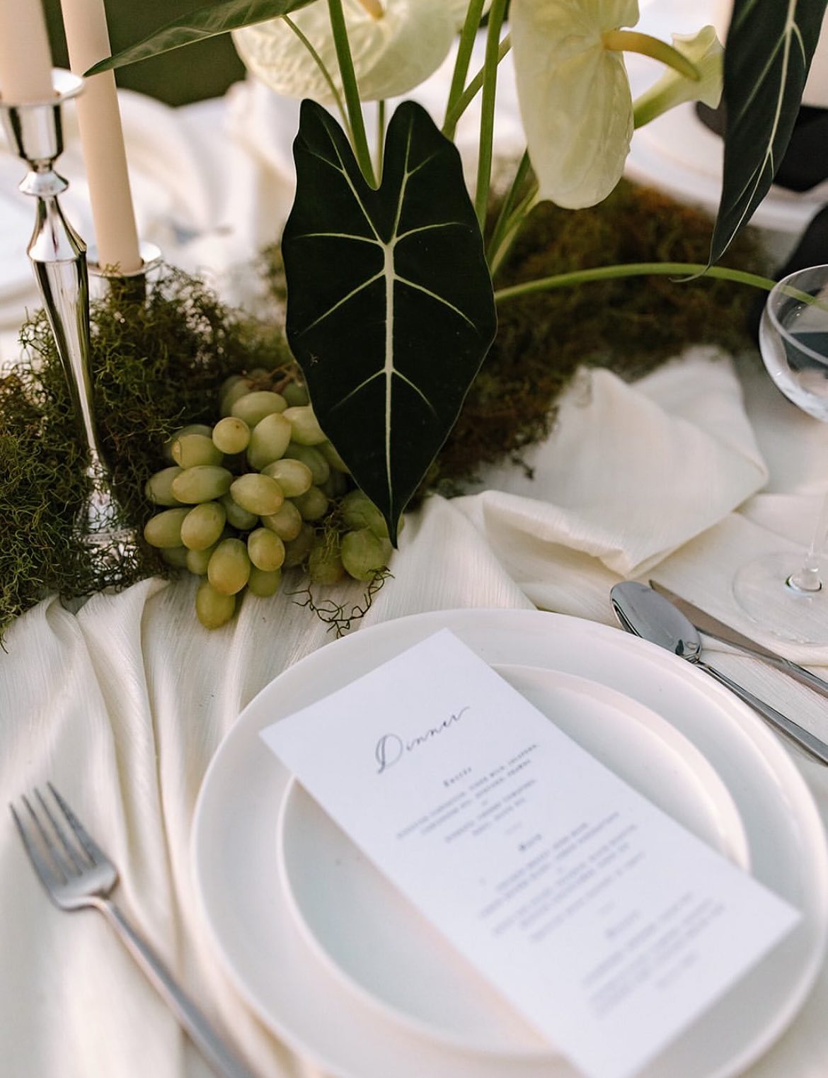 - Флористика «less is more»: много зелени, сухие травы, моно-букеты