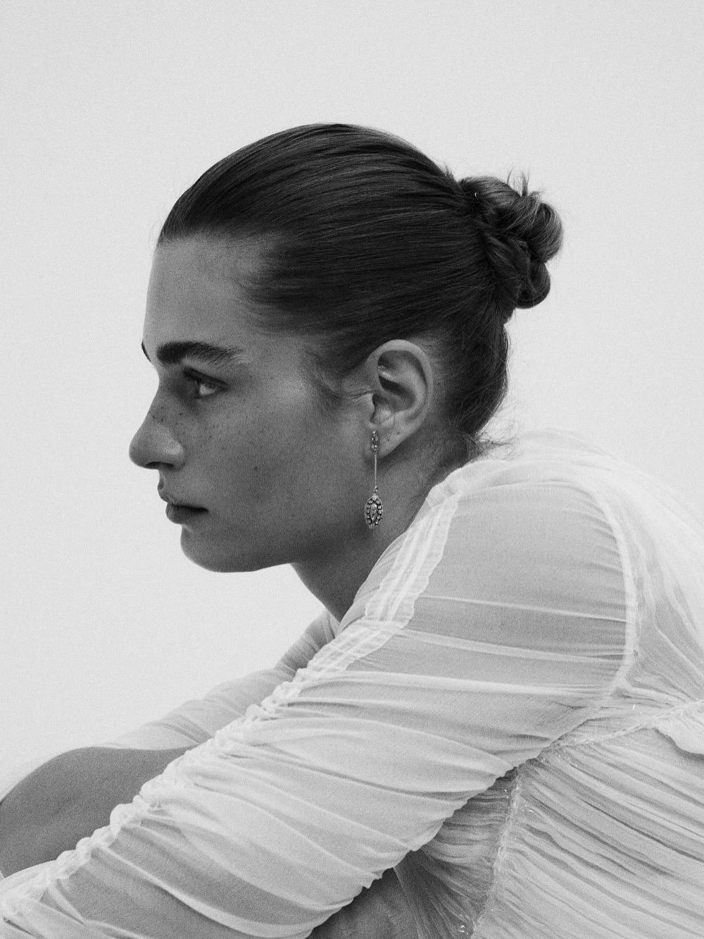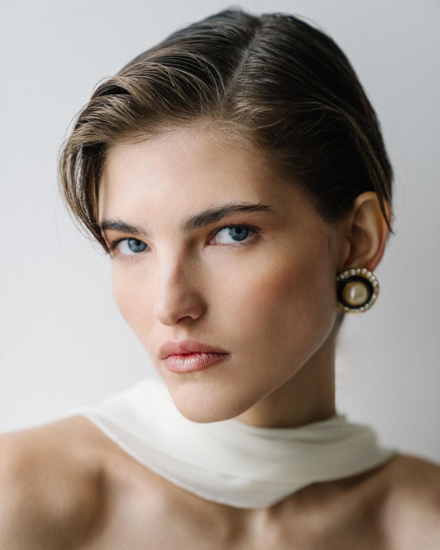 Откажись от крупного глиттера и яркого шиммера: на фото при естественном свете они могут выглядеть неаккуратно. Вместо этого добавь немного деликатного хайлайтера на верх скул и лёгкий мерцающий акцент под бровями.