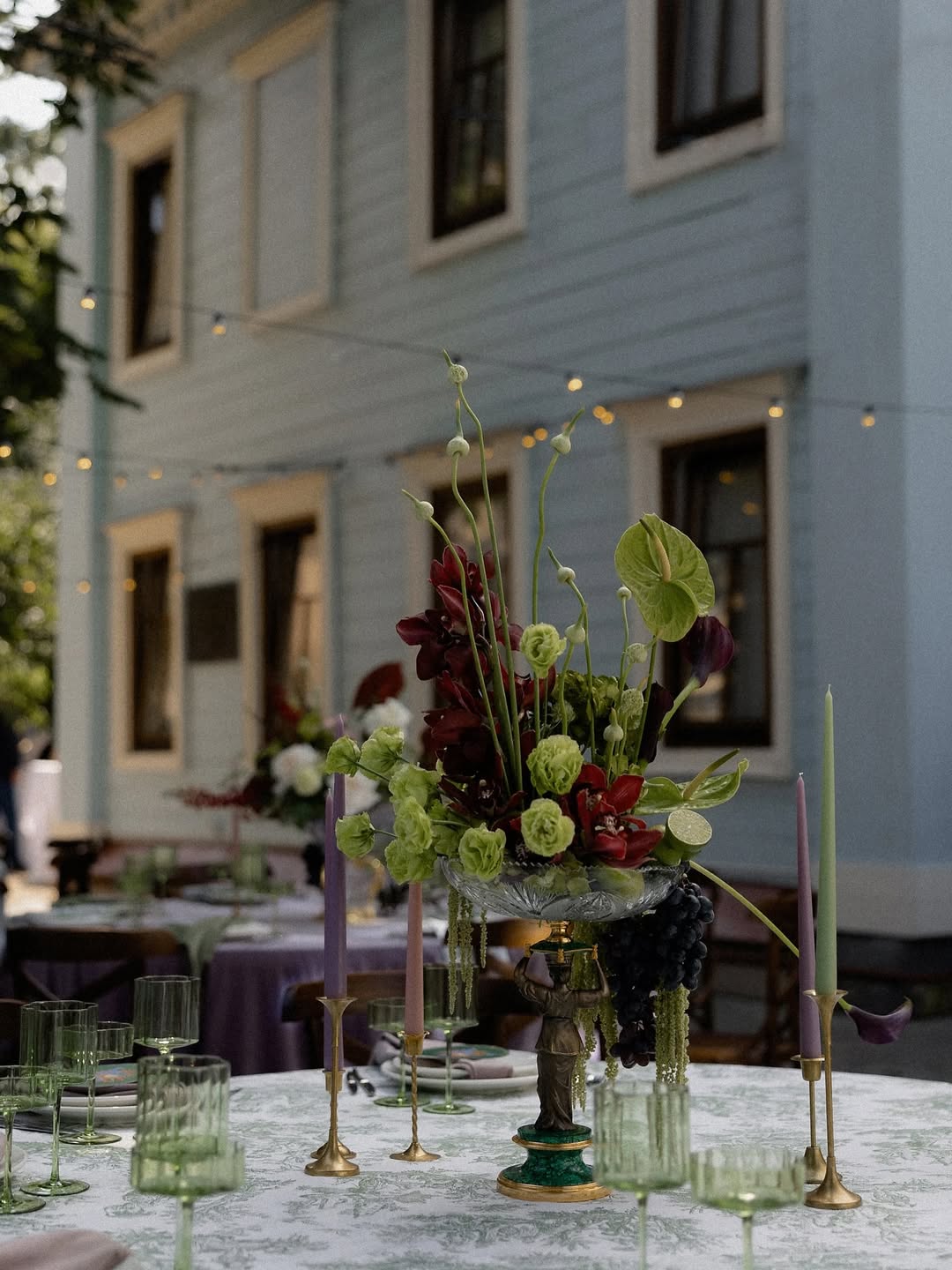 Вдохновлённые атмосферой усадьбы, Вера и Влад вместе со свадебным агентством продолжили тему винтажа и преемственности поколений. В квартире бабушки невеста нашла винтажные предметы декора, которые стали частью оформления столов. Вазы, канделябры и часы, дополненные современной флористикой, превратились в важные детали свадебного оформления.