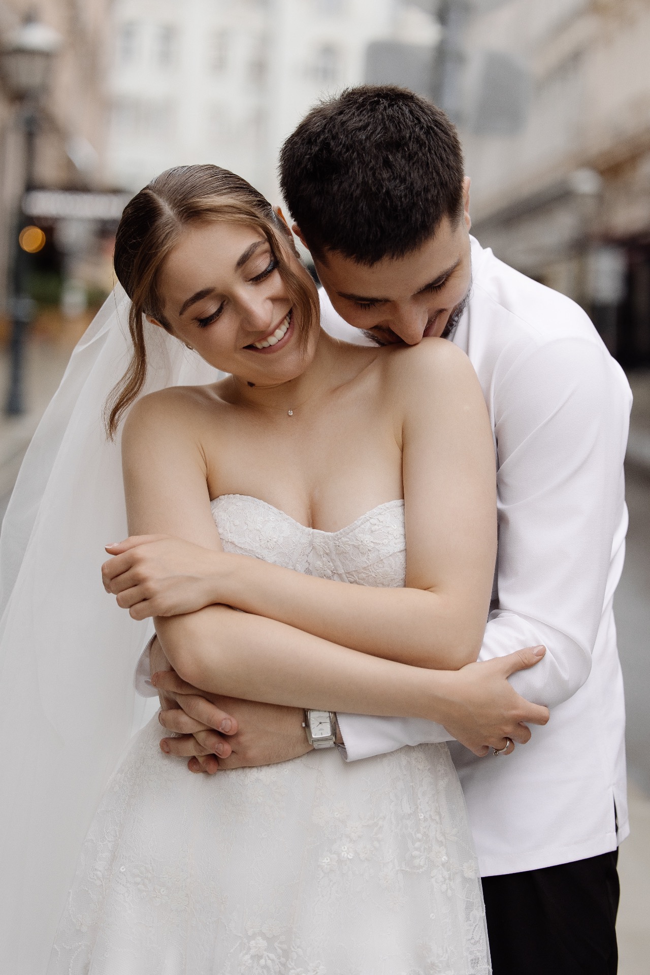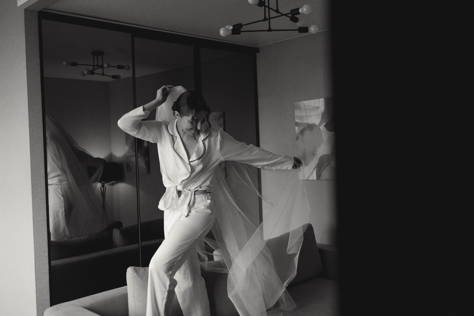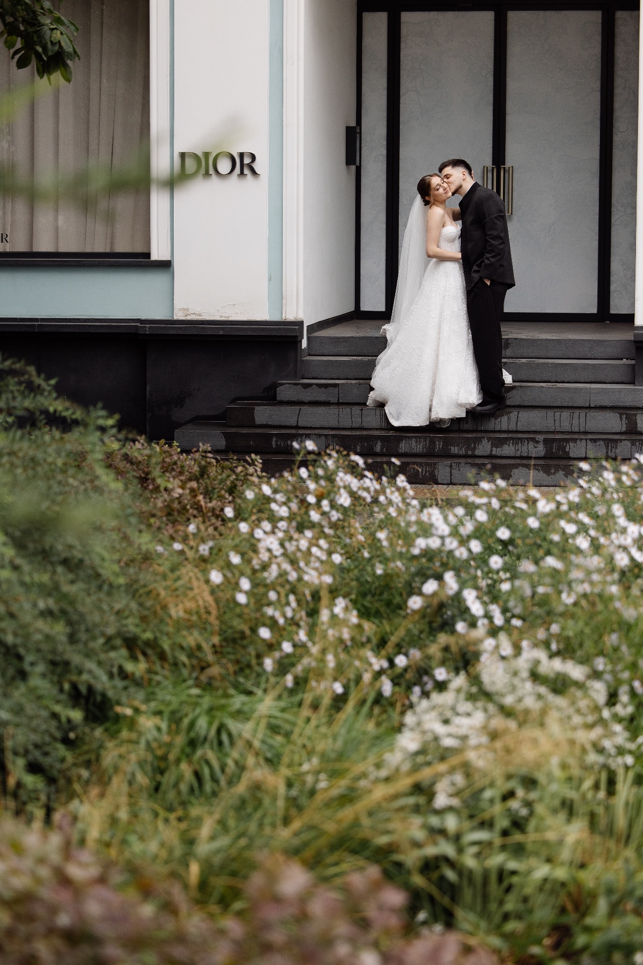 Мы до самого дня свадьбы не говорили друг другу, в чём будем: Петя не видел мой образ, а я — его. Нам обоим хотелось классики, но не строгой, а утончённой, нежной и очень спокойной по настроению.