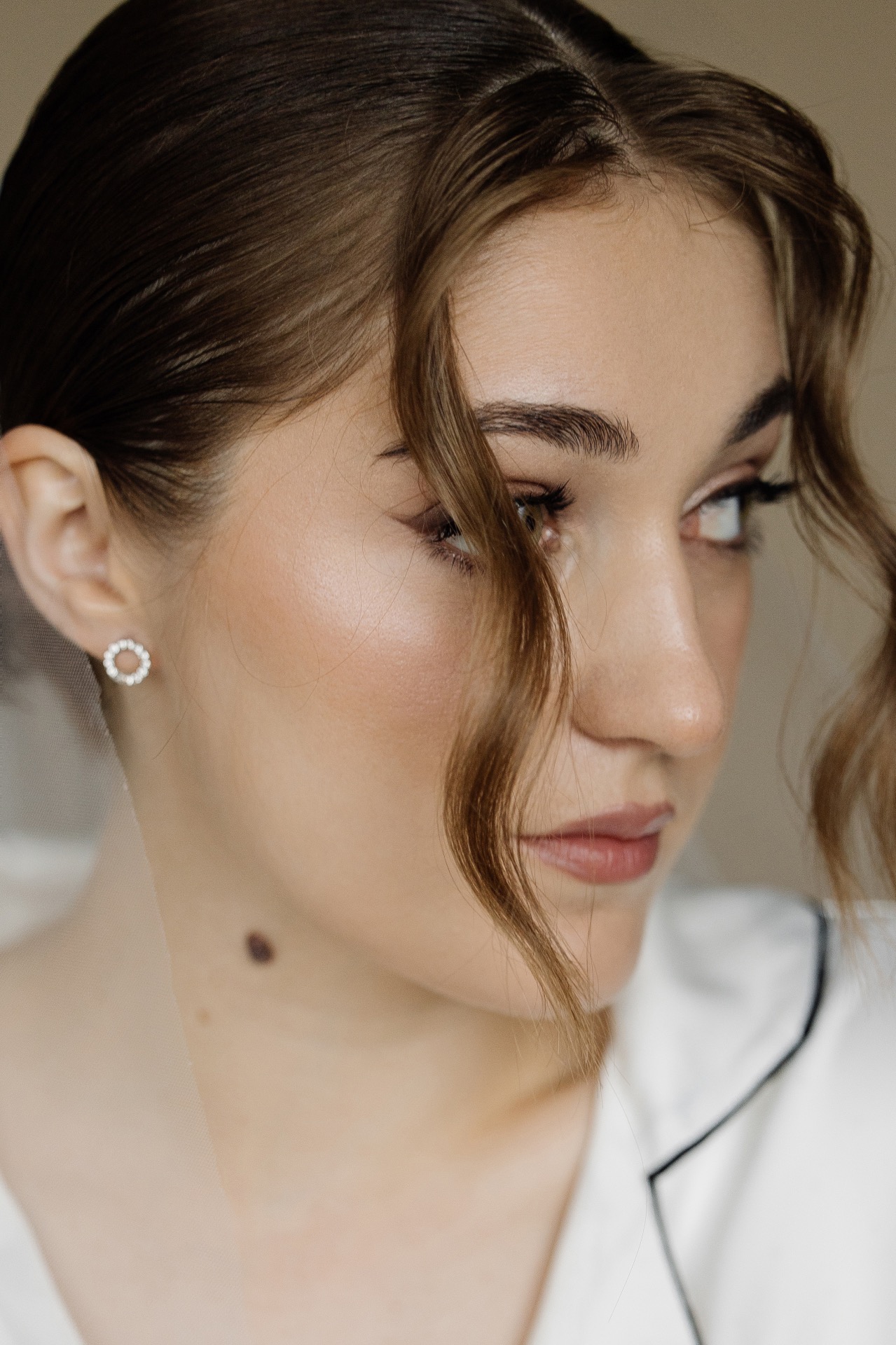 Из украшений я выбрала тонкую подвеску на леске с маленьким камнем в центре, серьги-гвоздики и два кольца: помолвочное и обручальное.