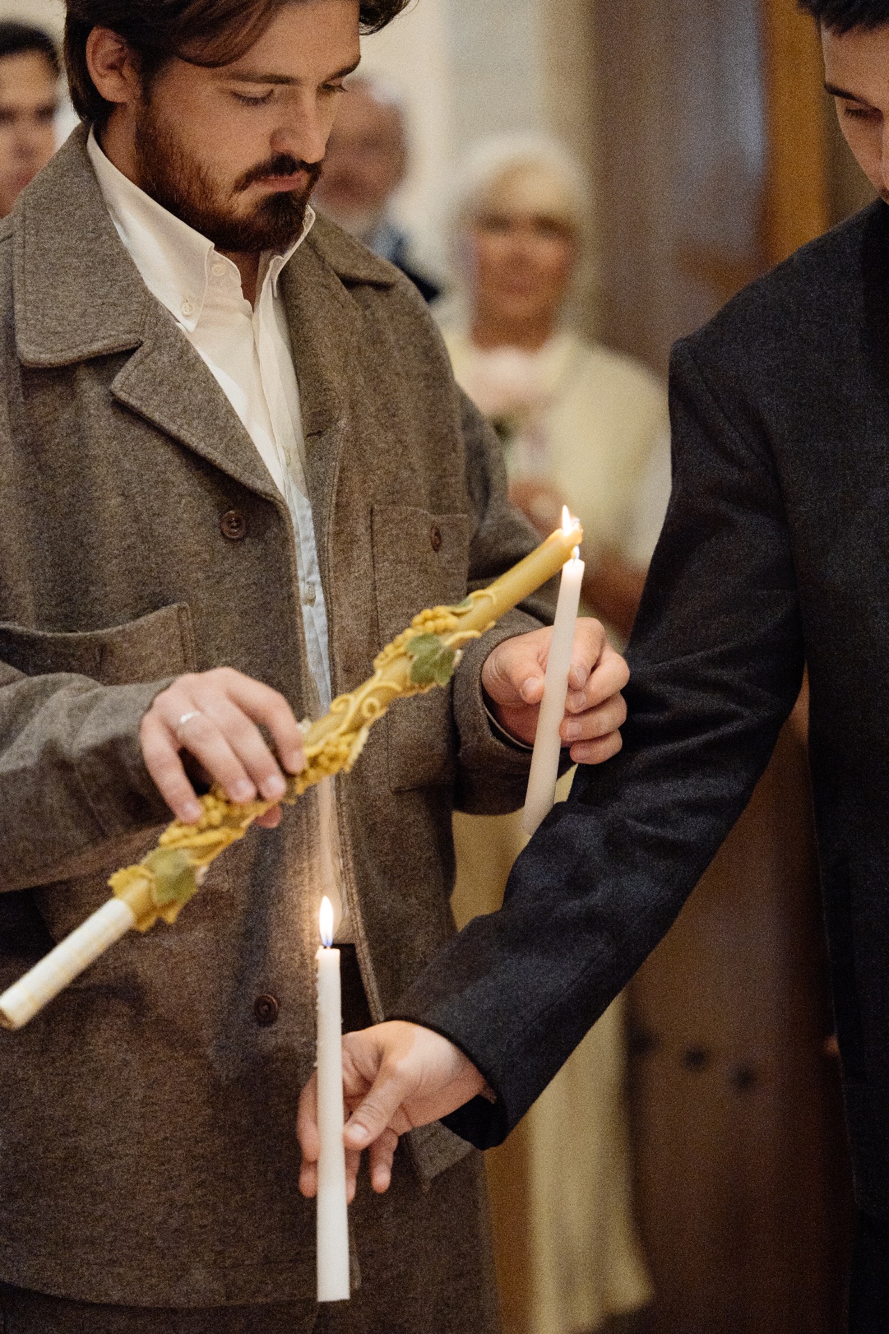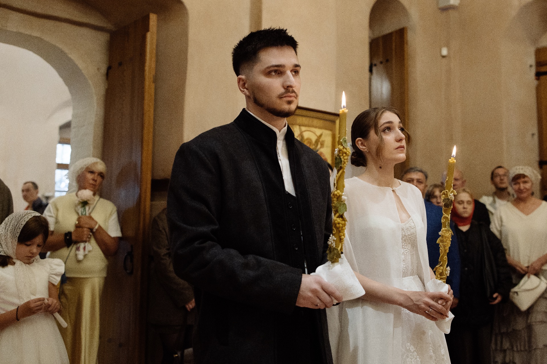 Перед венчанием мы забыли свечи — те самые, ручной работы, привезённые из монастыря в Грузии. Волнение нарастало, и когда я впервые увидела Петю, я сразу расплакалась.