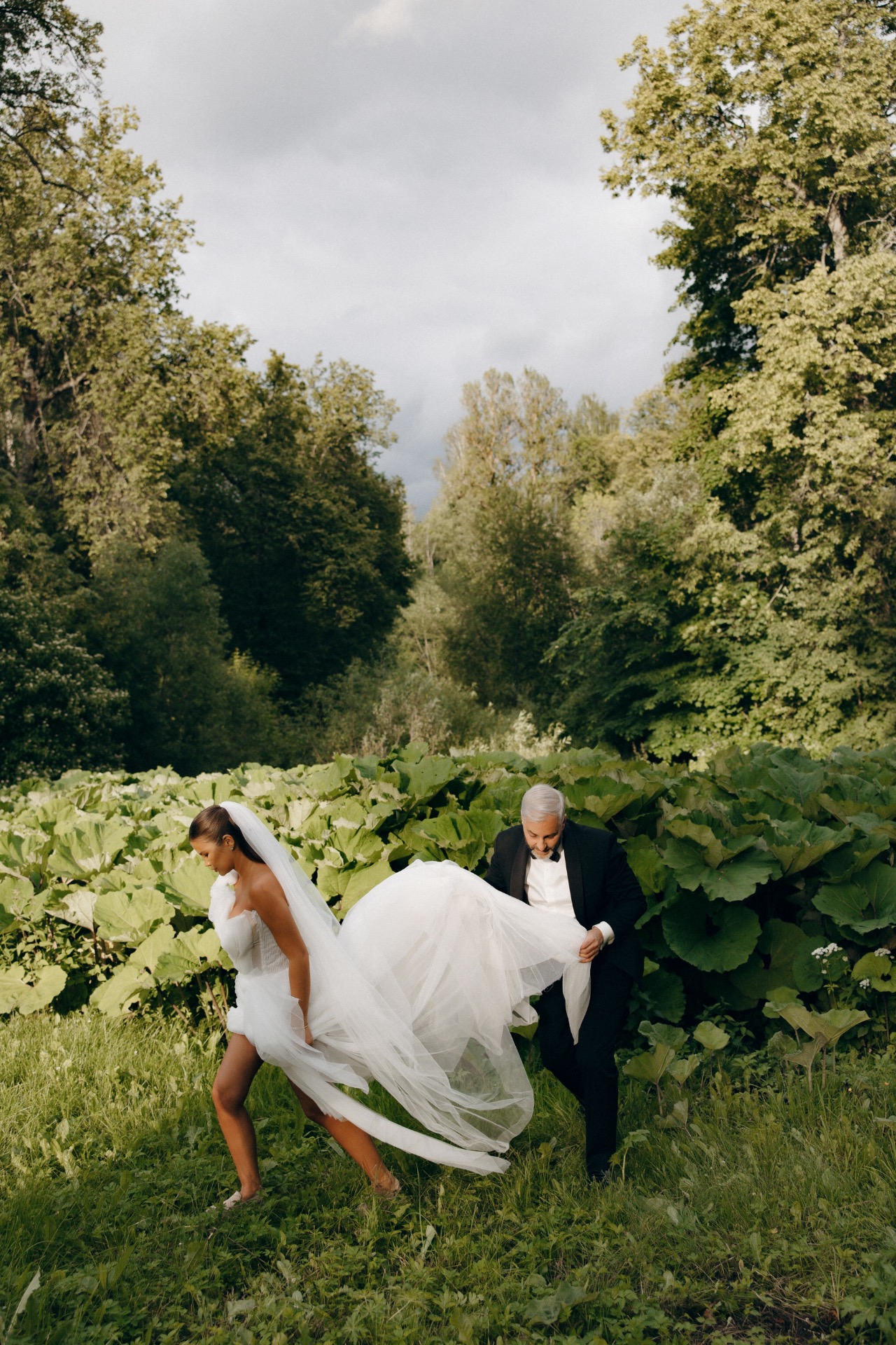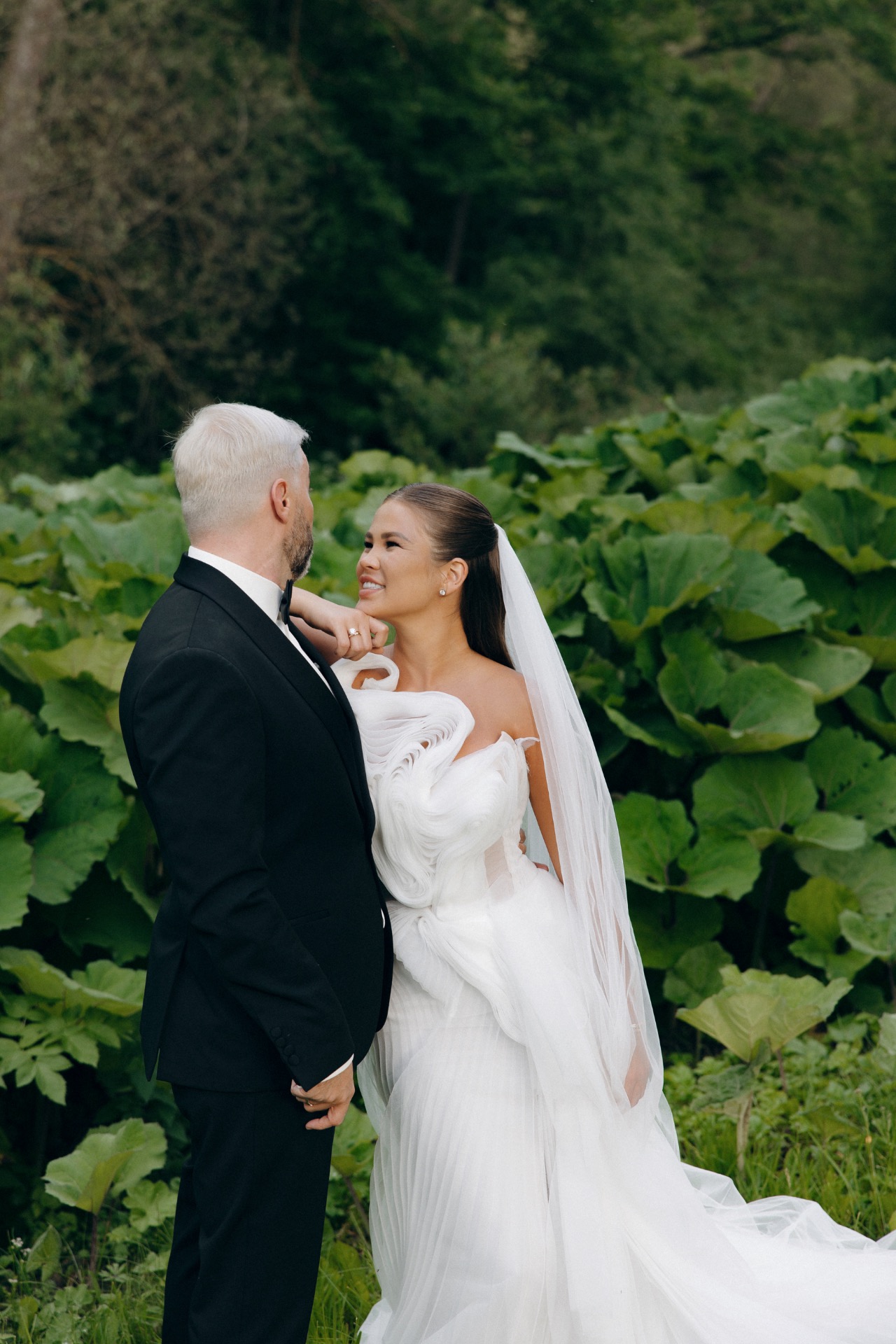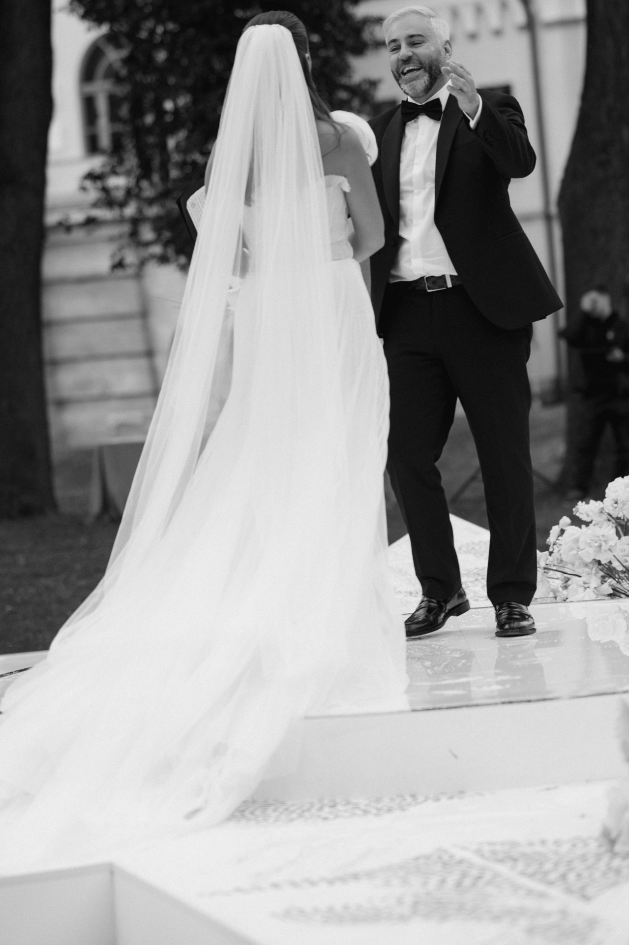 До начала церемонии пошёл тёплый дождь — гости с прозрачными зонтами выглядели словно герои кино. Всё стало ещё атмосфернее, особенно когда дождь закончился ровно к началу.