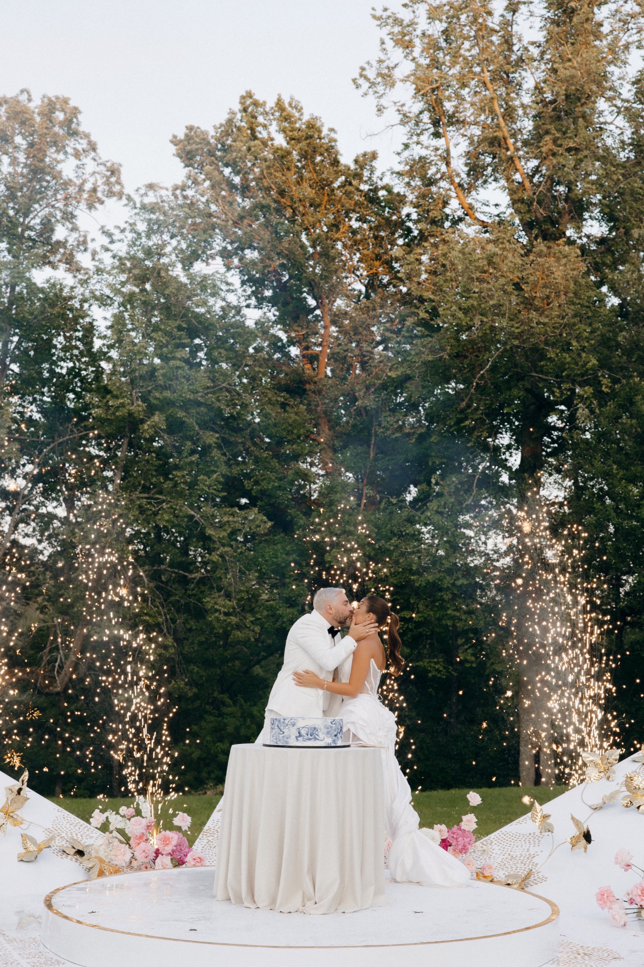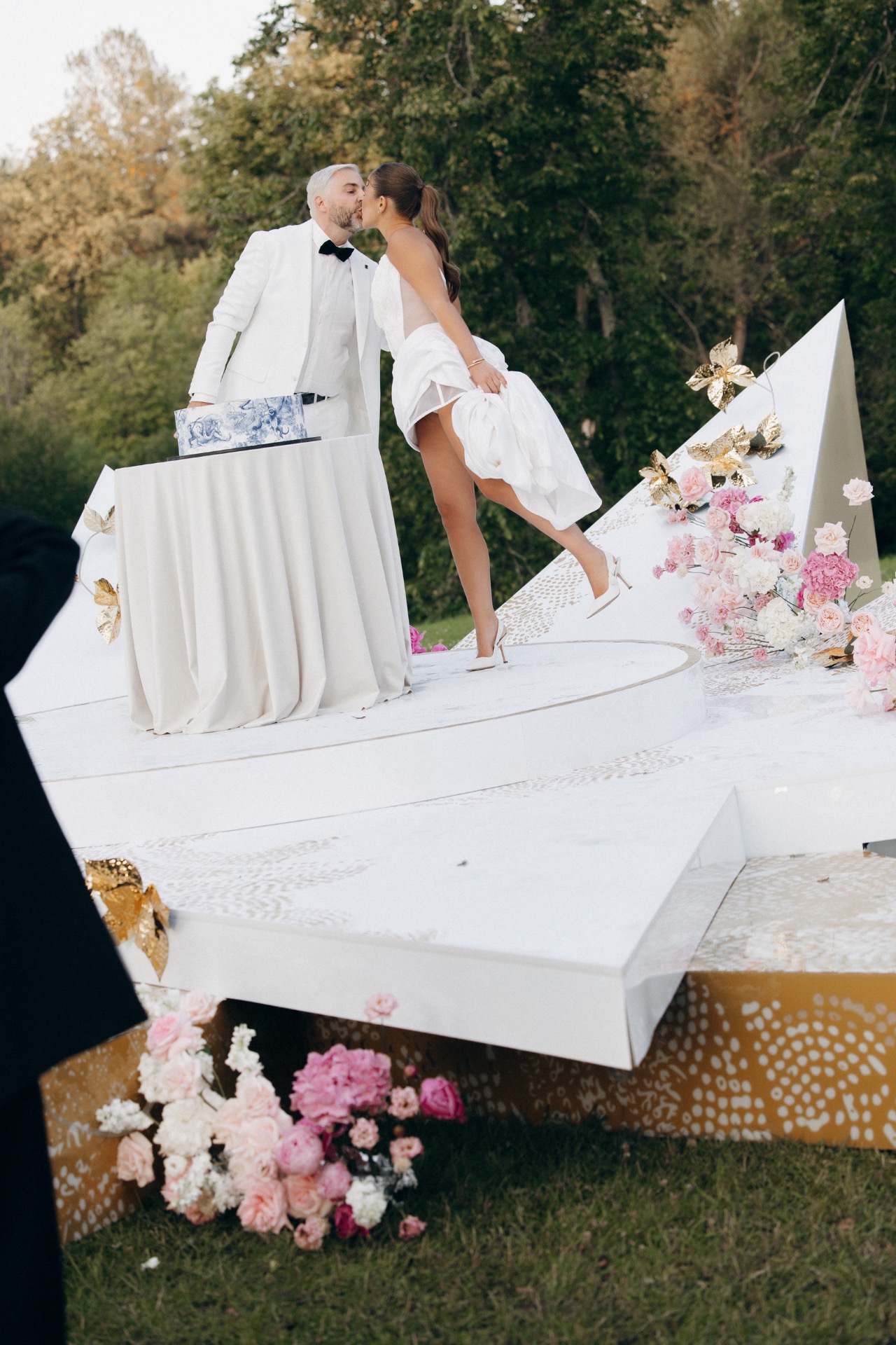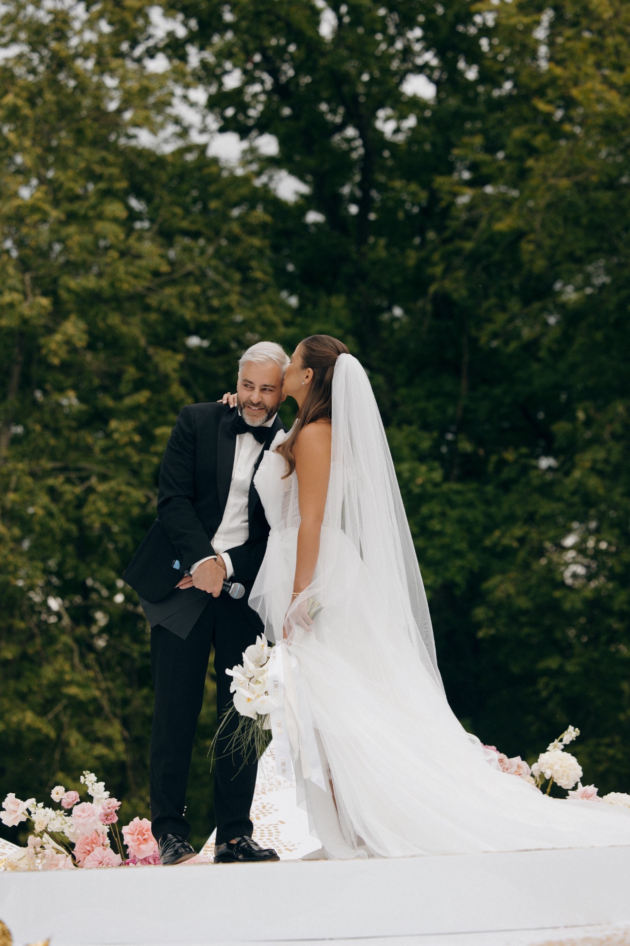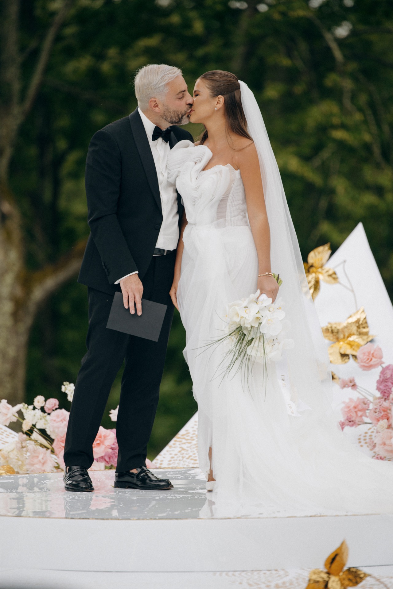 Первый день — безупречная церемония, утопающая в живых цветах и деталях. Центральным элементом стала звезда Dior — подиум, на котором проходила вся церемония и где мы стояли.