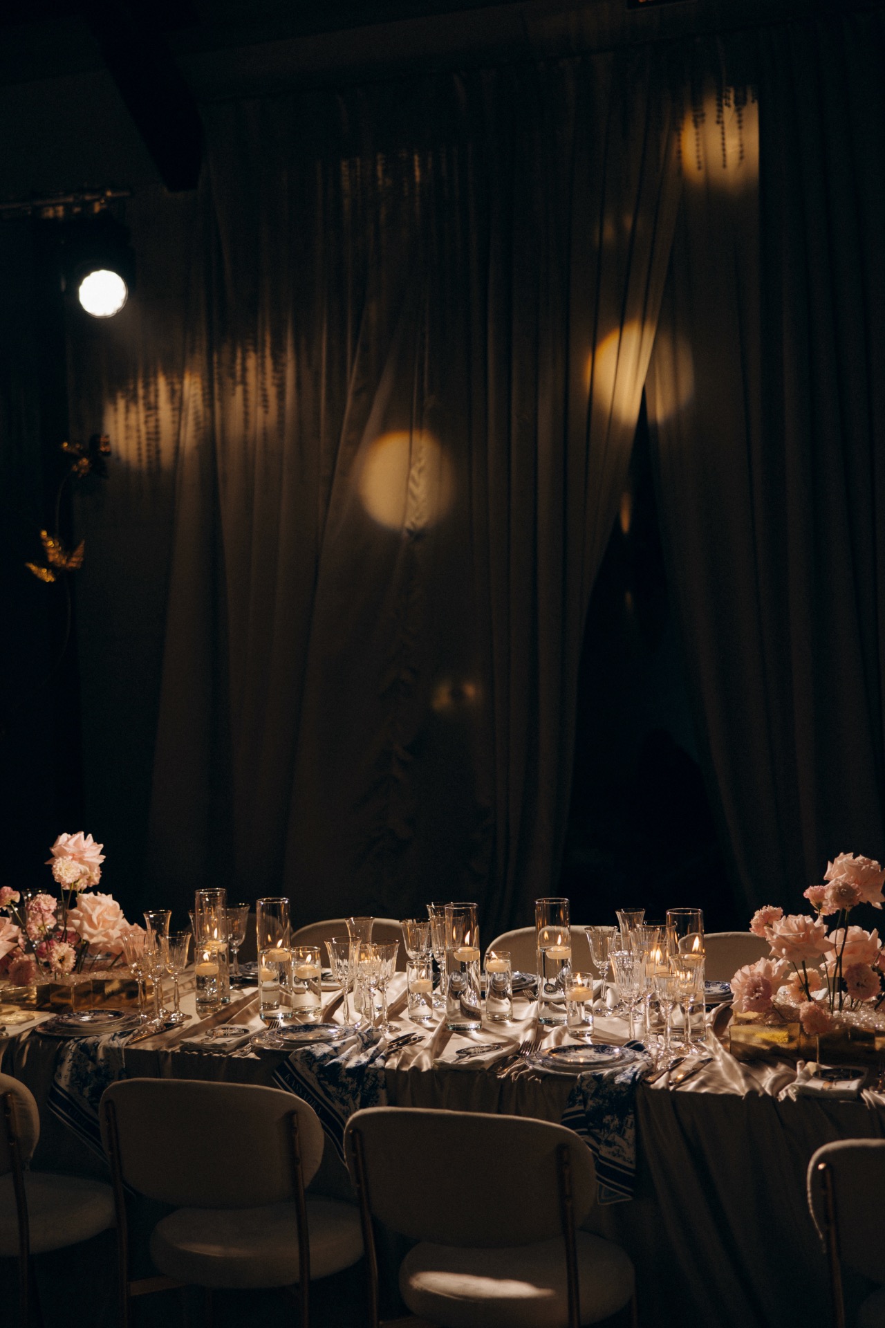 Концепция родилась из желания объединить изысканность, лёгкость и личные черты нашей пары. Мы остановились на стиле, вдохновлённом Dior: чистые линии, утончённые формы, мягкая палитра кремовых, белых и золотистых оттенков, гармония текстур. Каждый элемент декора, флористика, текстиль, свечи, освещение, работал на ощущение единства и красоты.