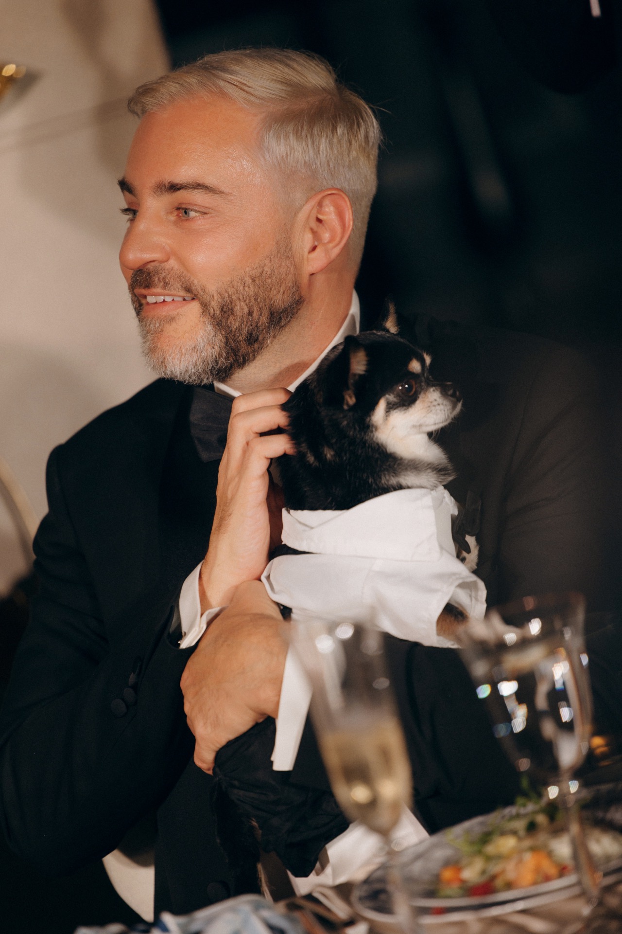 Вечером Крис блистал в белом смокинге — элегантном, уверенном, гармонично перекликающемся с моим образом.