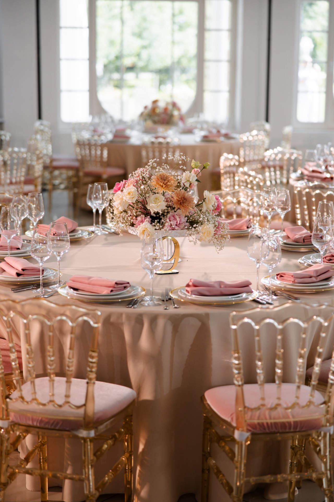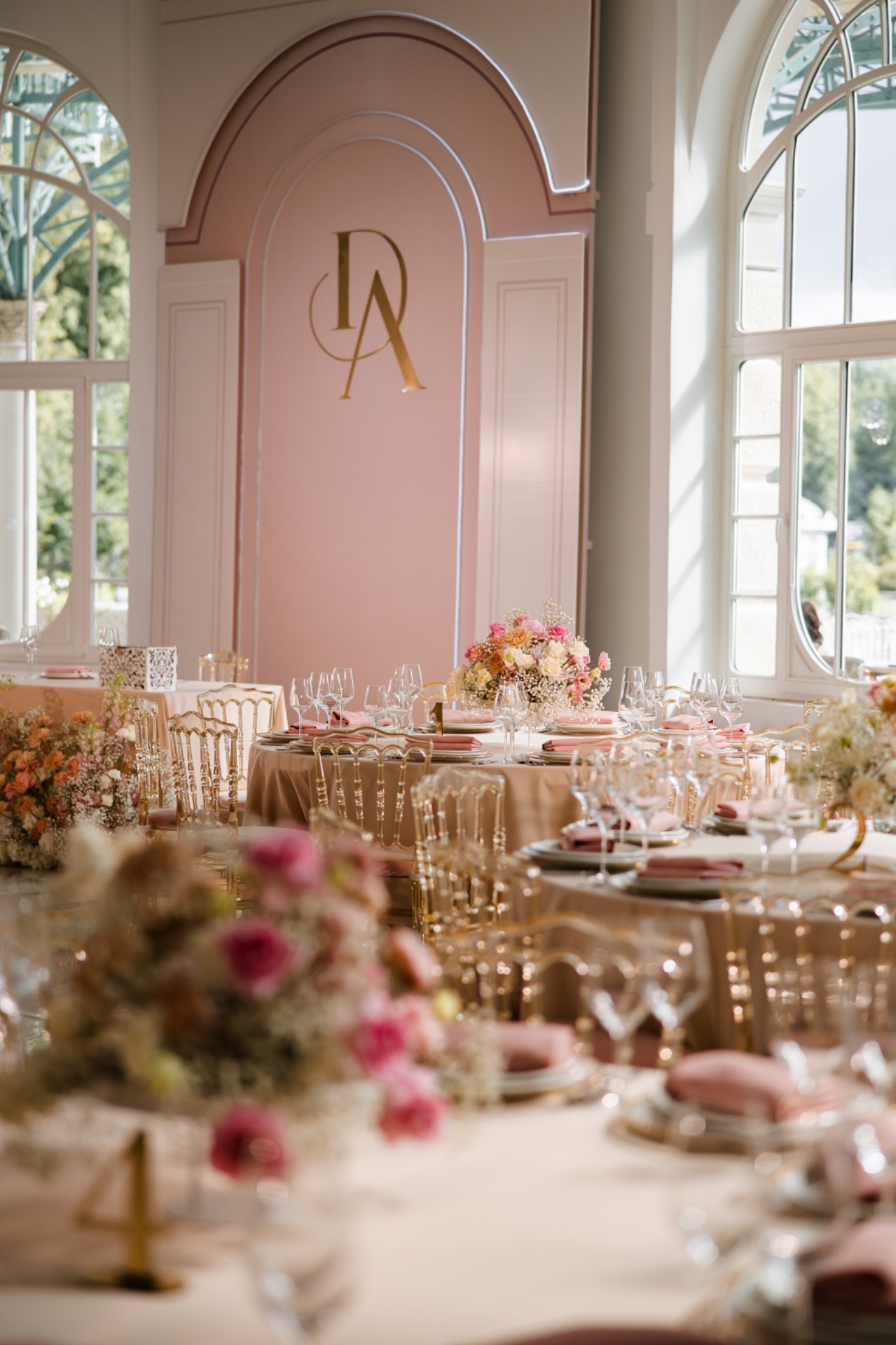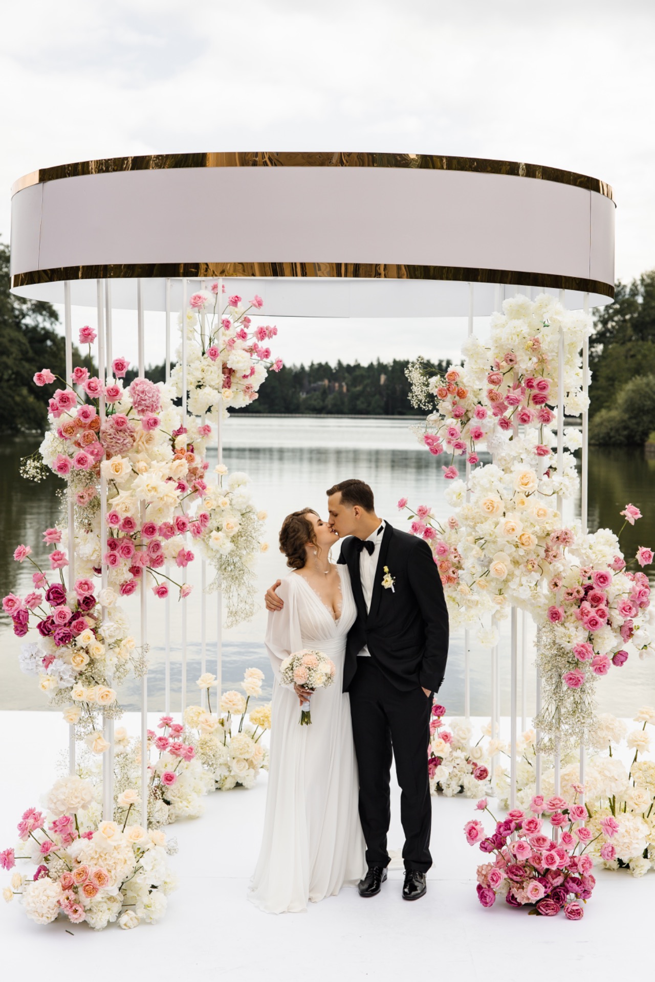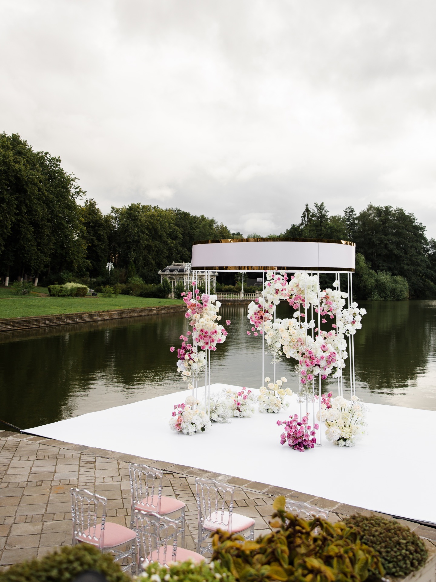 Мы очень спокойные ребята и сразу понимали, что хотим максимально классический стиль в декоре. Розовая палитра была выбрана благодаря моему любимому цвету. А ещё он идеально подходил выбранной нами площадке — Вилла Ротонда.