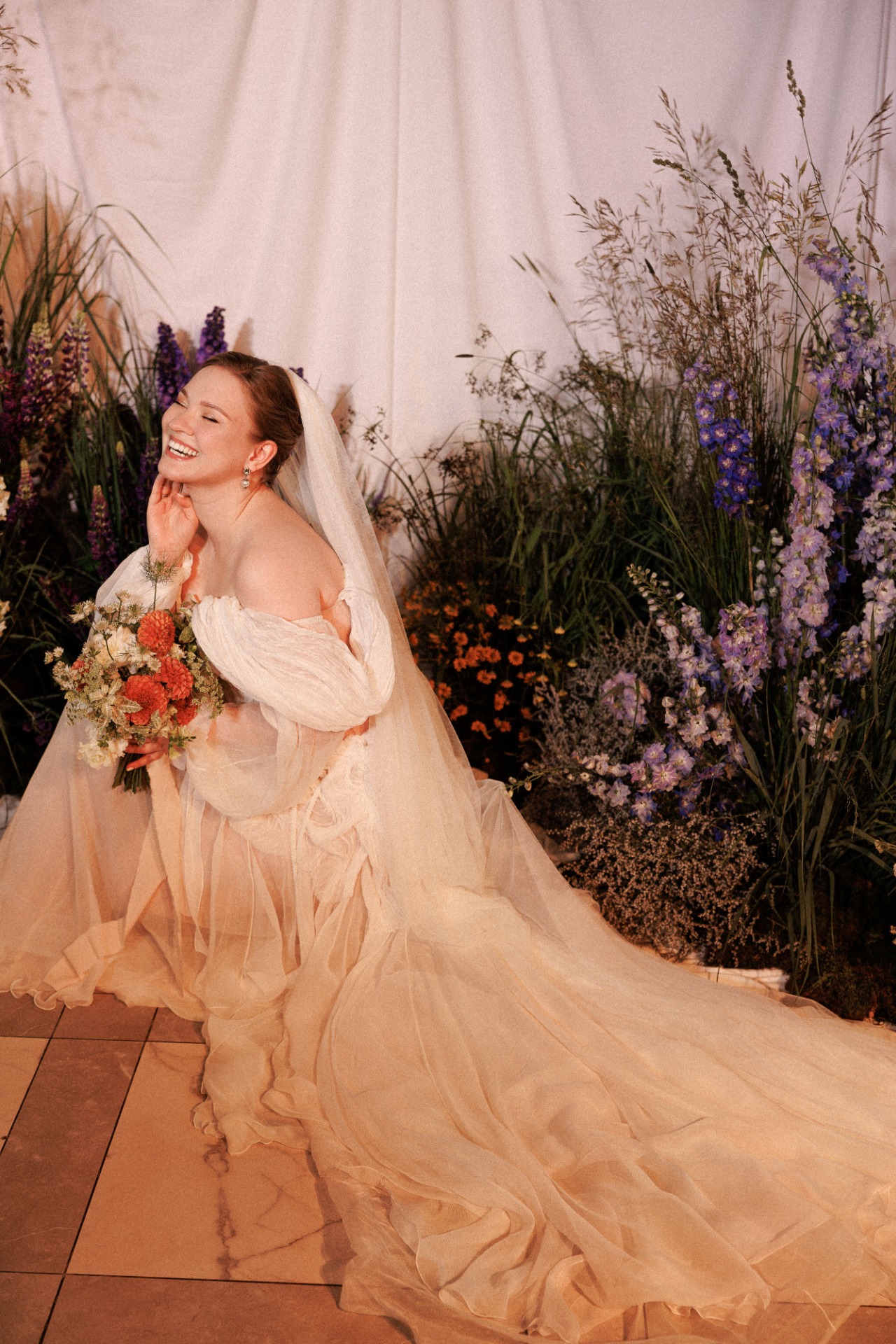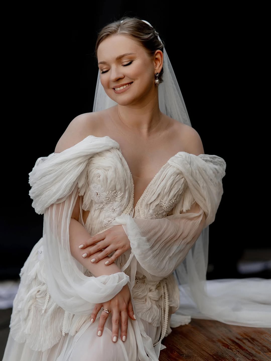 Я по знаку зодиака — Лев, и во мне умудряются уживаться такие качества, как сила, стиль и безбашенная романтика. В моём платье мне хотелось совместить лаконичность и пышность. Поэтому я остановила свой выбор на изящном, но роскошном платье с интересными деталями, дополнив его очень длинной фатой.
