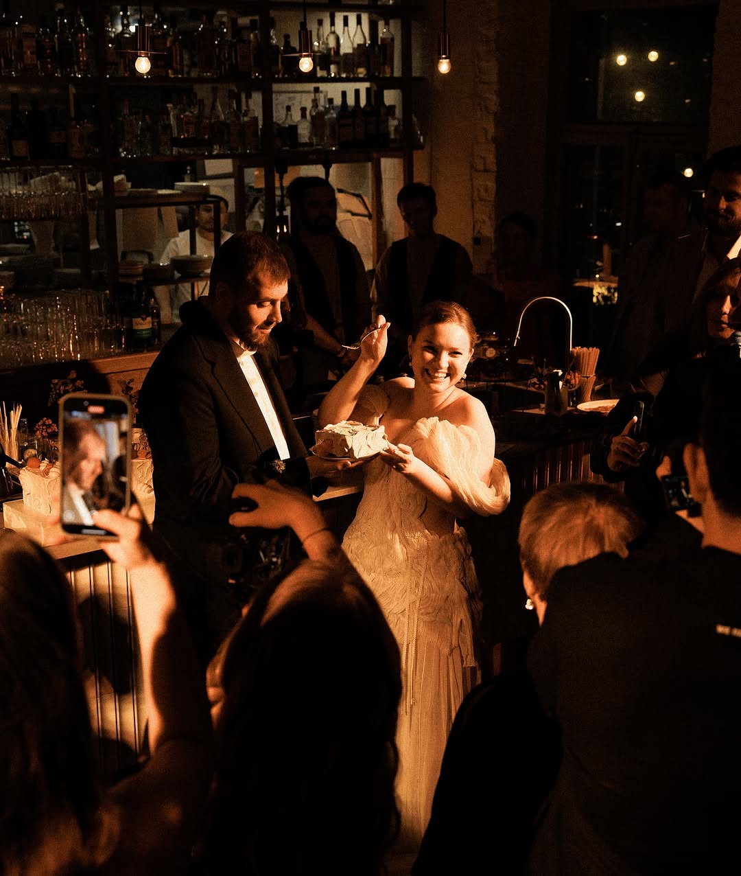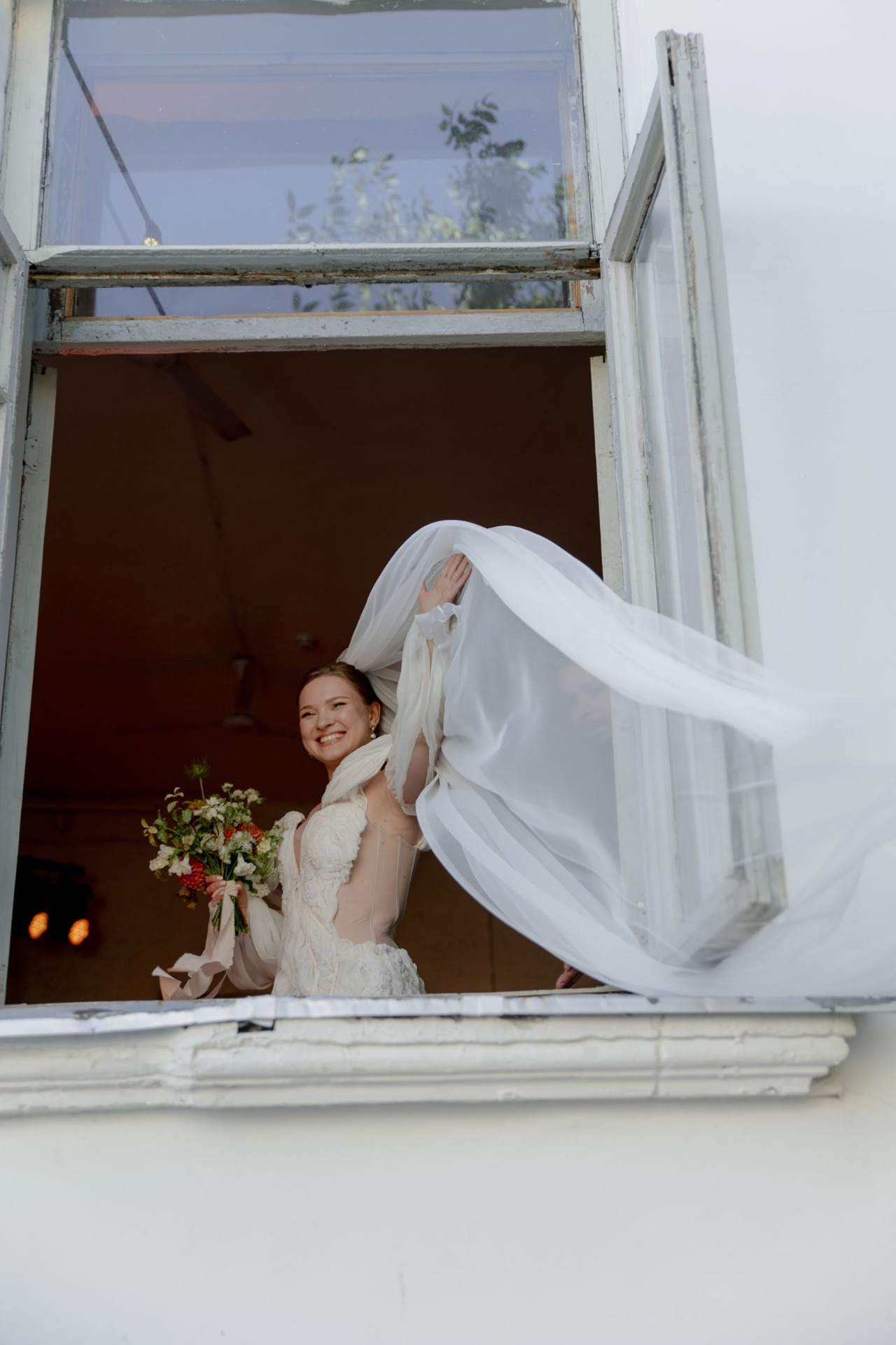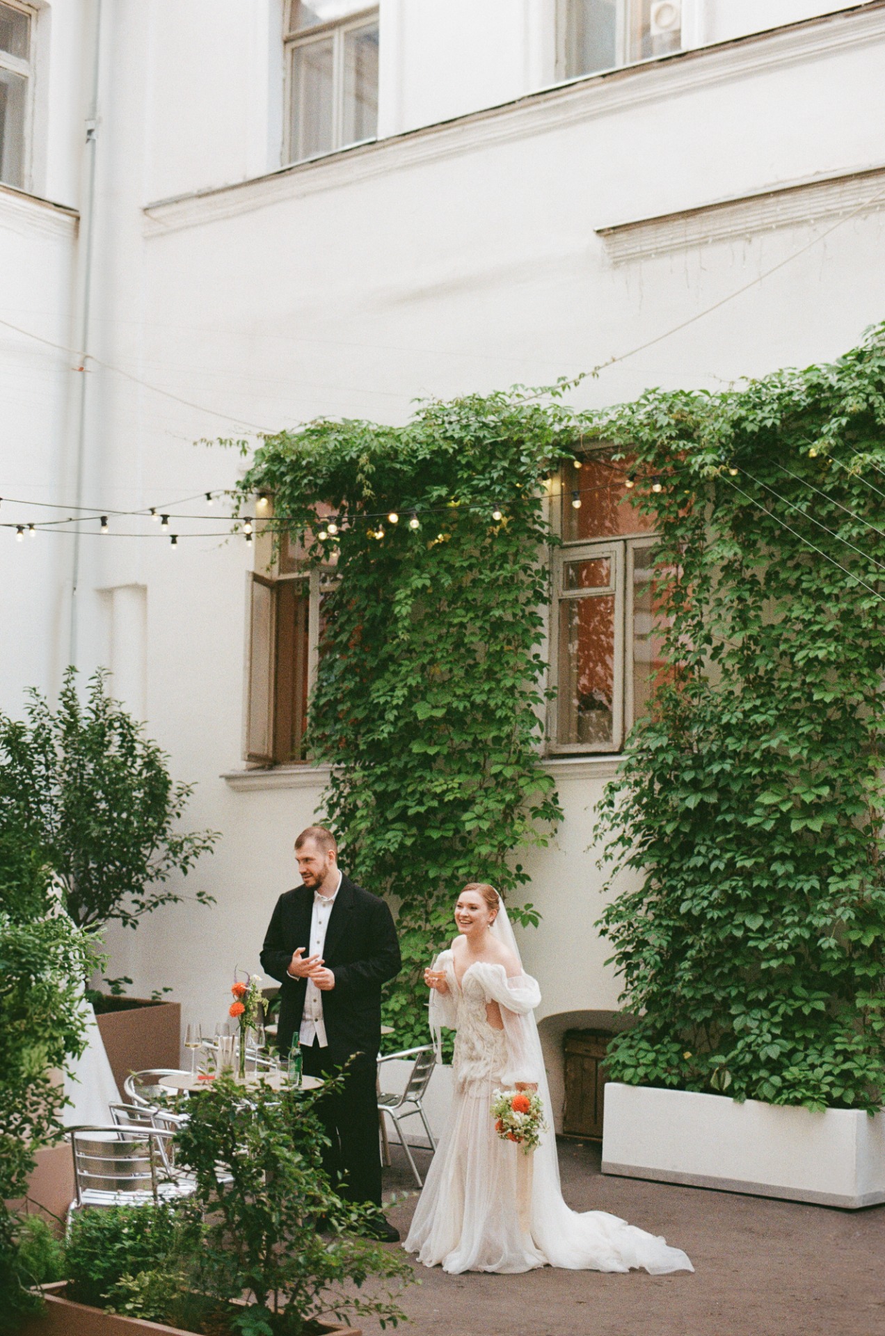 А завершился вечер не традиционными ритуалами, а по-домашнему душевно: торт подали прямо на барную стойку, а букет невесты я бросила из окна — прямо в руки подругам, стоявшим в том самом историческом дворике, который на несколько часов стал настоящим очагом любви.