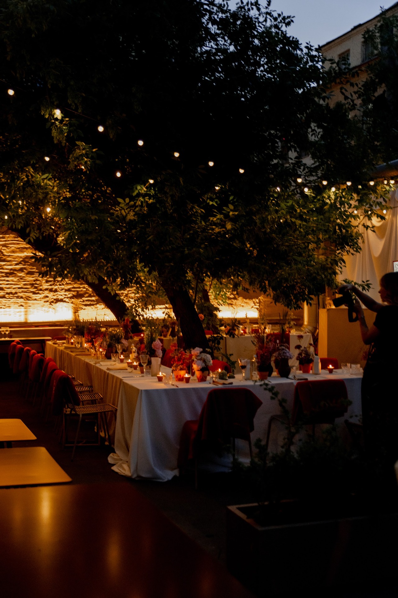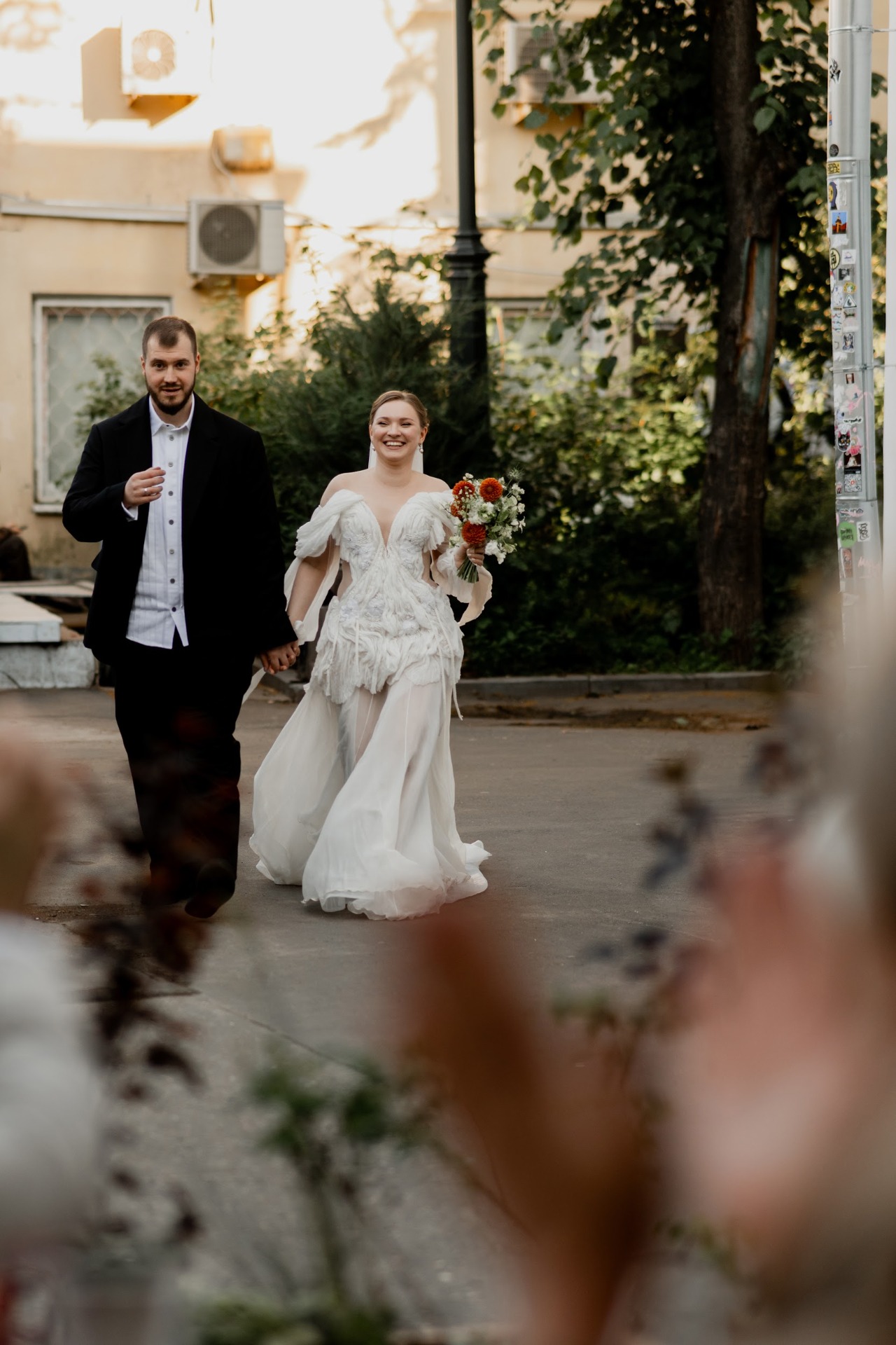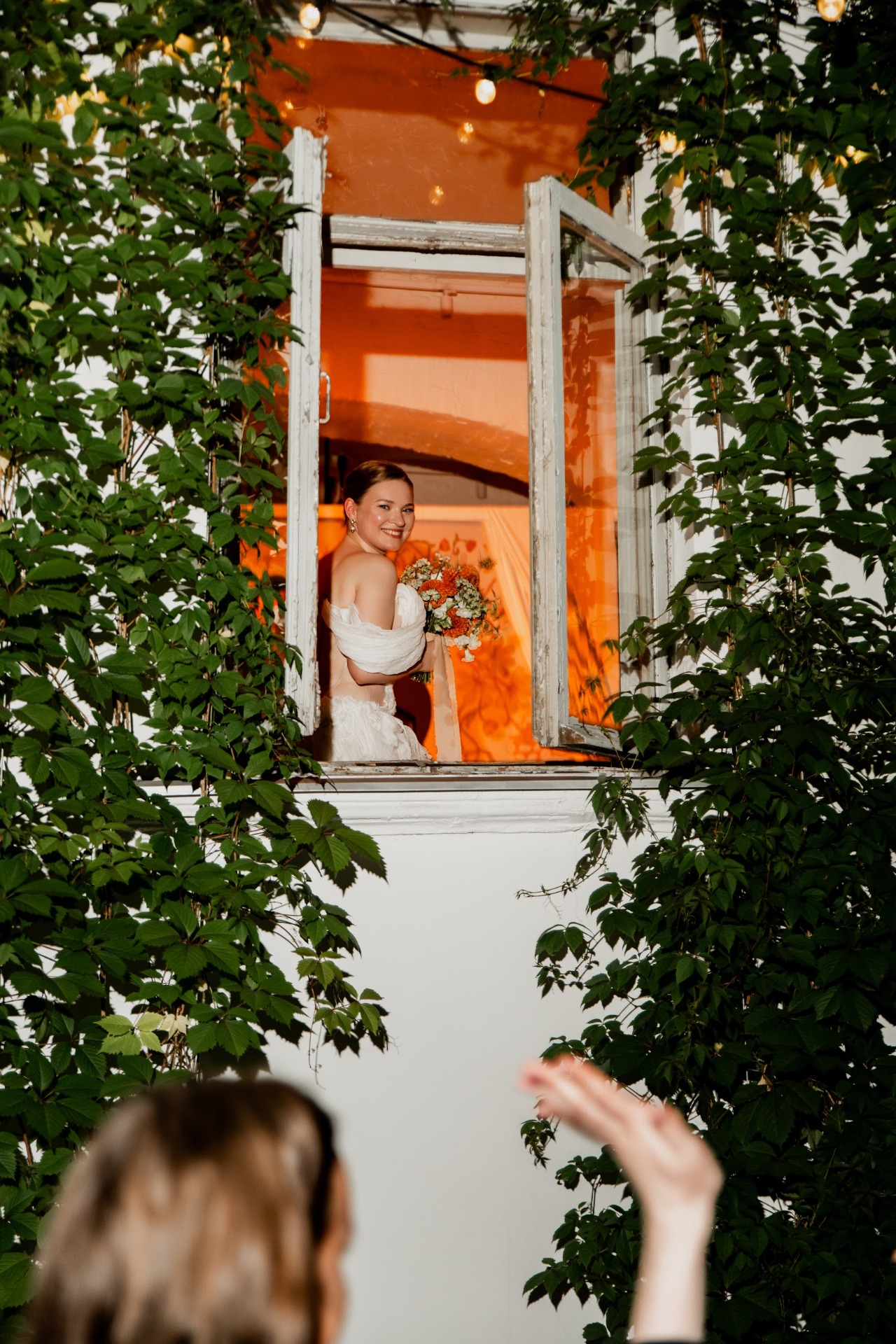 А завершился вечер не традиционными ритуалами, а по-домашнему душевно: торт подали прямо на барную стойку, а букет невесты я бросила из окна — прямо в руки подругам, стоявшим в том самом историческом дворике, который на несколько часов стал настоящим очагом любви.