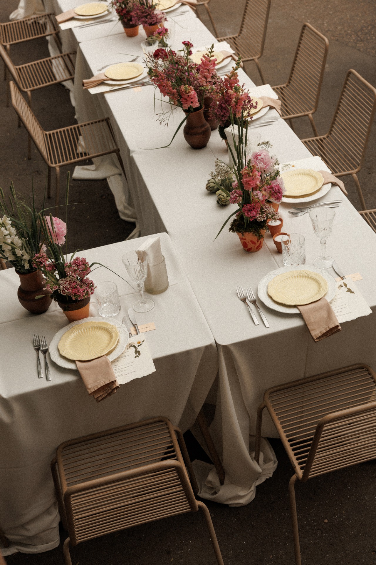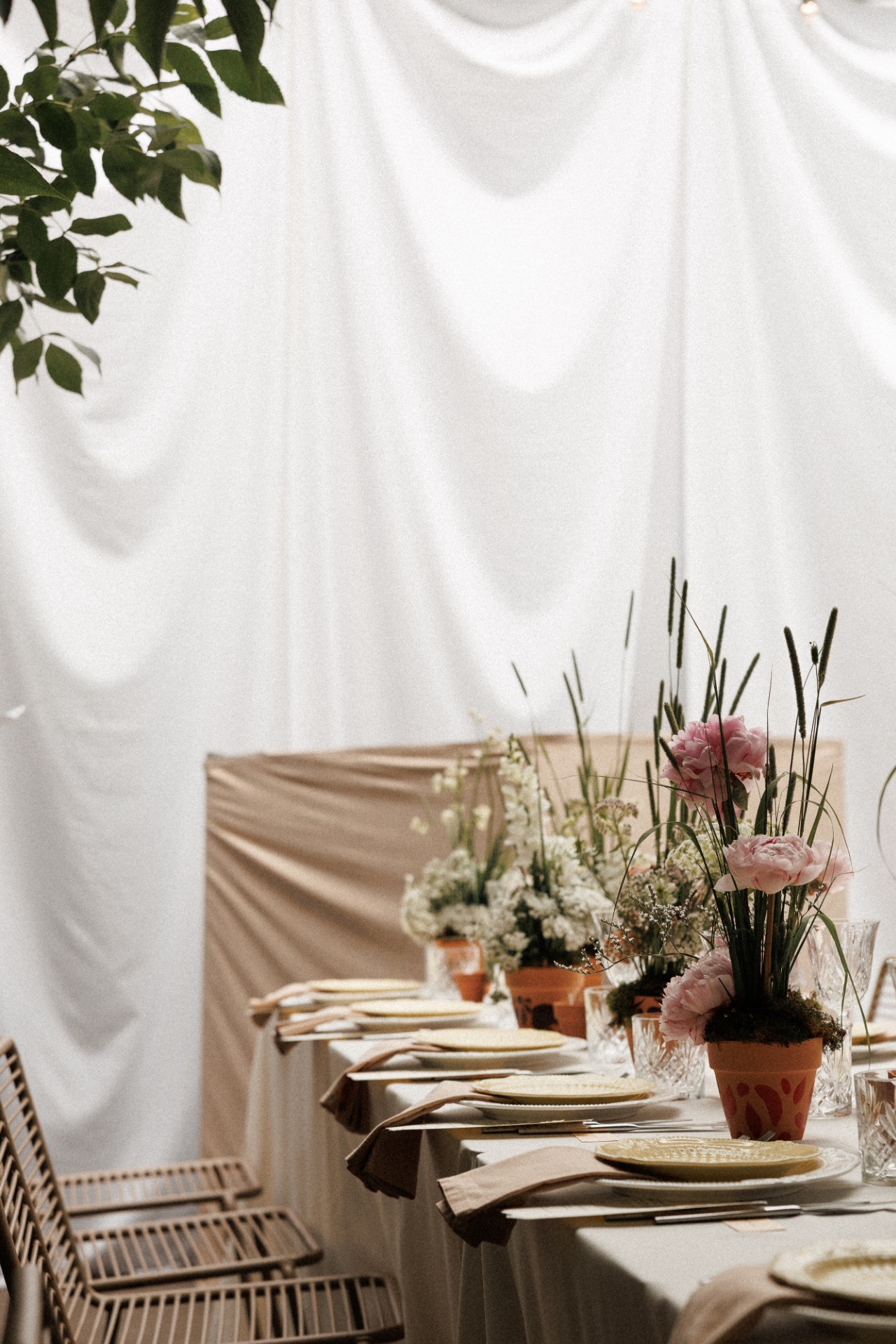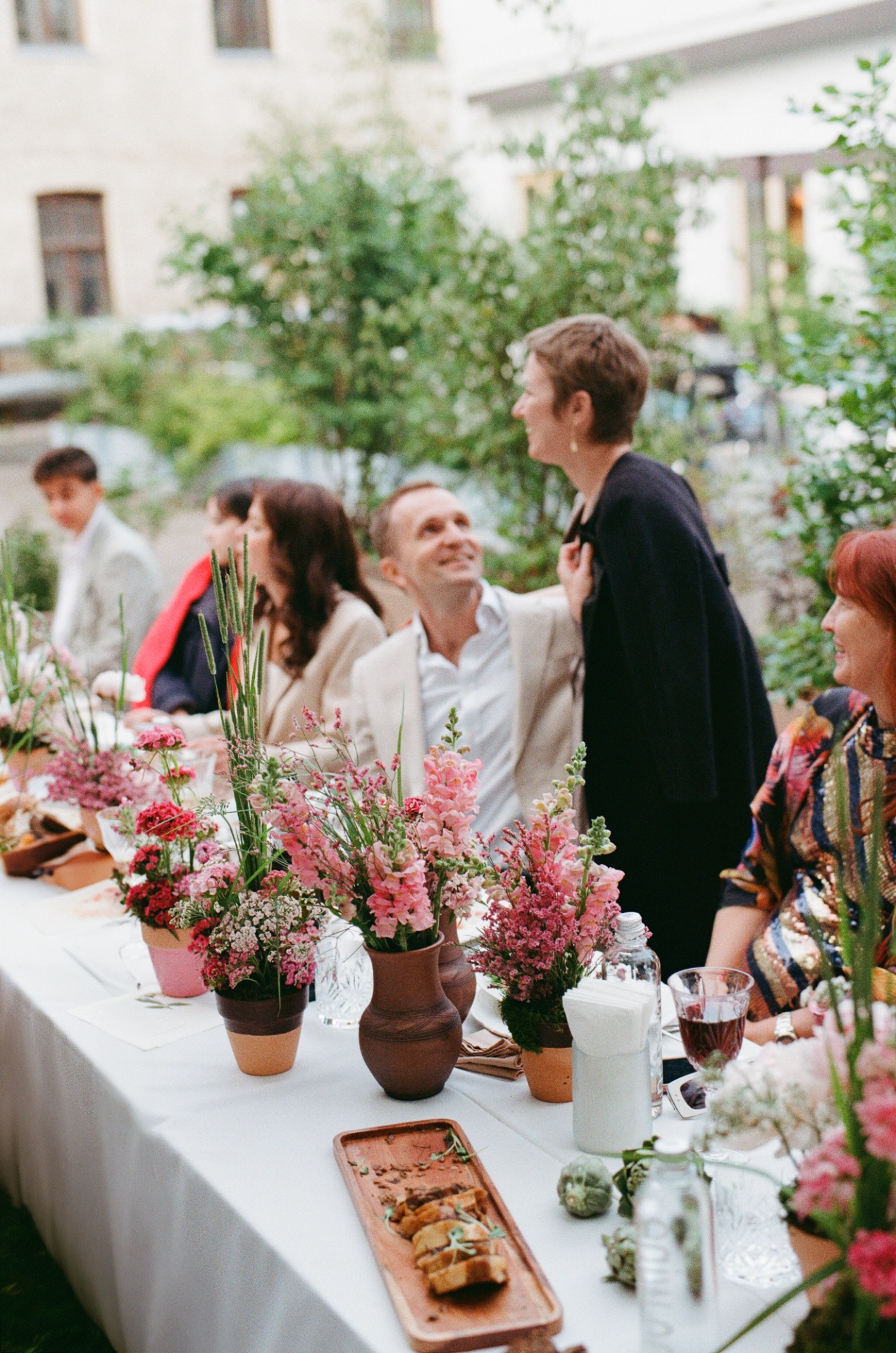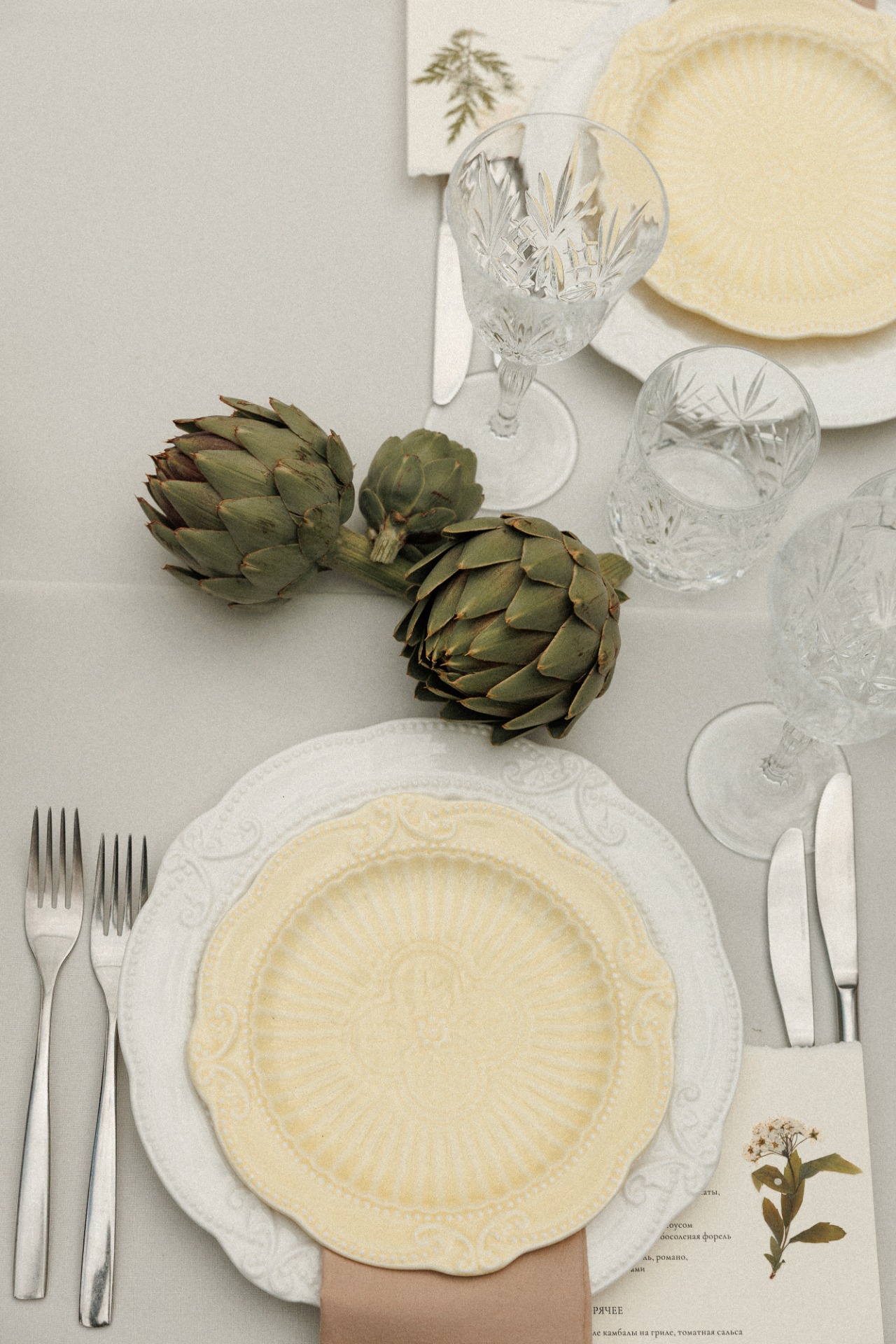 Флористика из полевых цветов в глиняных горшках, льняные ткани, сухоцветы в меню — всё это создавало атмосферу тихой роскоши и беззаботности, отсылая к красоте родных мест и нашему предстоящему путешествию по Ярославской области.