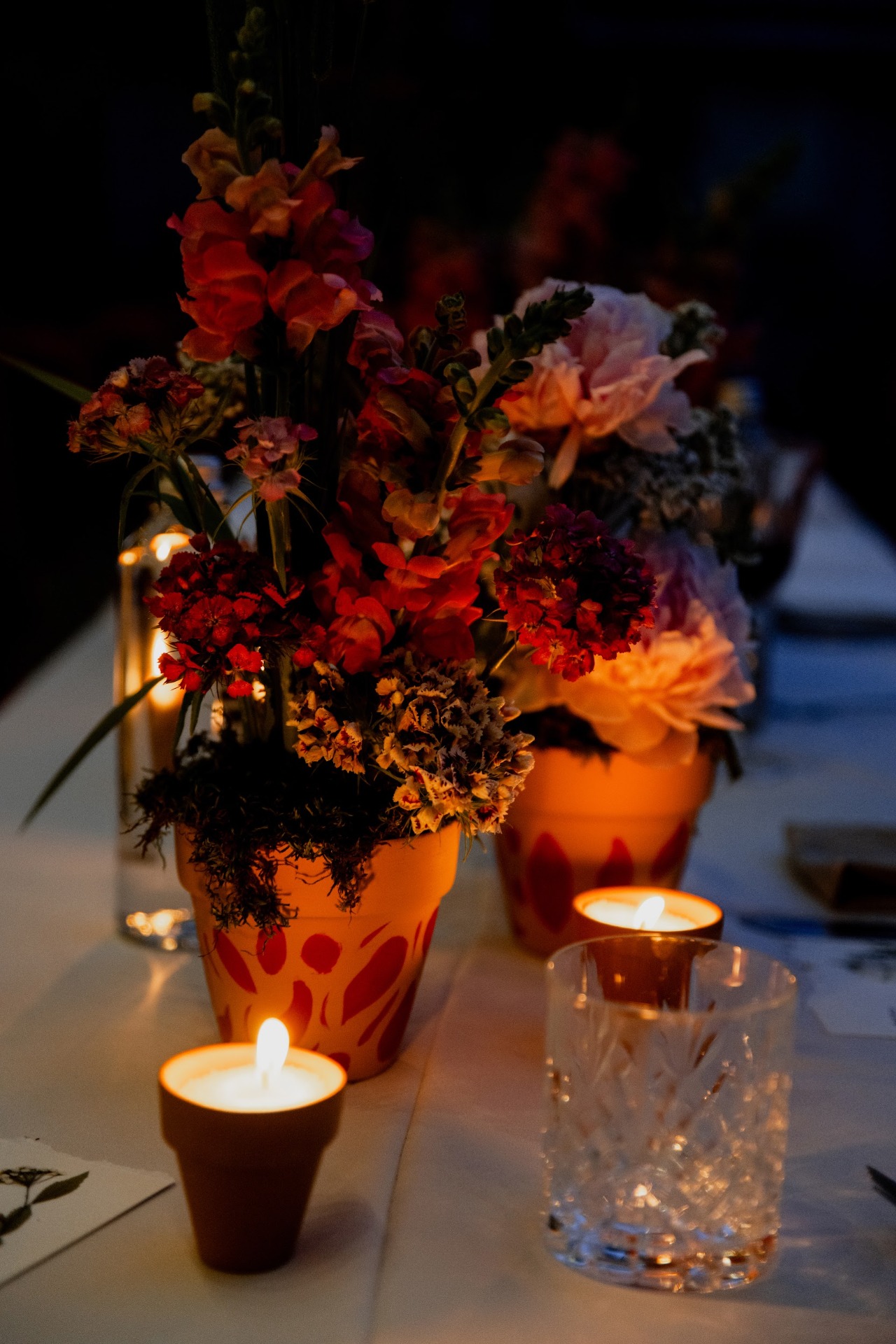 Вечер продолжился за столами, сервированными глиняными горшками с цветами, свечами, артишоками и виноградом.