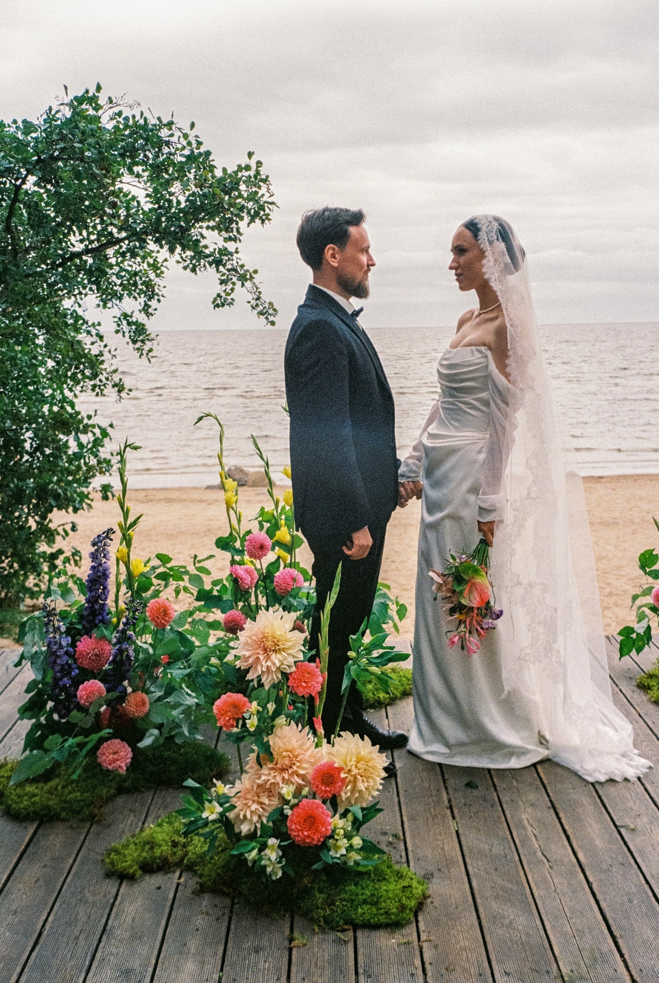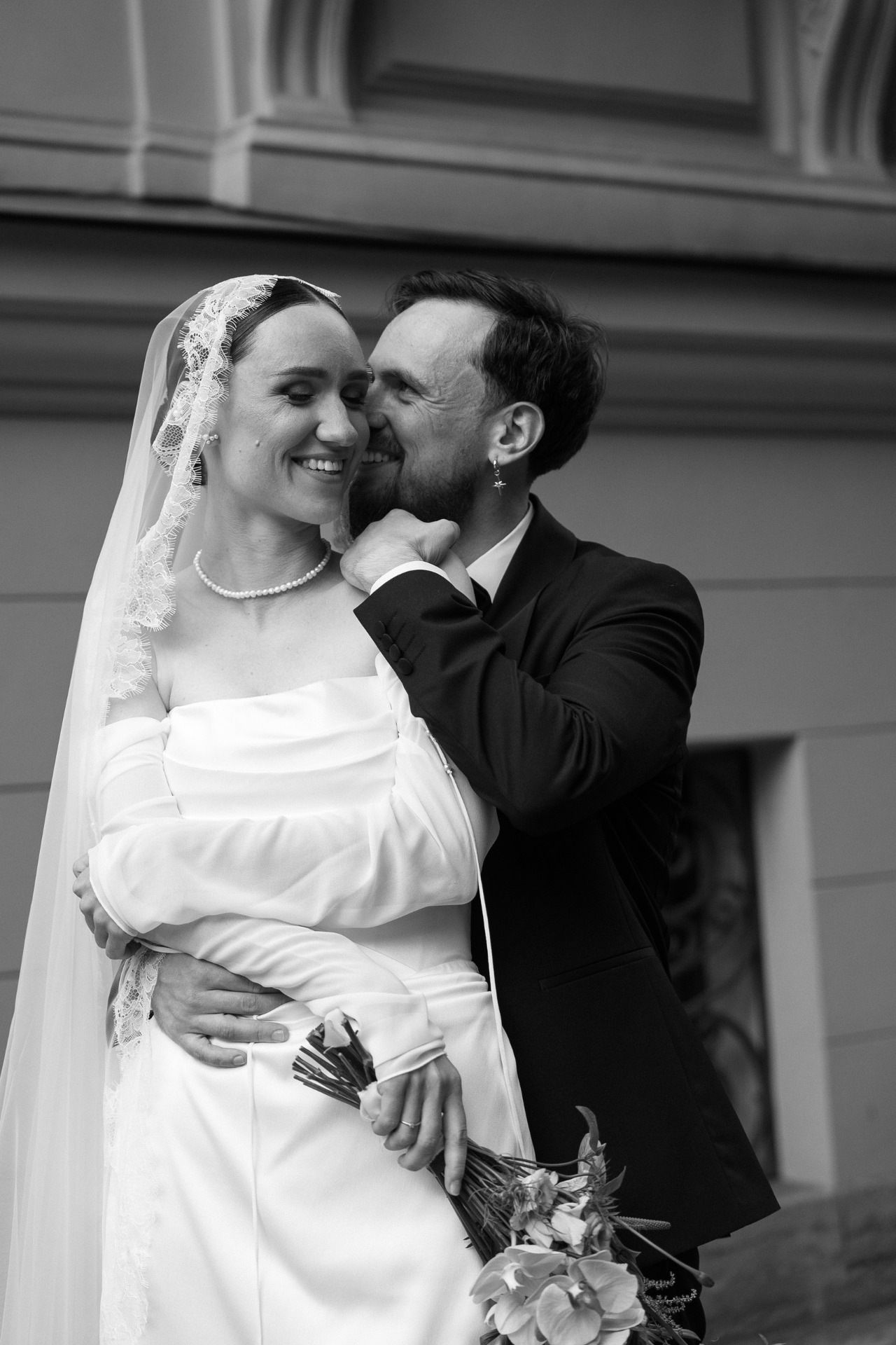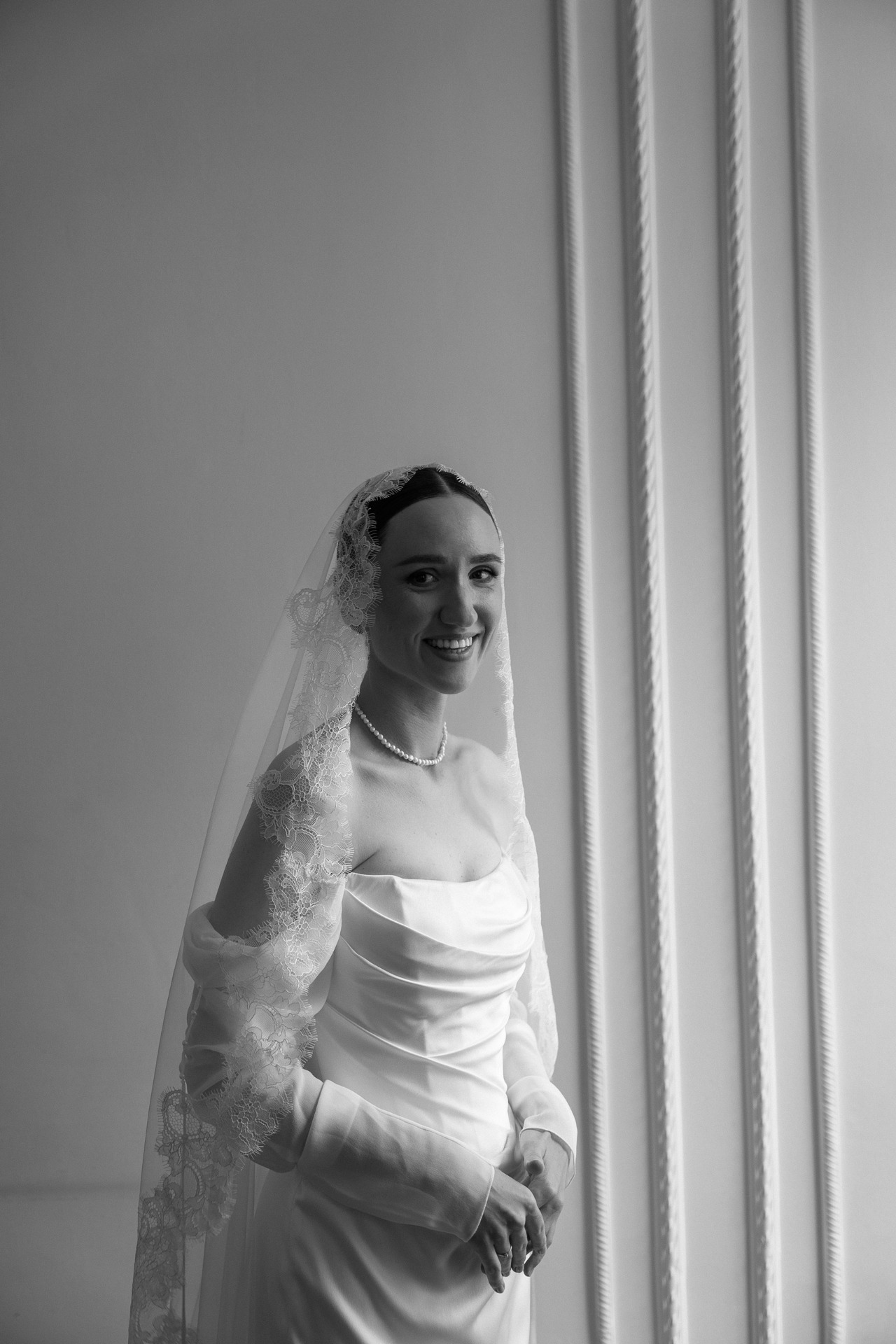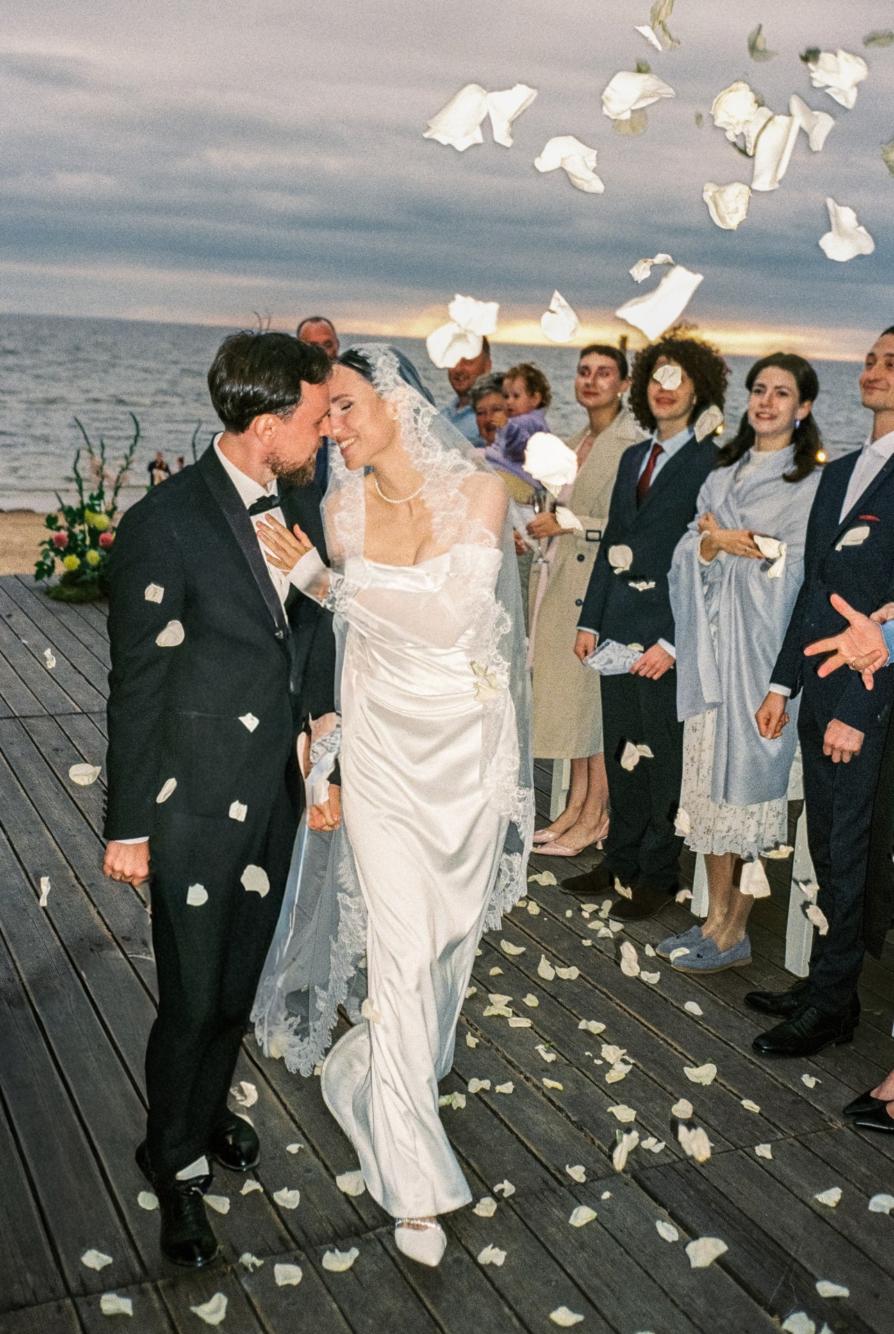 С моим платьем всё было сложнее. Я думала, что на первой же примерке у меня случится мэтч, но этого не произошло. Всё было не то, и, уже отчаявшись, я поехала в салон, где нашла его. Платье, которое не забирало всё внимание, не было изюминкой — оно было основой образа, классикой, которая соответствовала моему самоощущению и позволяла добавлять любые аксессуары.