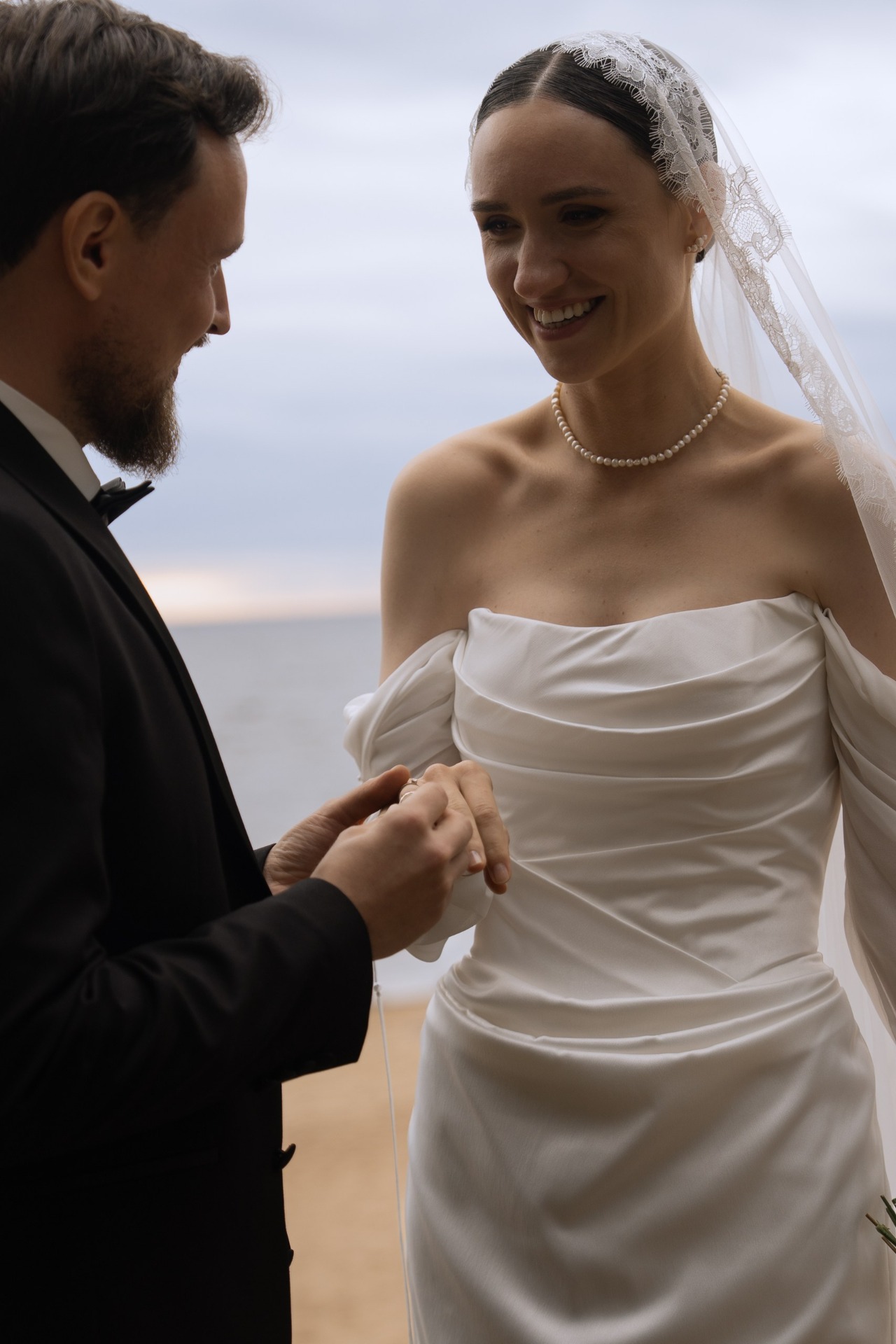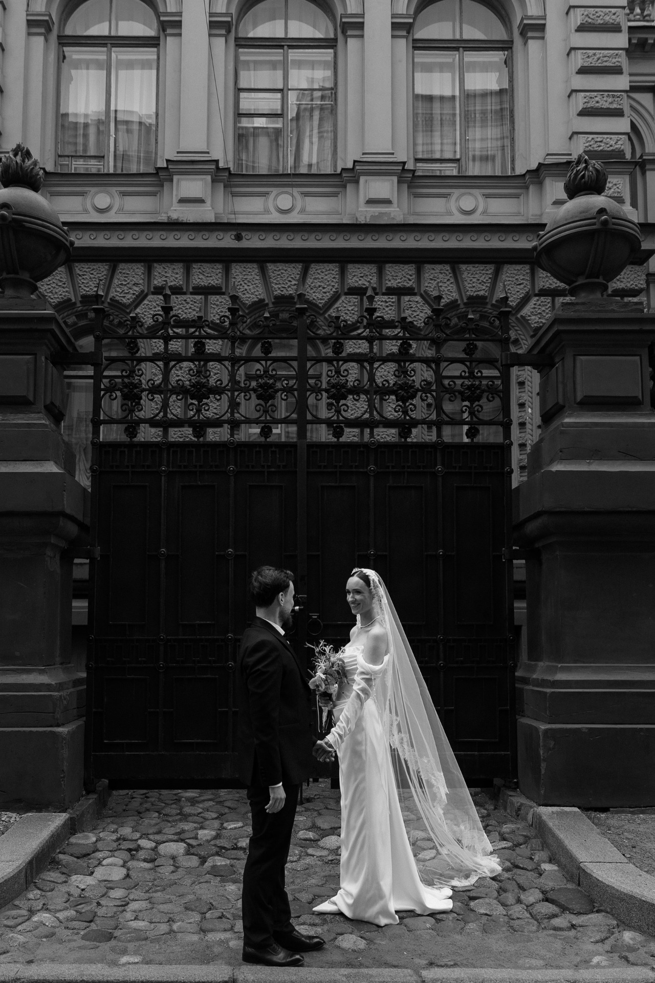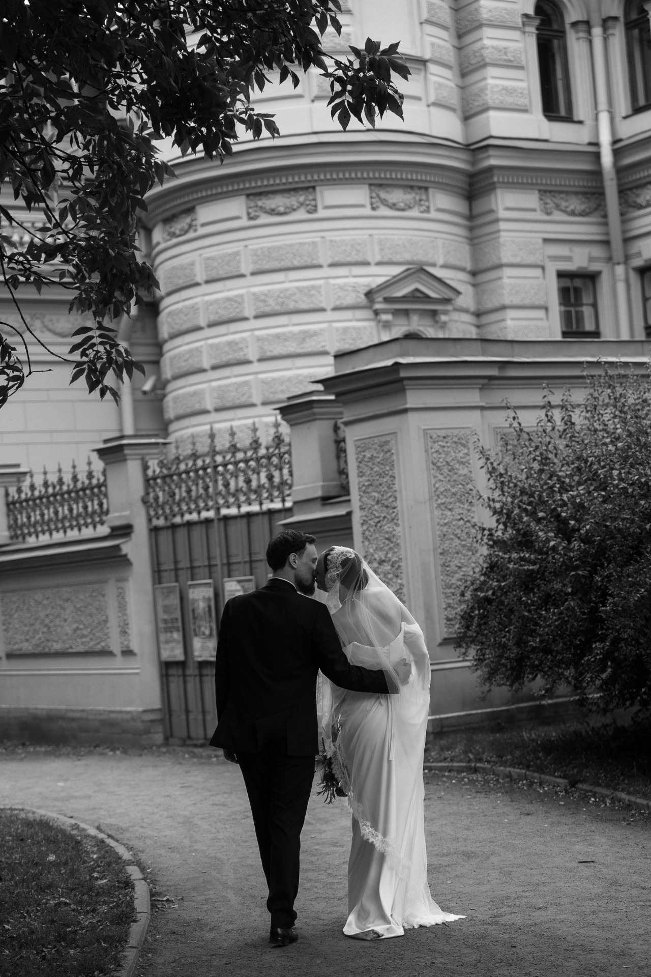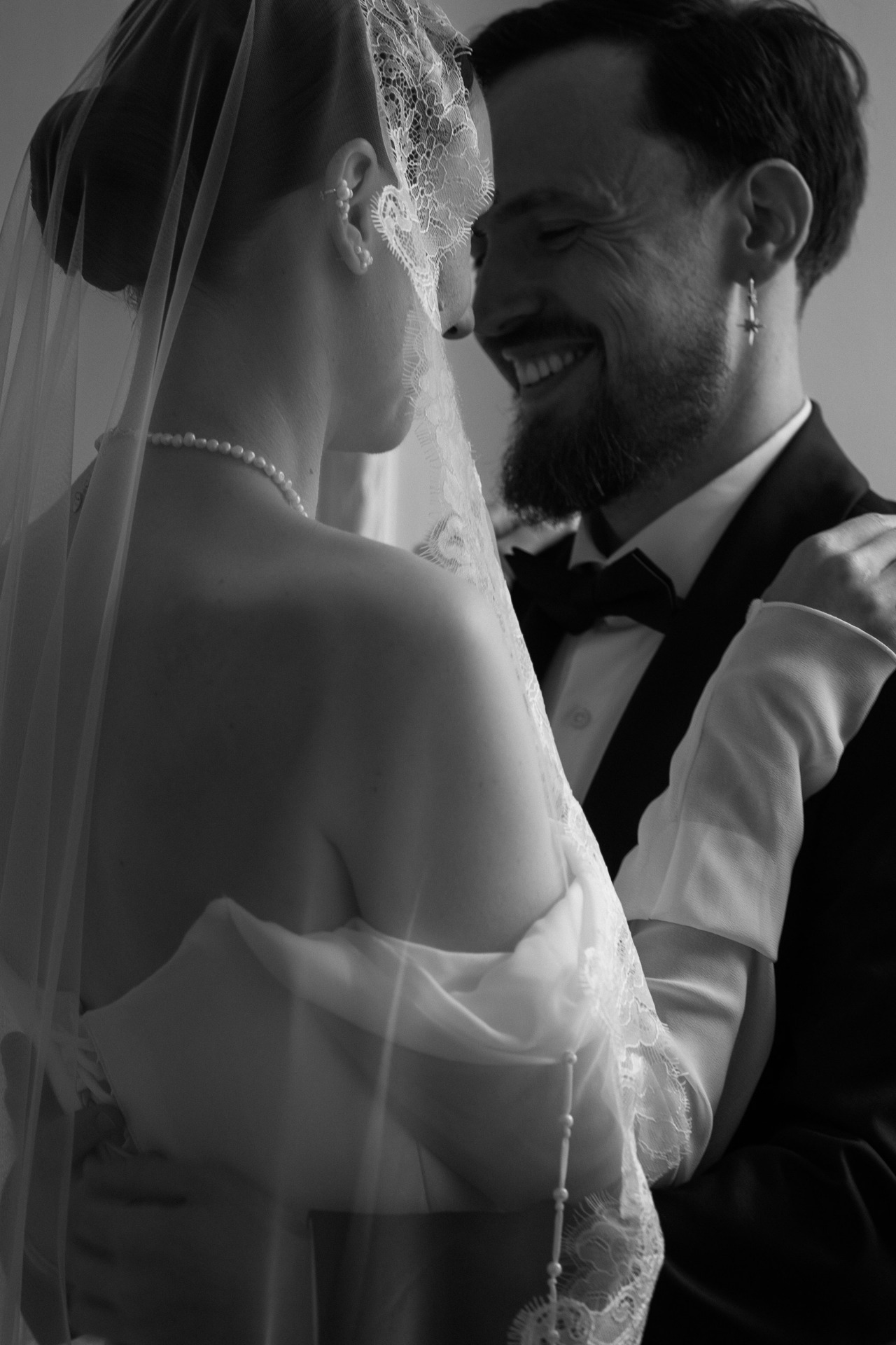 С моим платьем всё было сложнее. Я думала, что на первой же примерке у меня случится мэтч, но этого не произошло. Всё было не то, и, уже отчаявшись, я поехала в салон, где нашла его. Платье, которое не забирало всё внимание, не было изюминкой — оно было основой образа, классикой, которая соответствовала моему самоощущению и позволяла добавлять любые аксессуары.