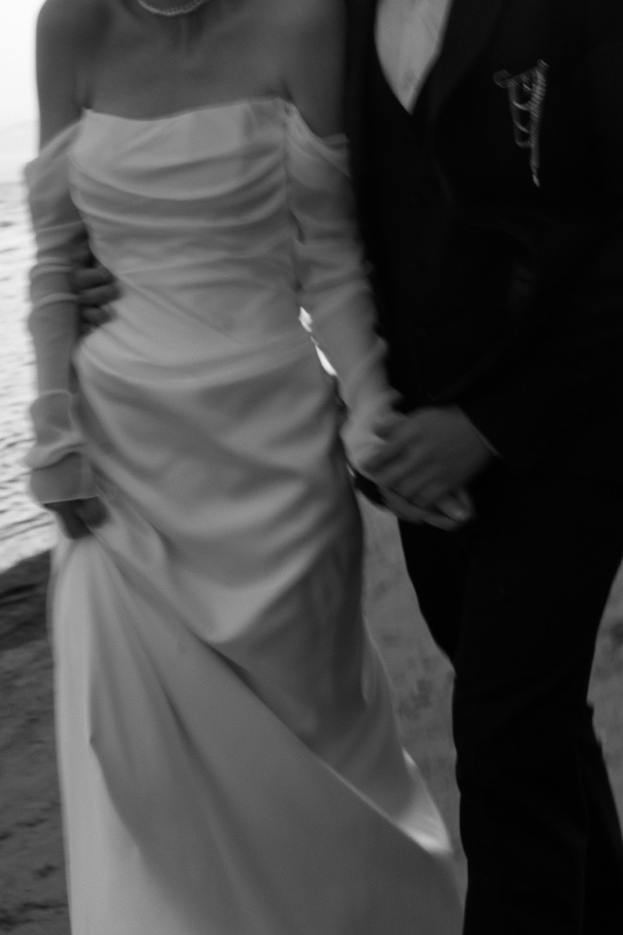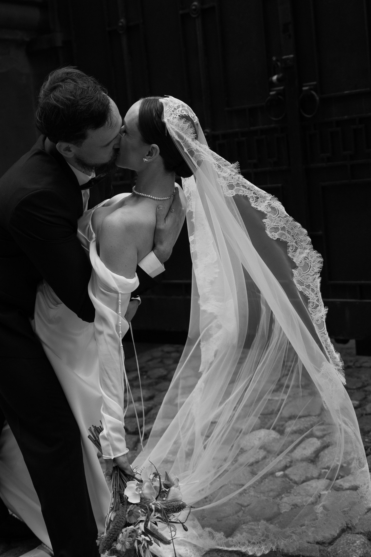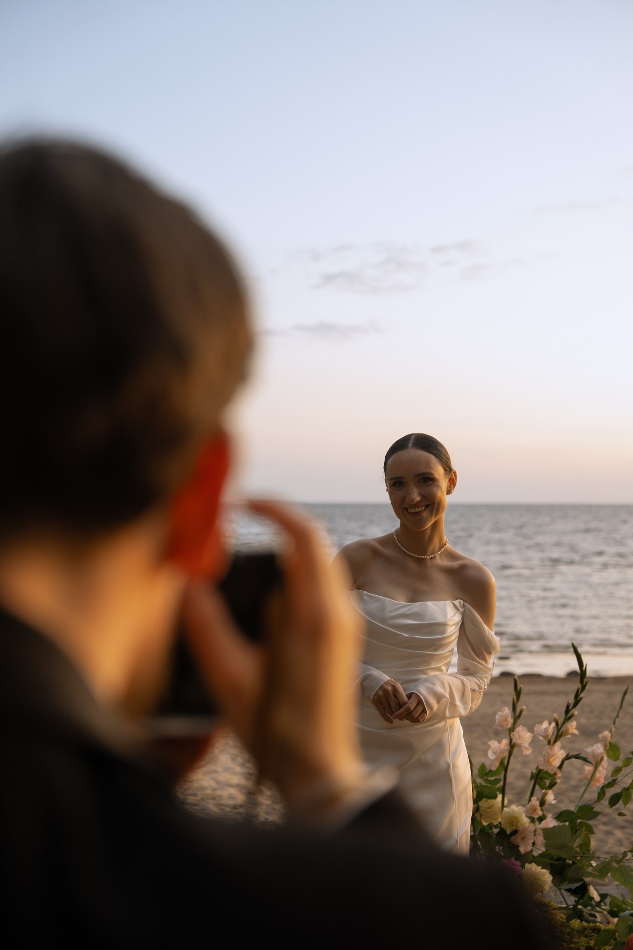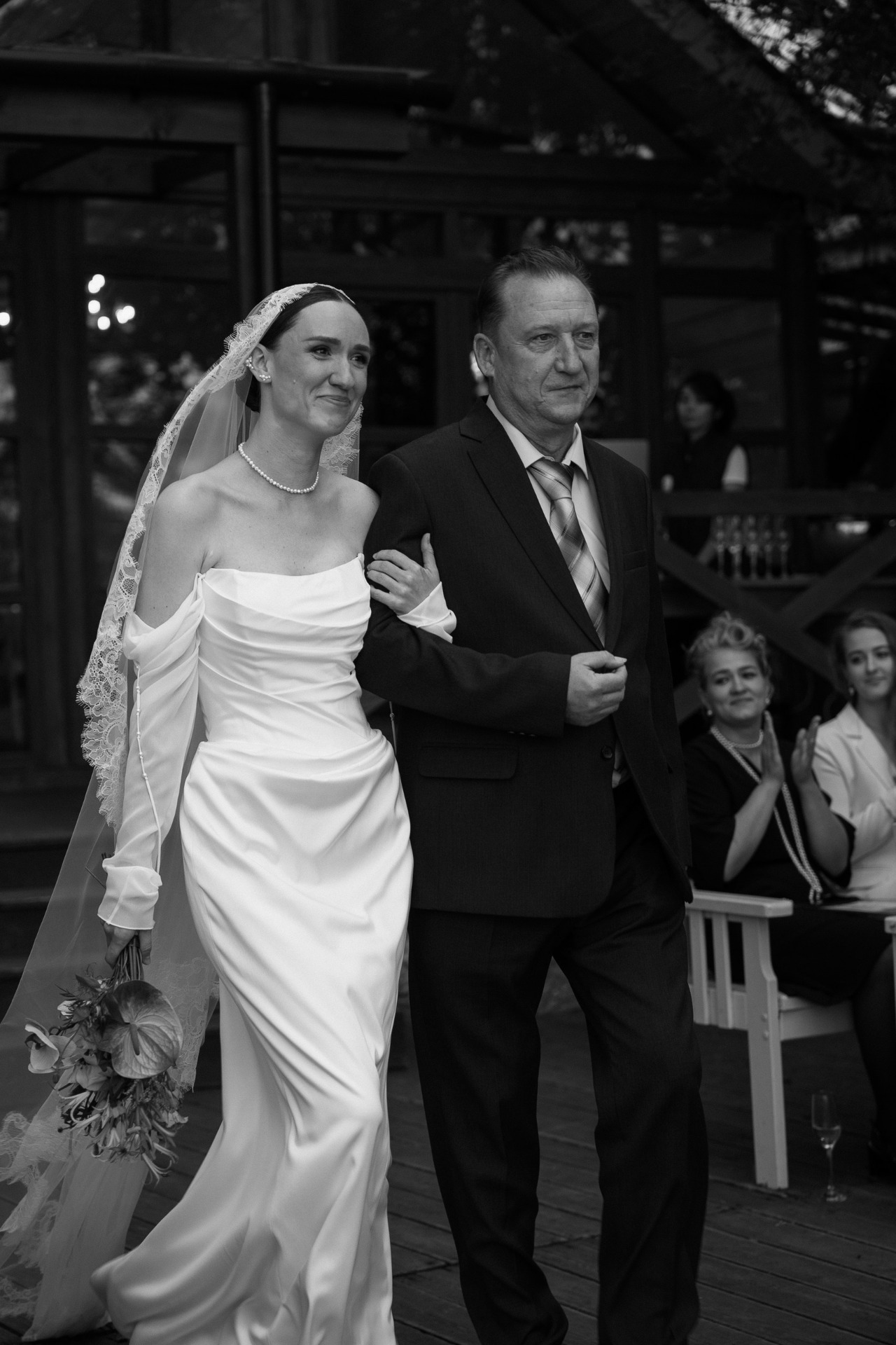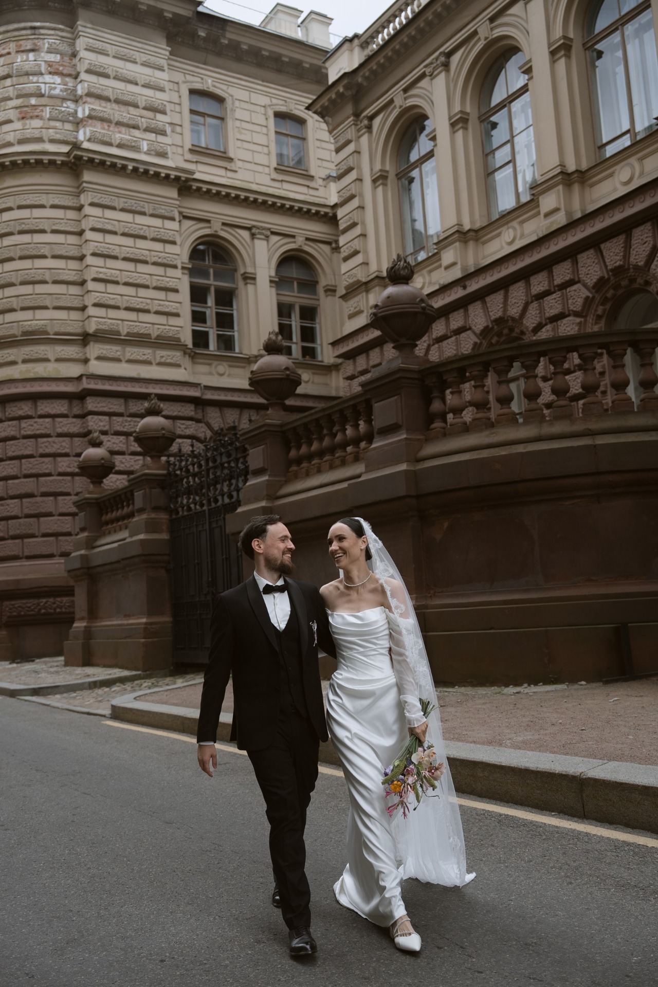 С моим платьем всё было сложнее. Я думала, что на первой же примерке у меня случится мэтч, но этого не произошло. Всё было не то, и, уже отчаявшись, я поехала в салон, где нашла его. Платье, которое не забирало всё внимание, не было изюминкой — оно было основой образа, классикой, которая соответствовала моему самоощущению и позволяла добавлять любые аксессуары.